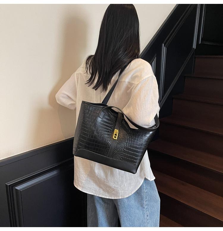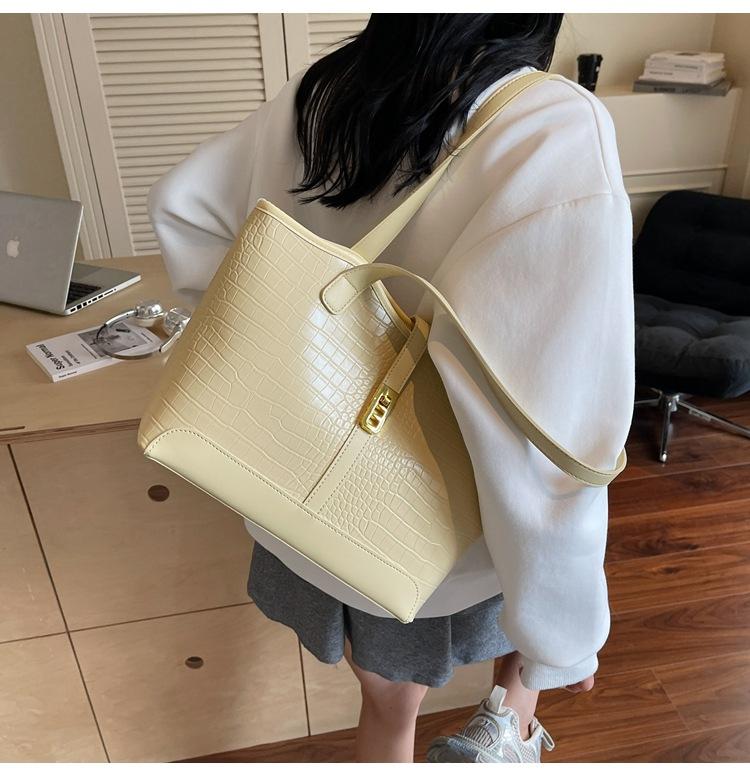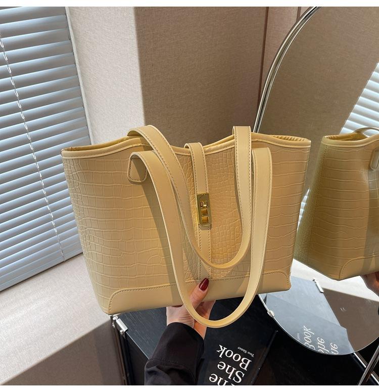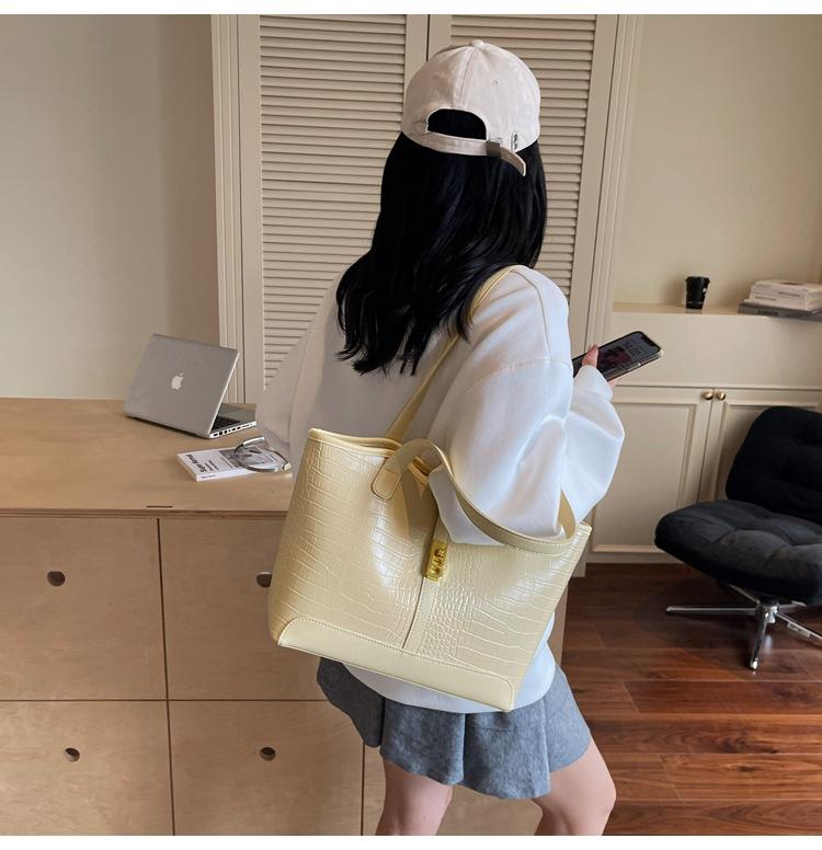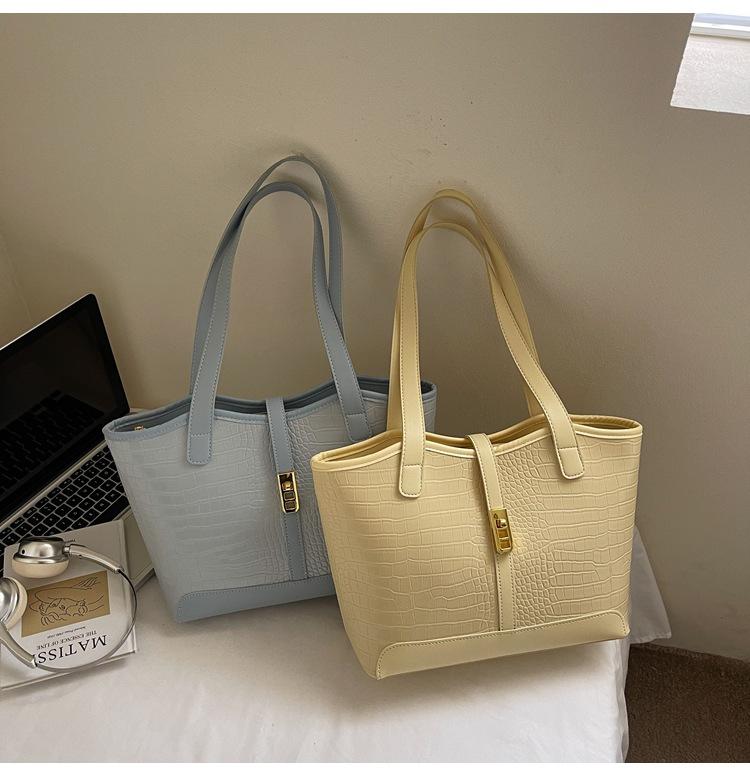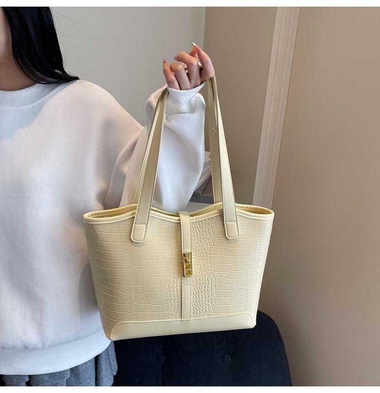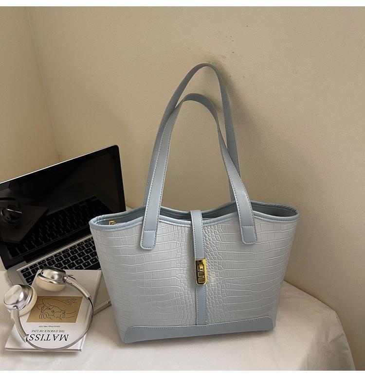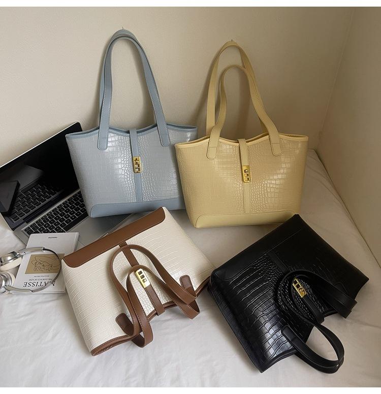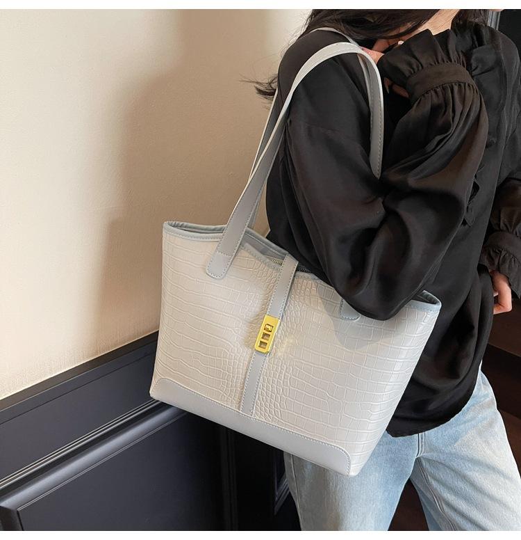Bolso Tote para Mujer Nueva Moda Transfronteriza Color Contrastante Popular Bolso de Hombro Casual Versátil Gran Capacidad Bolso Balde
