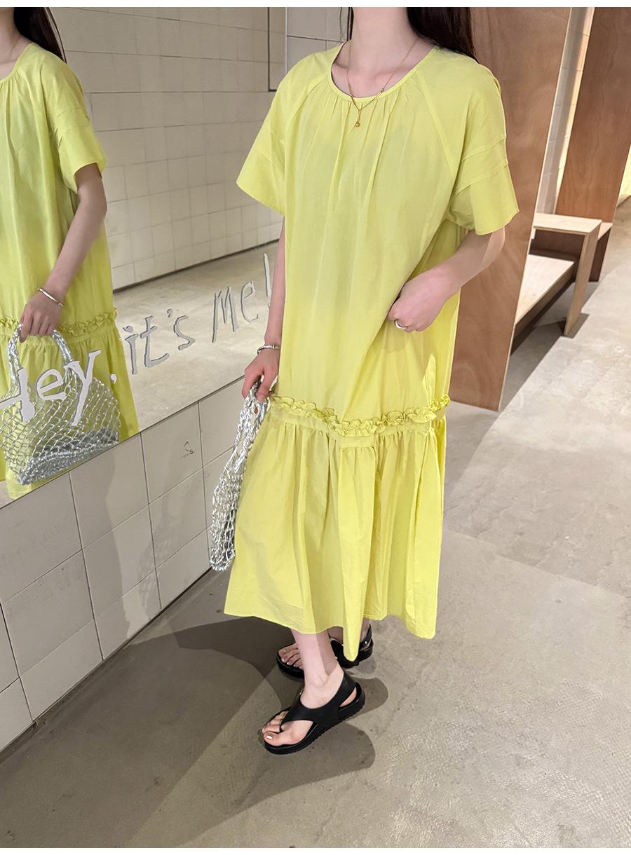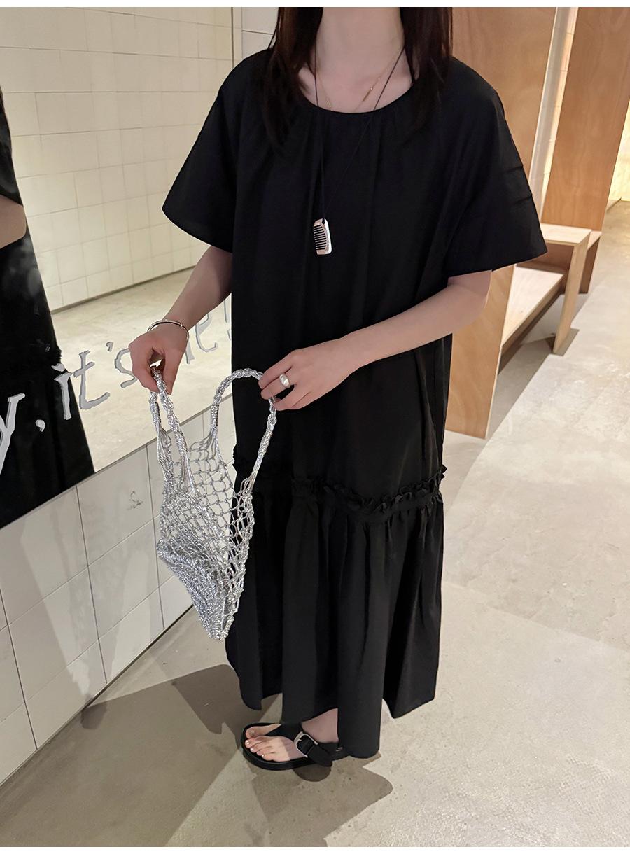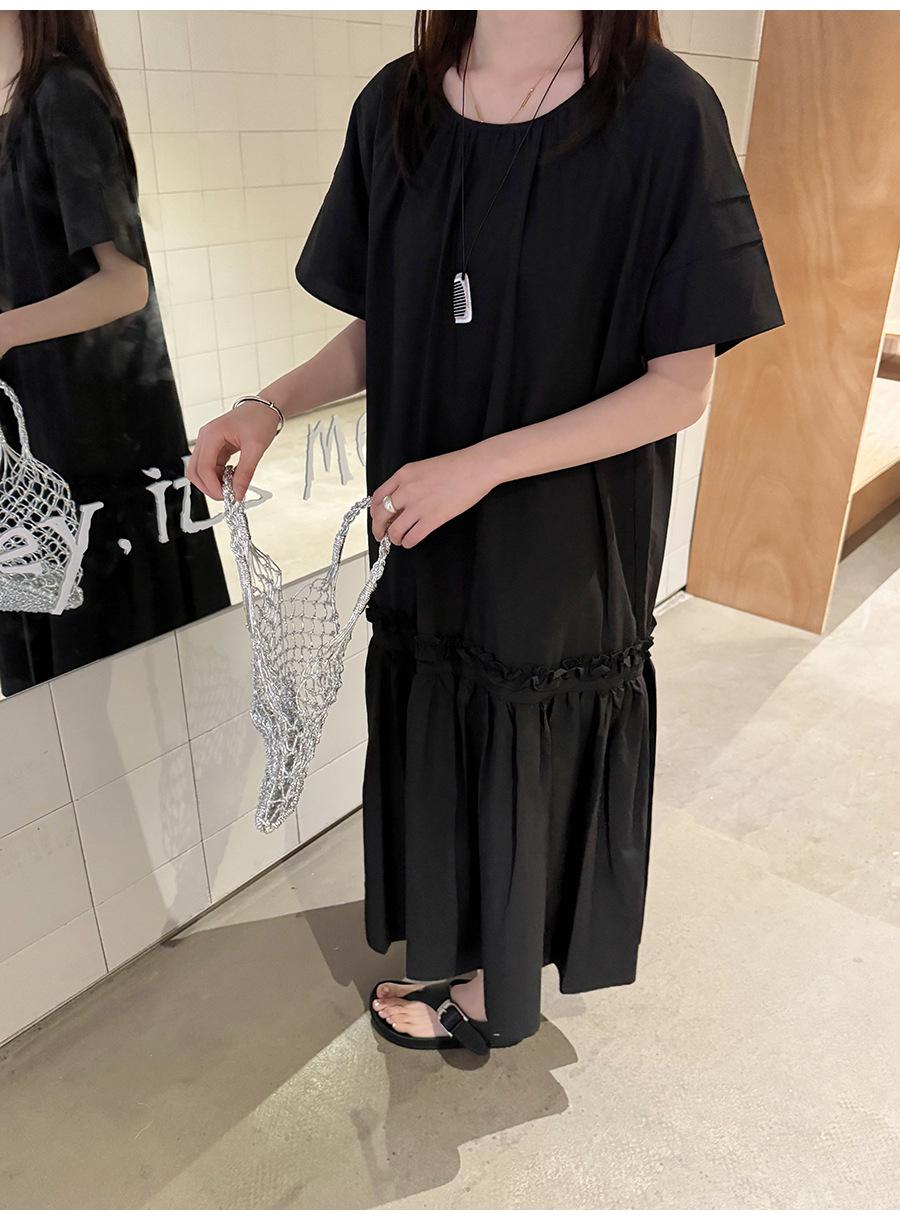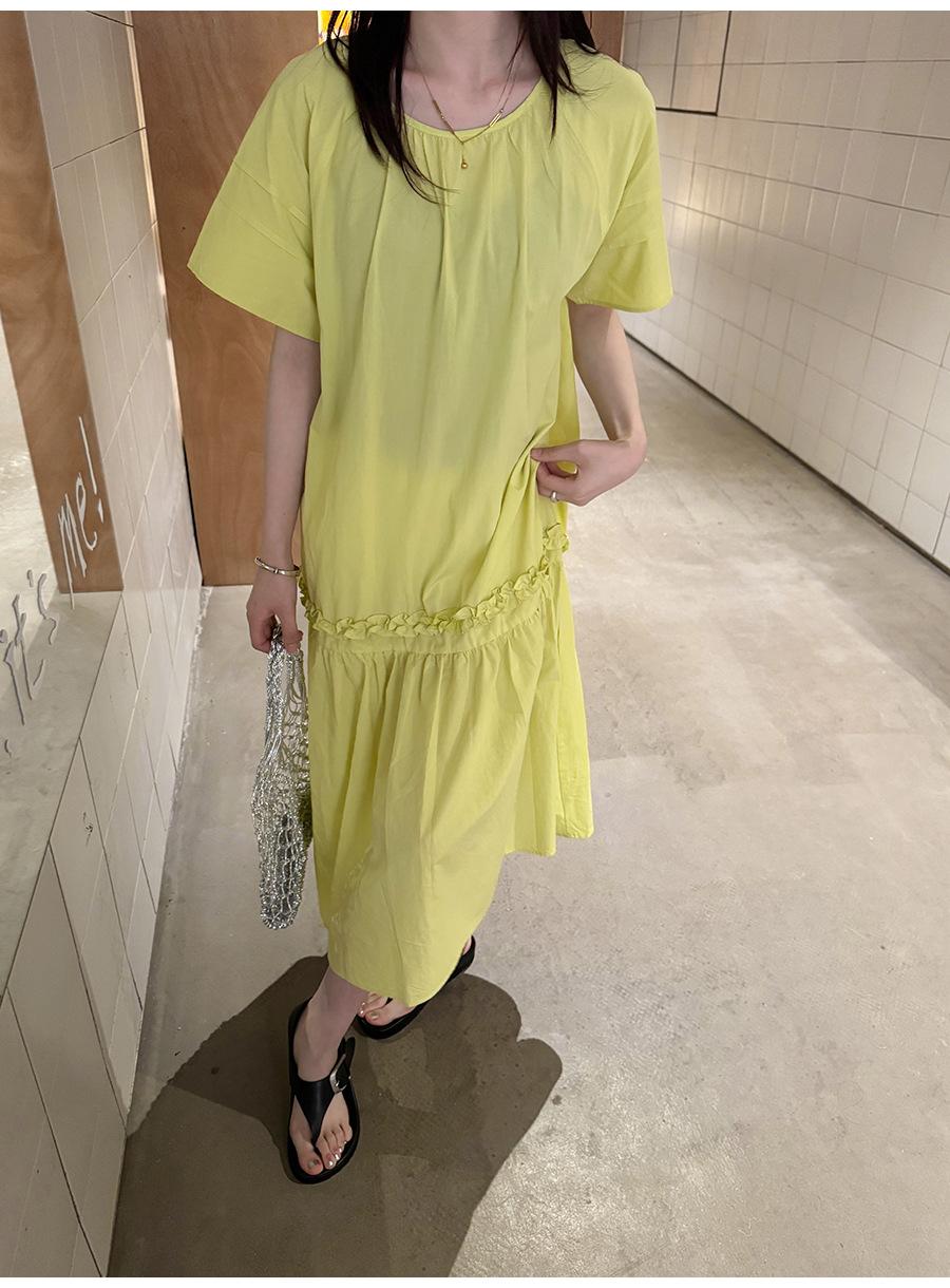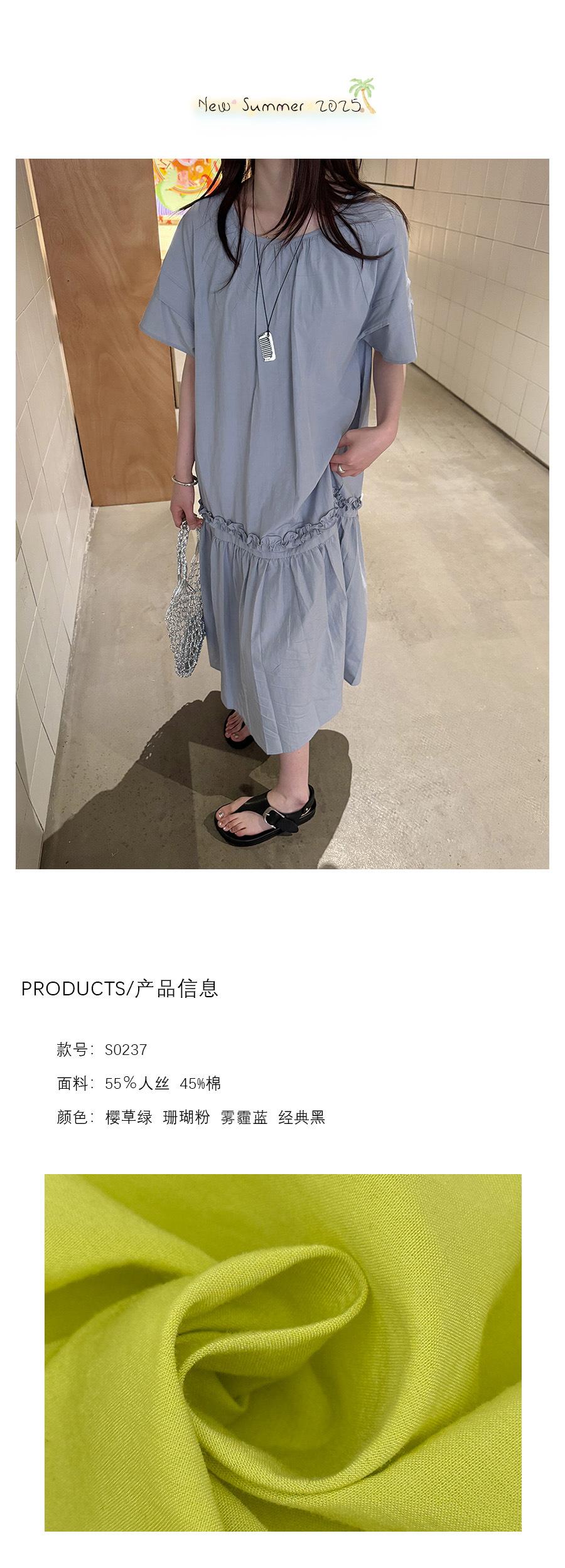Lino Verano Nuevo Estilo Coreano Minúsculo Vestido de manga corta para mujer 2025 Edición Grande Falda holgada adelgazante