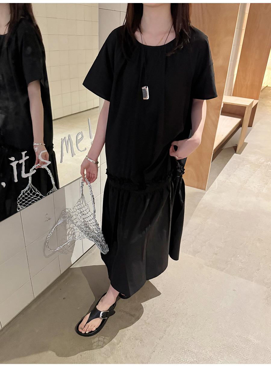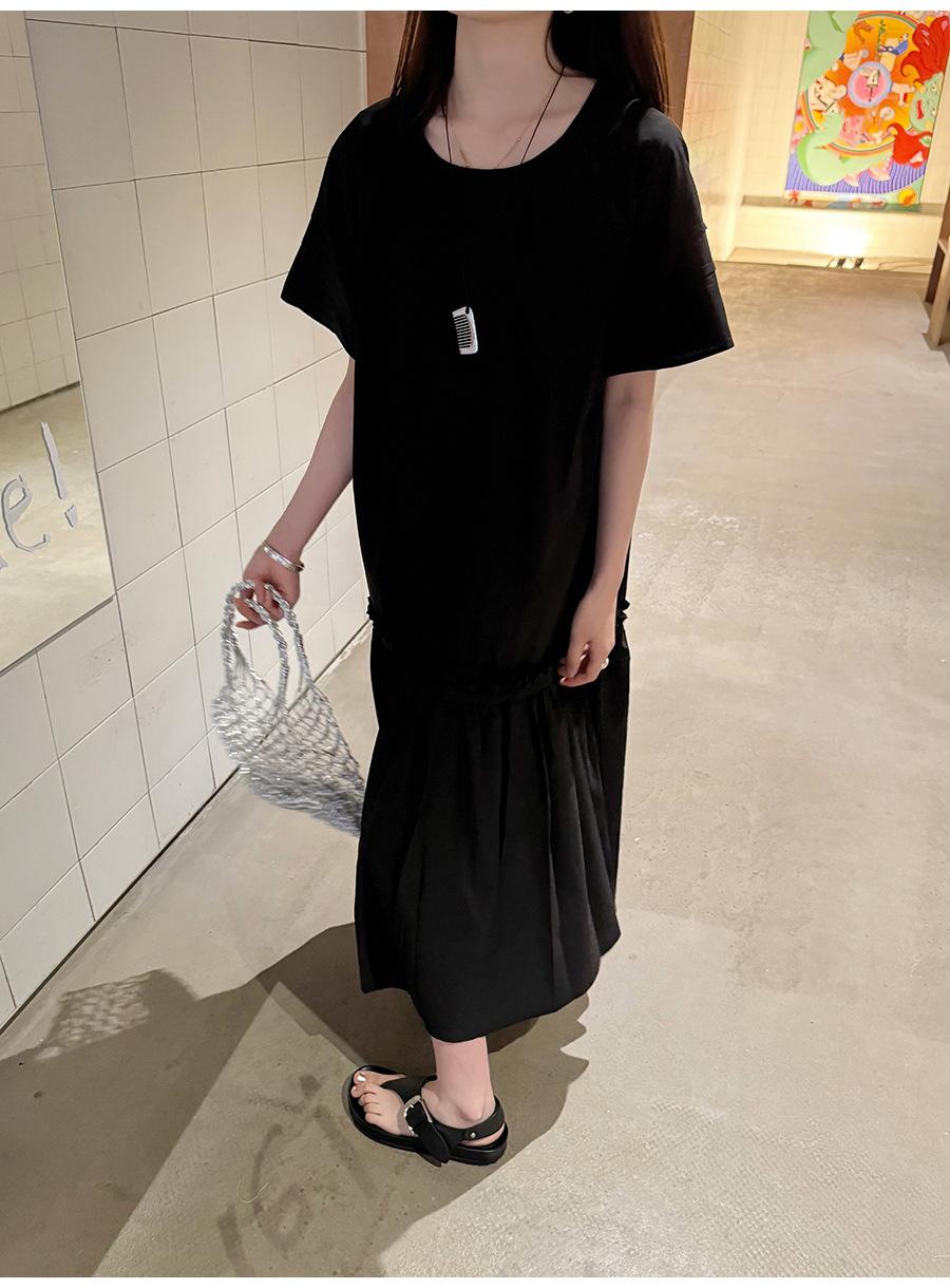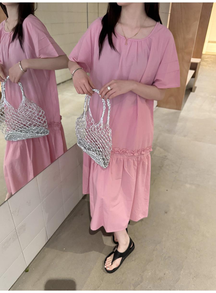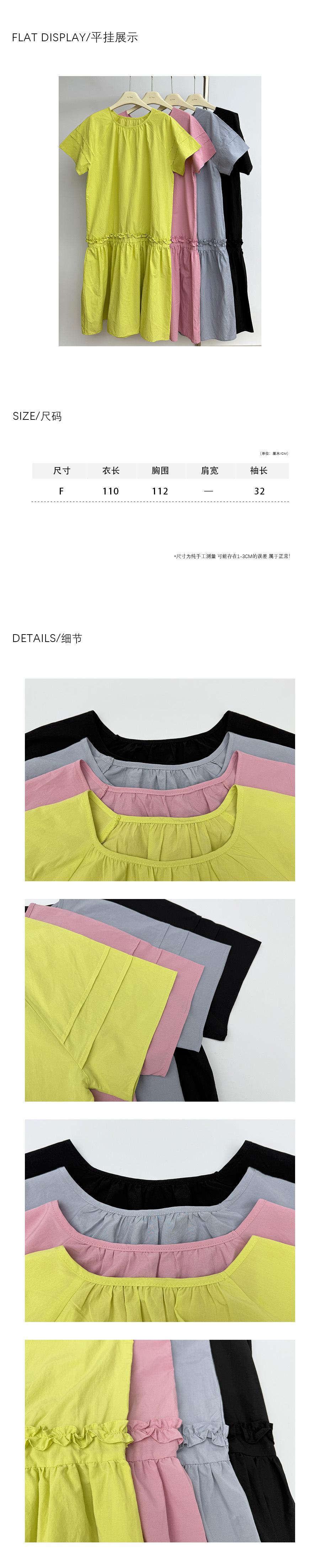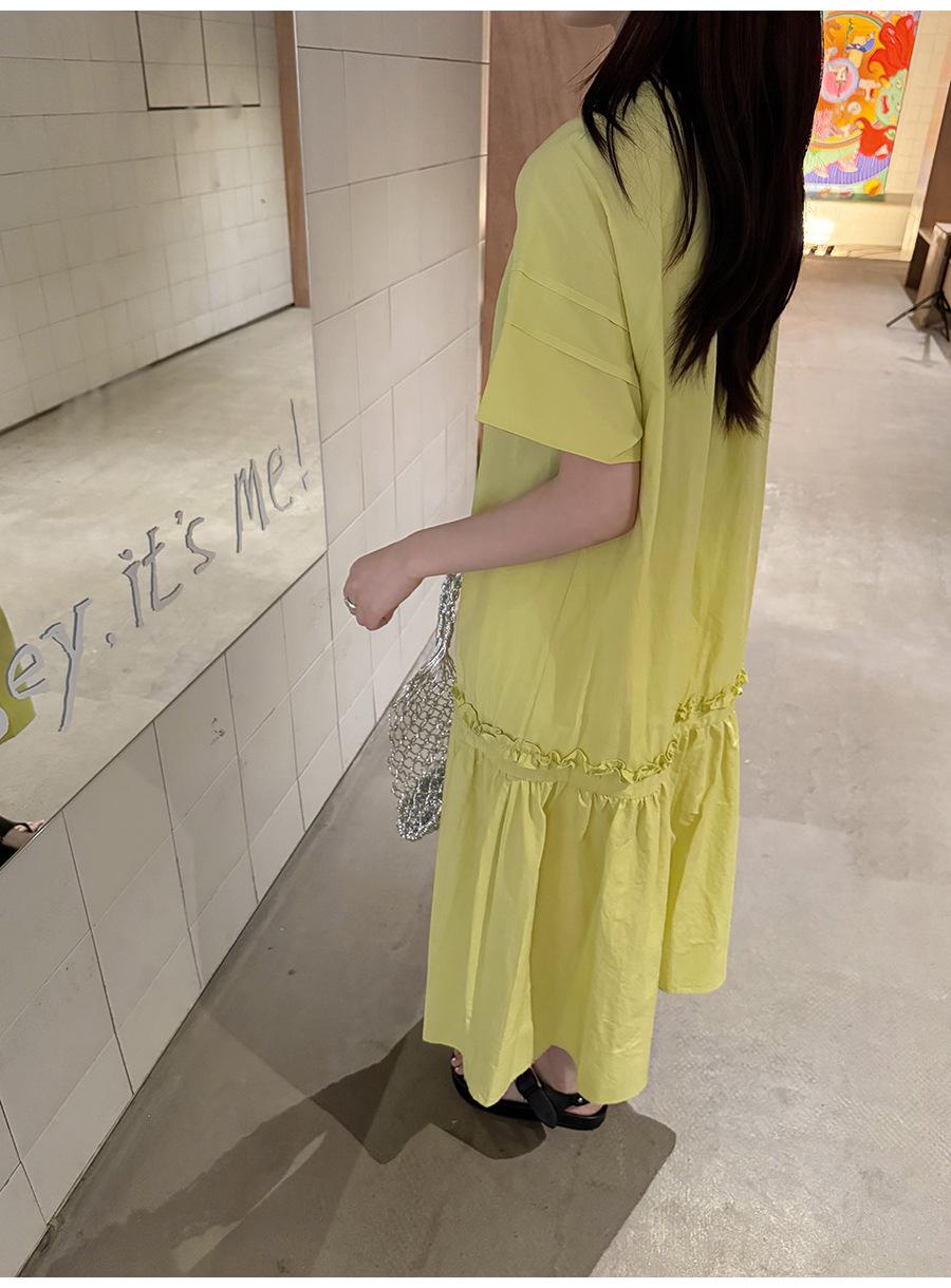 Lino Verano Nuevo Estilo Coreano Minúsculo Vestido de manga corta para mujer 2025 Edición Grande Falda holgada adelgazante