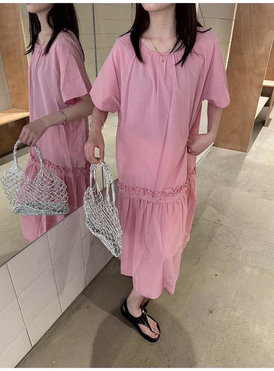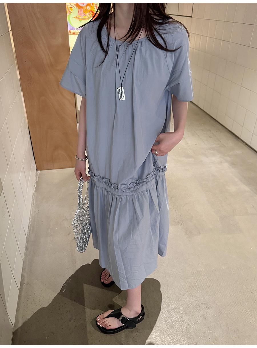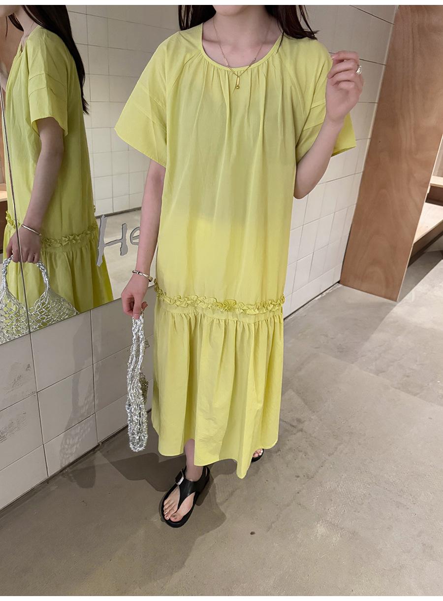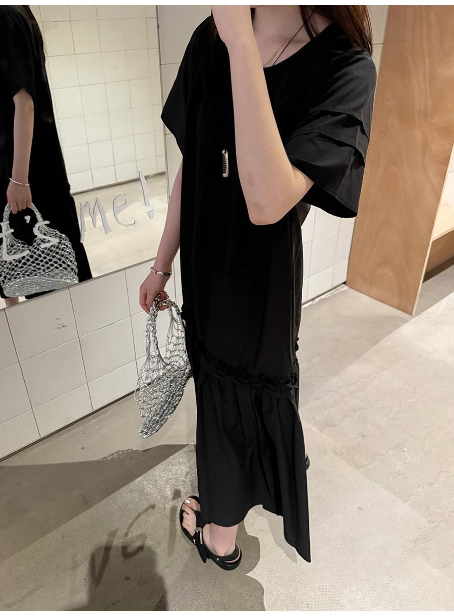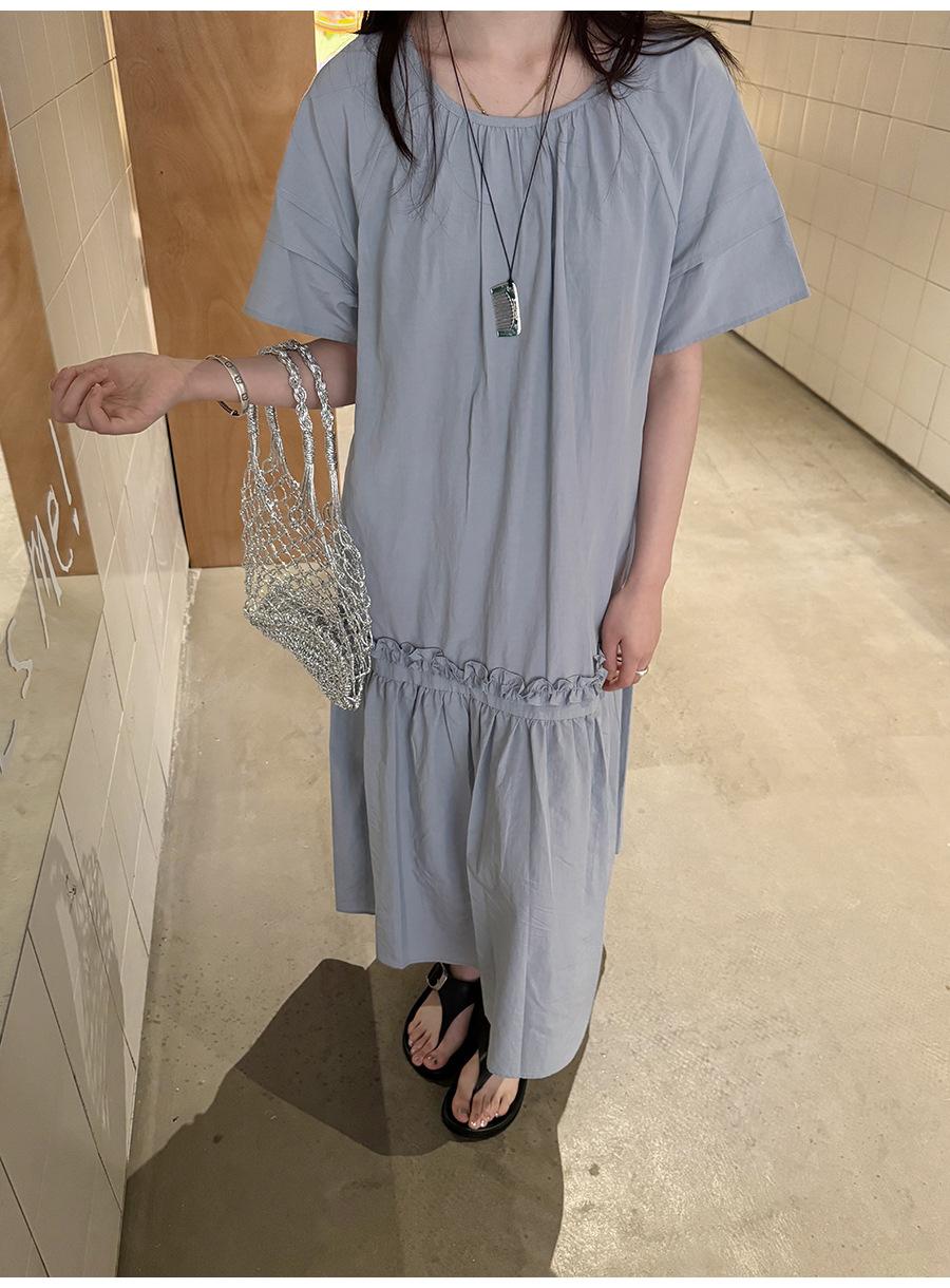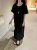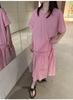 Lino Verano Nuevo Estilo Coreano Minúsculo Vestido de manga corta para mujer 2025 Edición Grande Falda holgada adelgazante