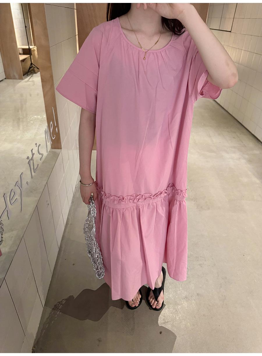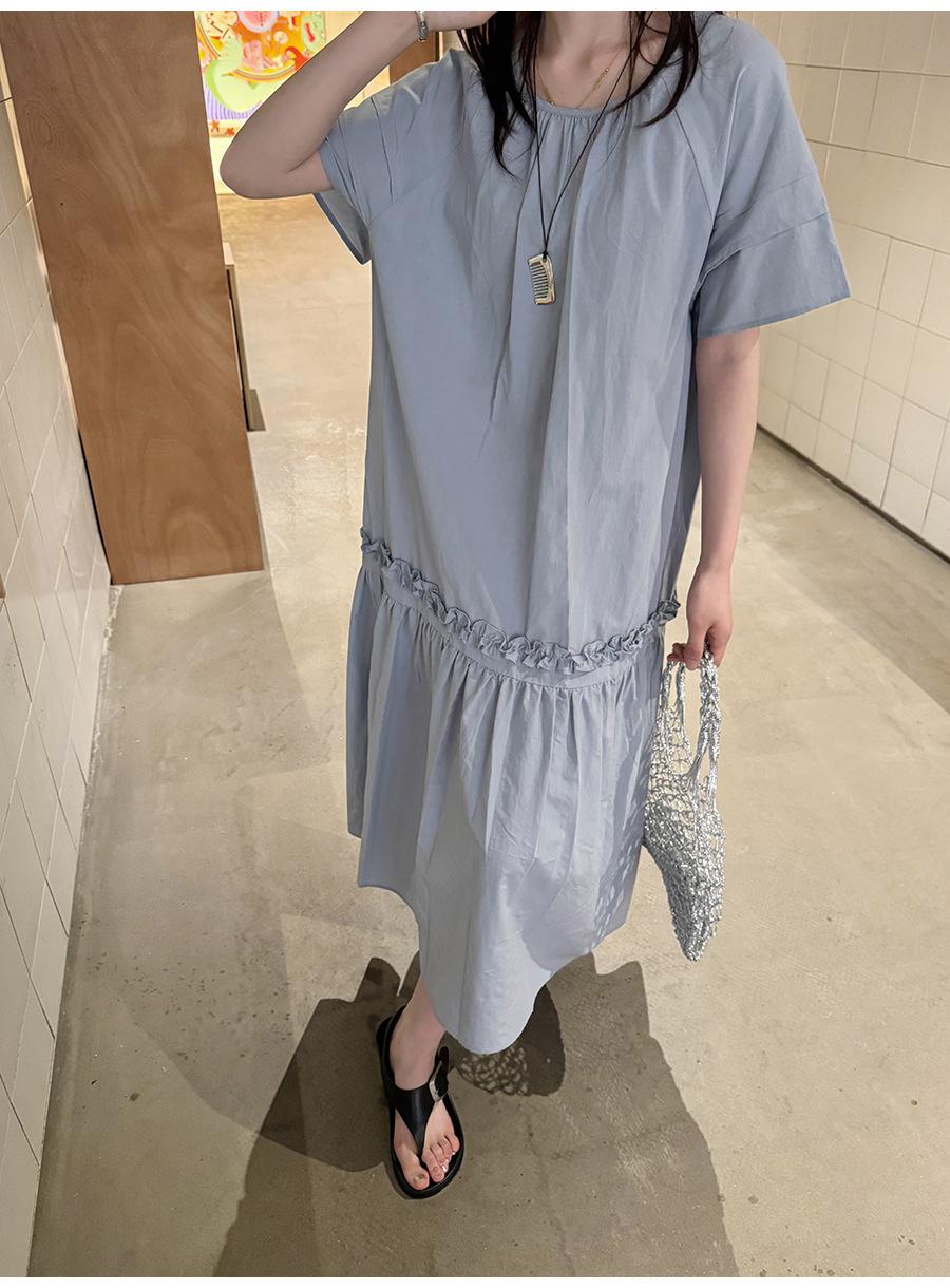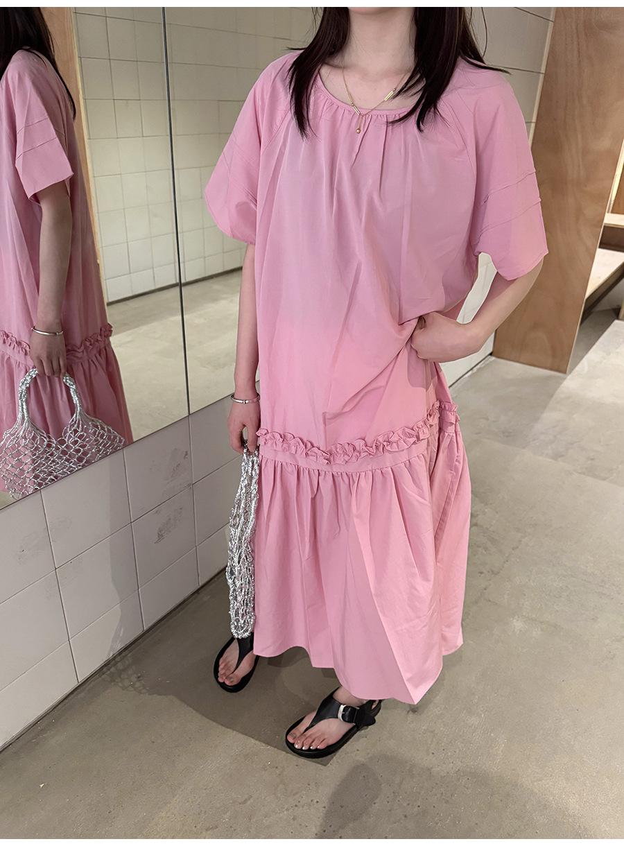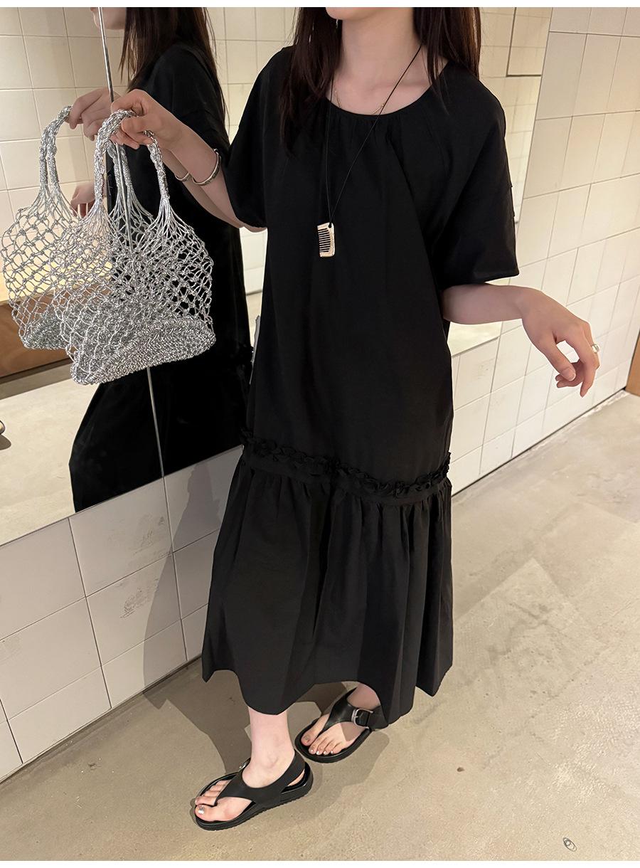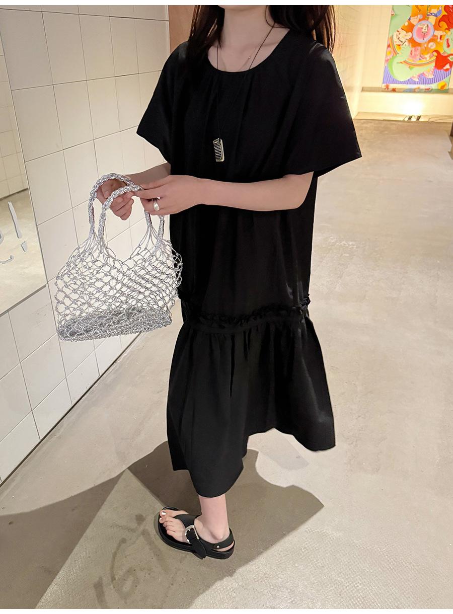Lino Verano Nuevo Estilo Coreano Minúsculo Vestido de manga corta para mujer 2025 Edición Grande Falda holgada adelgazante