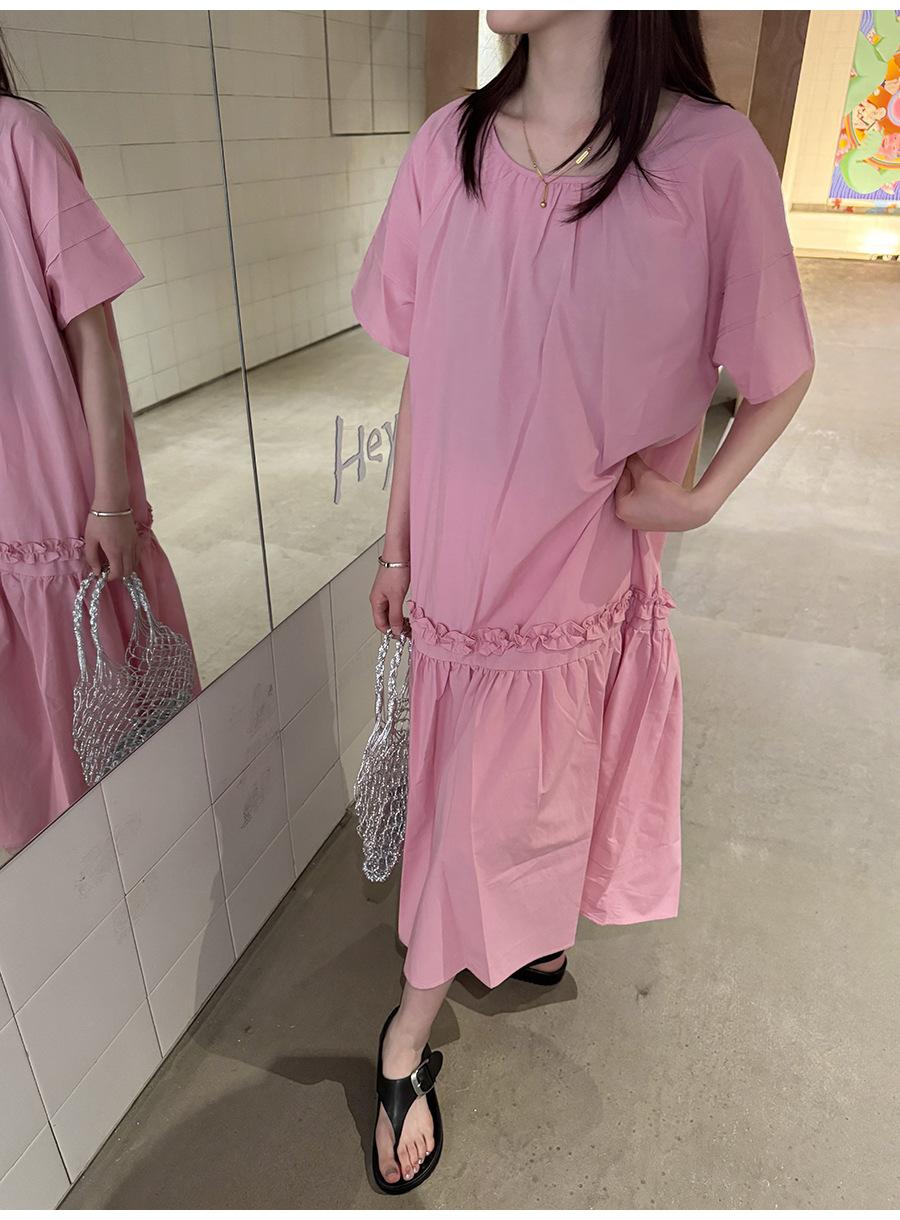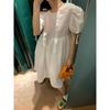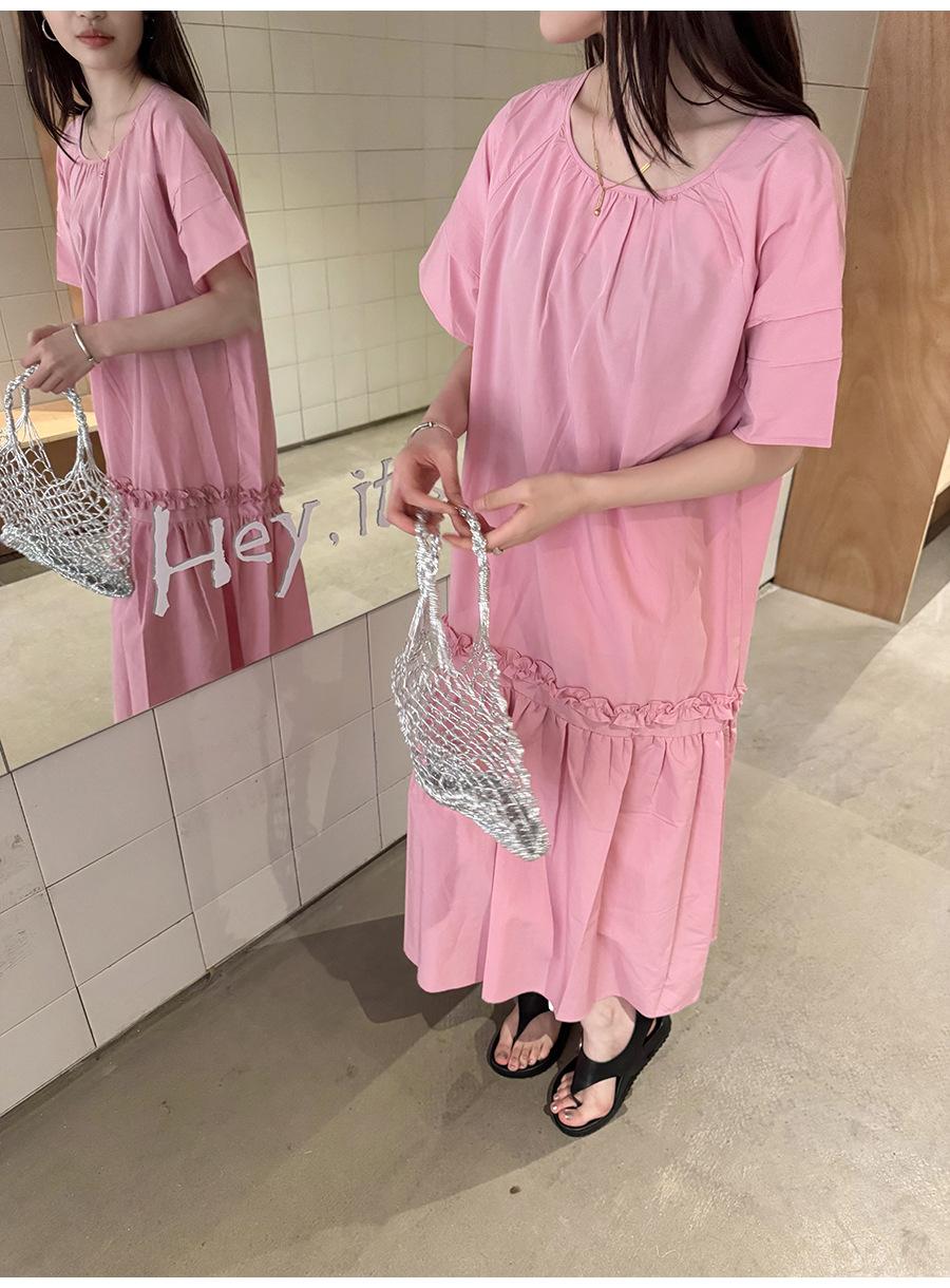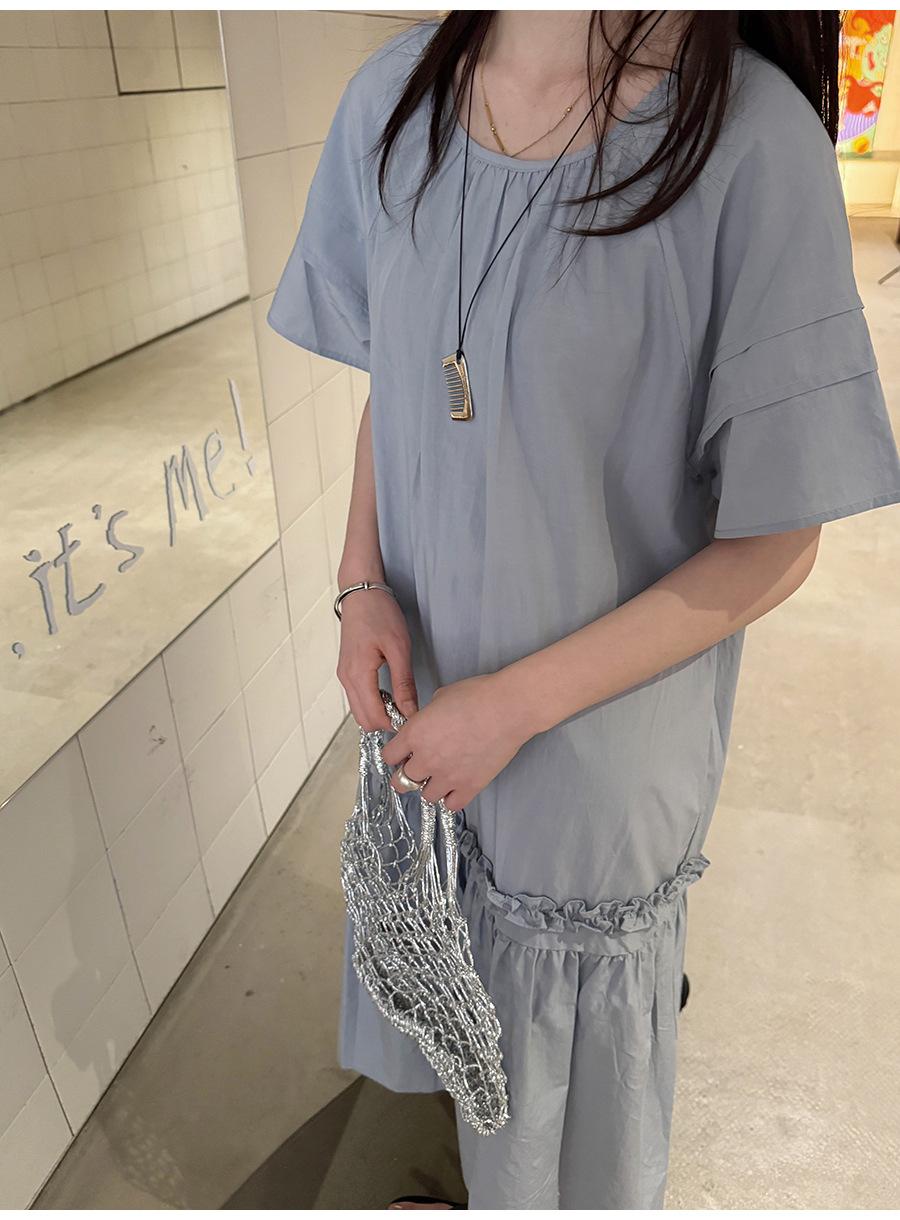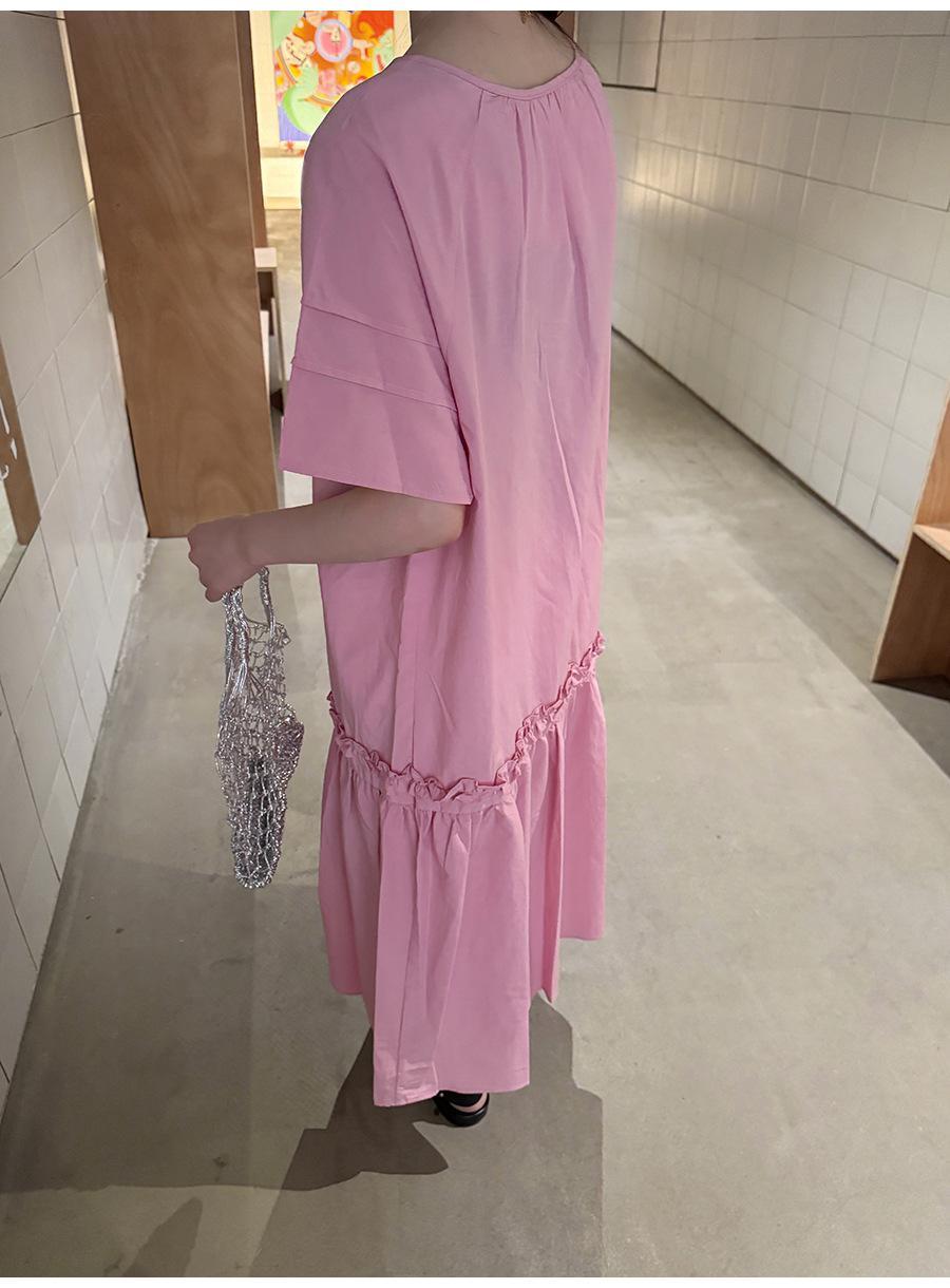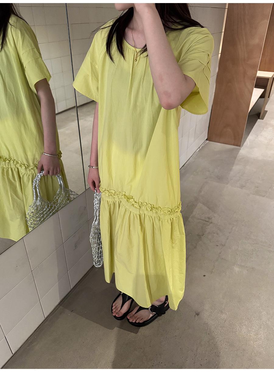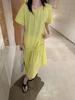 Lino Verano Nuevo Estilo Coreano Minúsculo Vestido de manga corta para mujer 2025 Edición Grande Falda holgada adelgazante