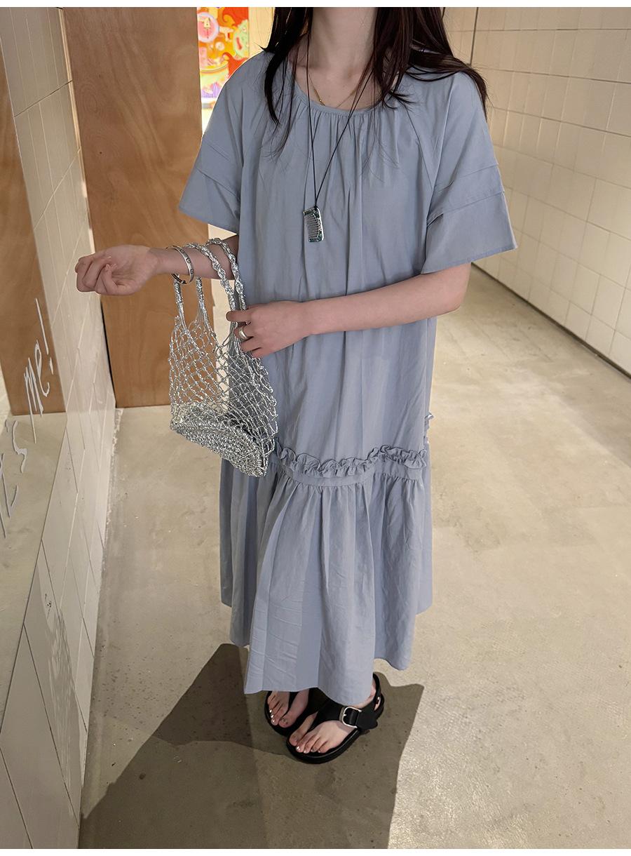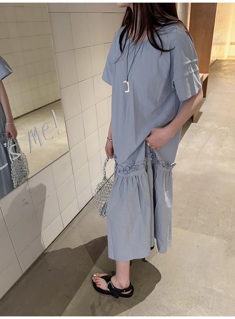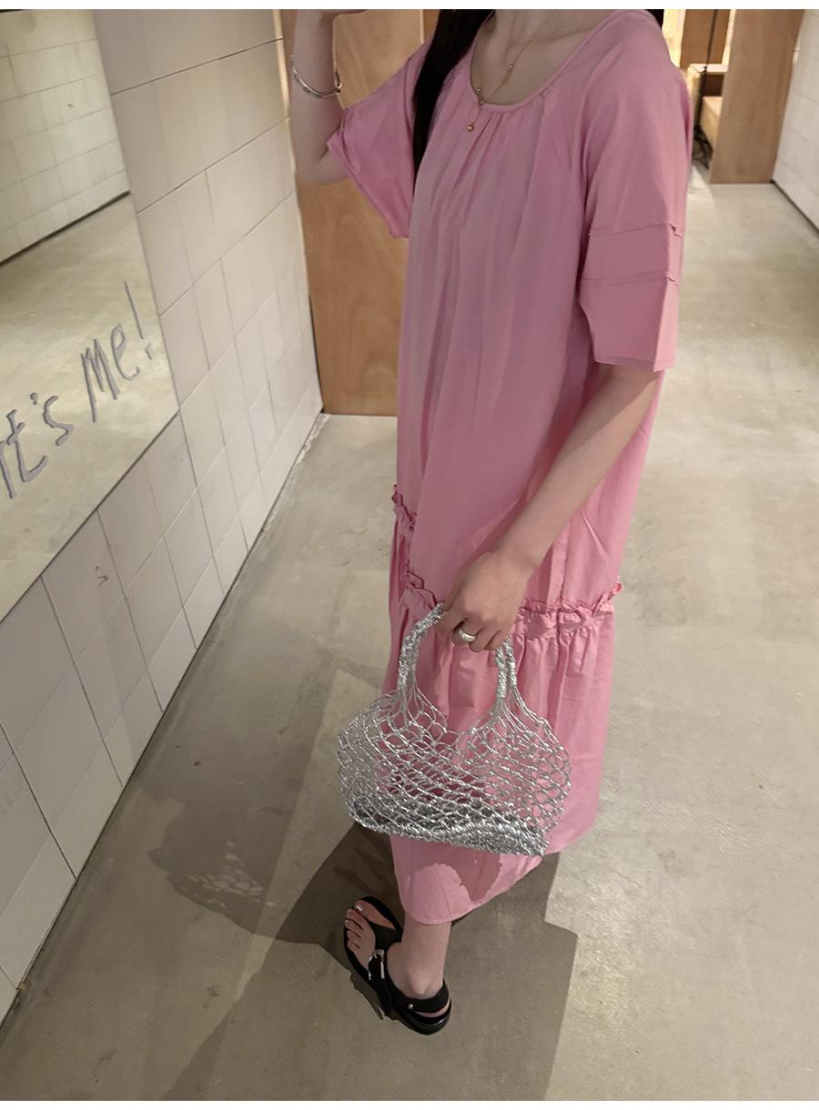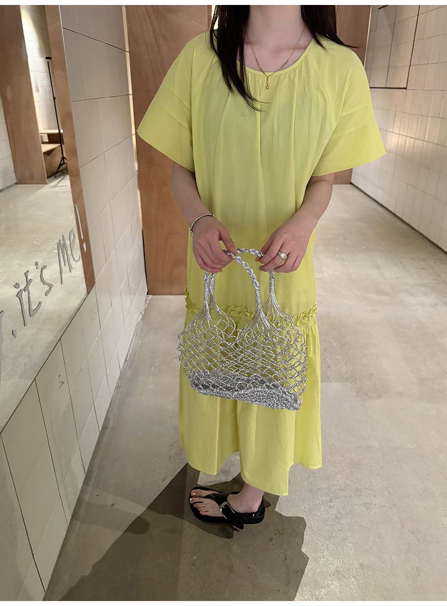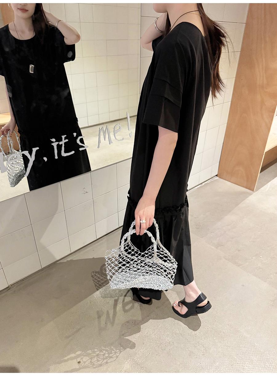 Lino Verano Nuevo Estilo Coreano Minúsculo Vestido de manga corta para mujer 2025 Edición Grande Falda holgada adelgazante