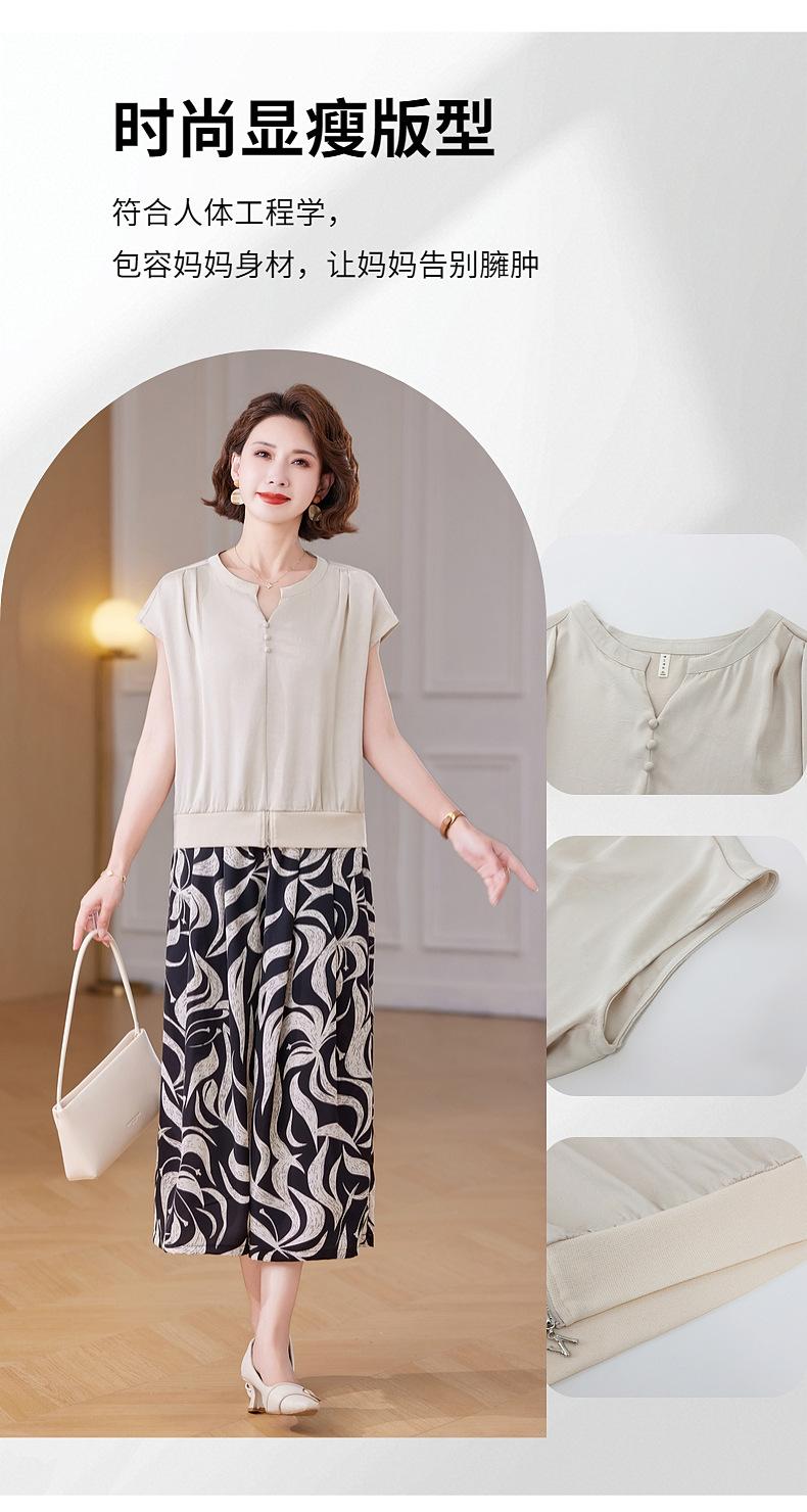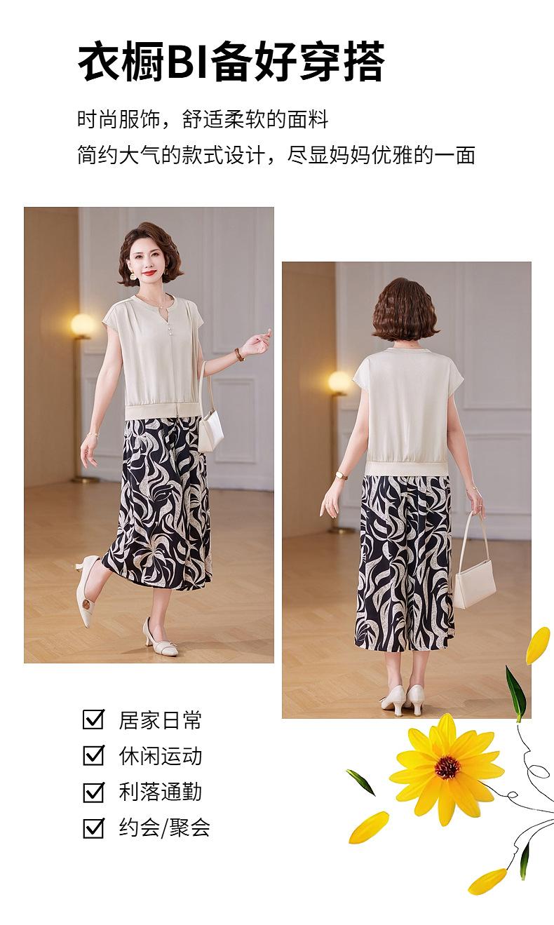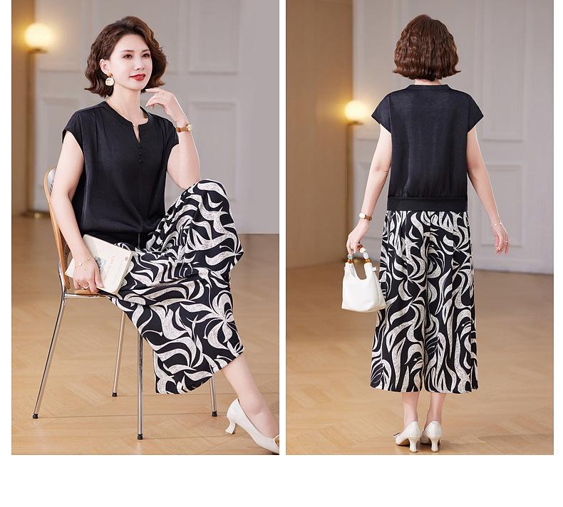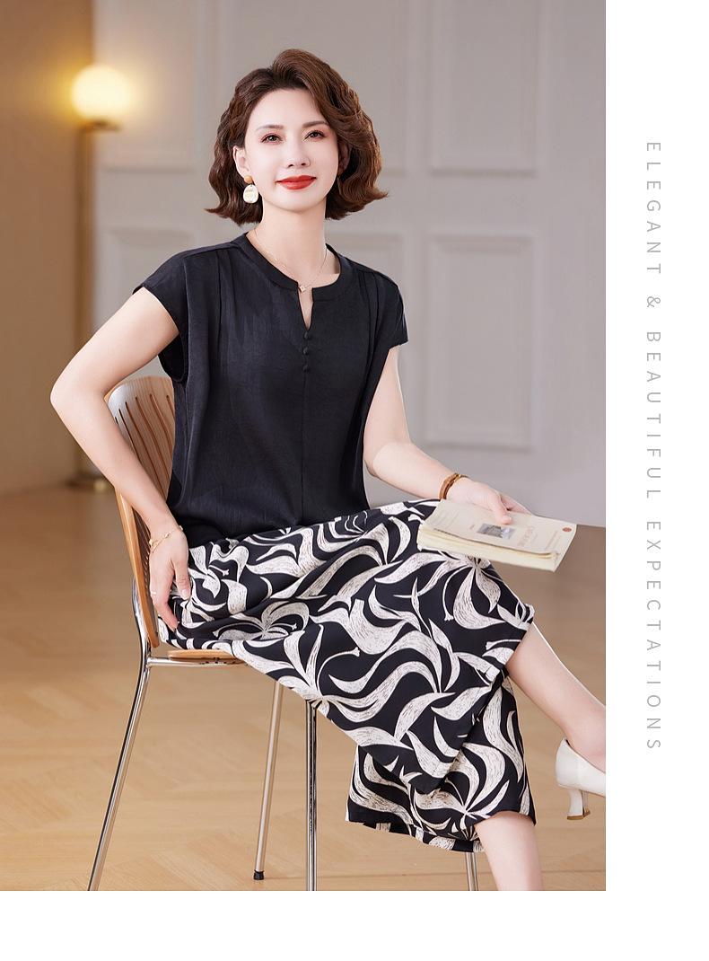 2025 Nuevos Tops de Verano para Madre de Mediana Edad Conjunto de Dos Piezas Moderno Conjunto de Dos Piezas Adelgazante y Versátil para Mujer de Mediana Edad