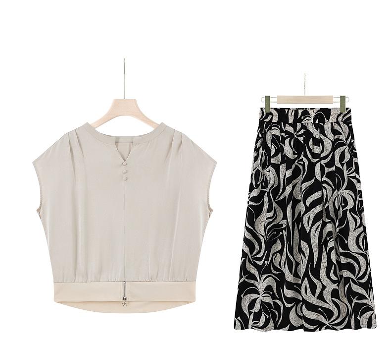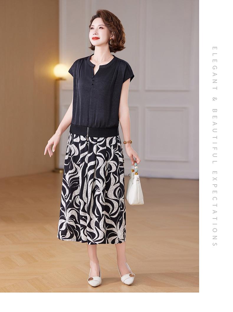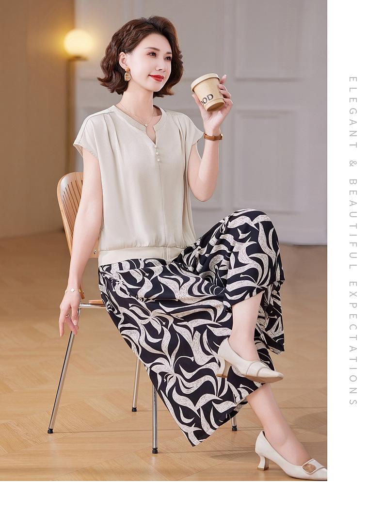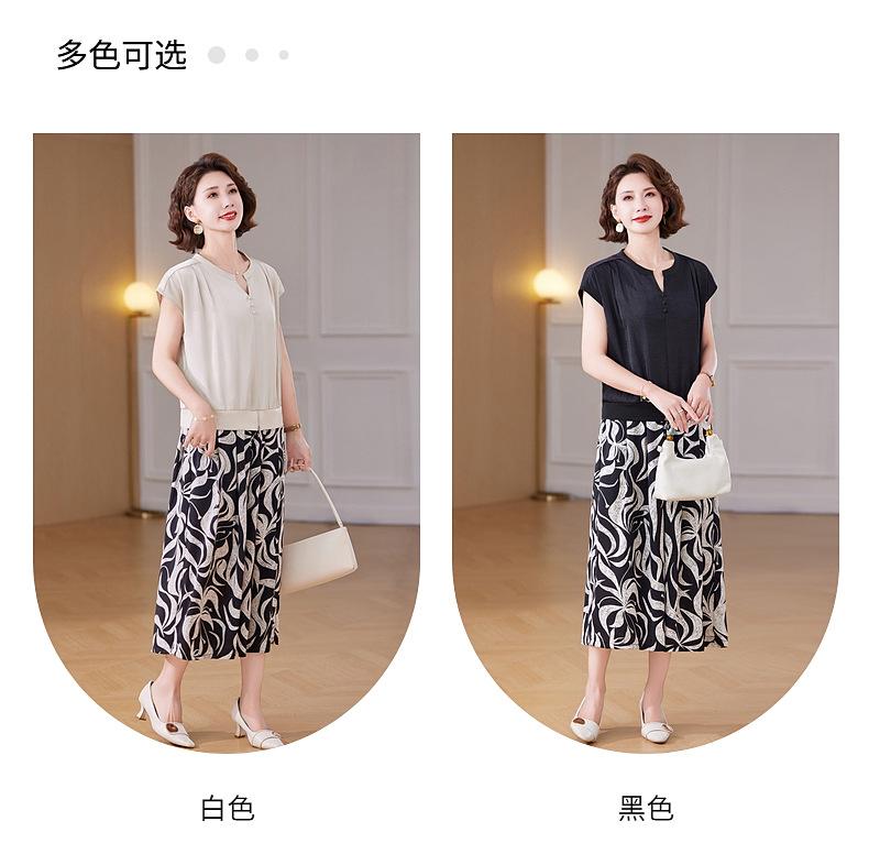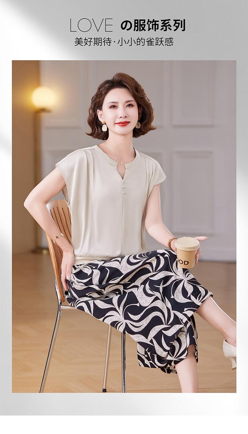 2025 Nuevos Tops de Verano para Madre de Mediana Edad Conjunto de Dos Piezas Moderno Conjunto de Dos Piezas Adelgazante y Versátil para Mujer de Mediana Edad
