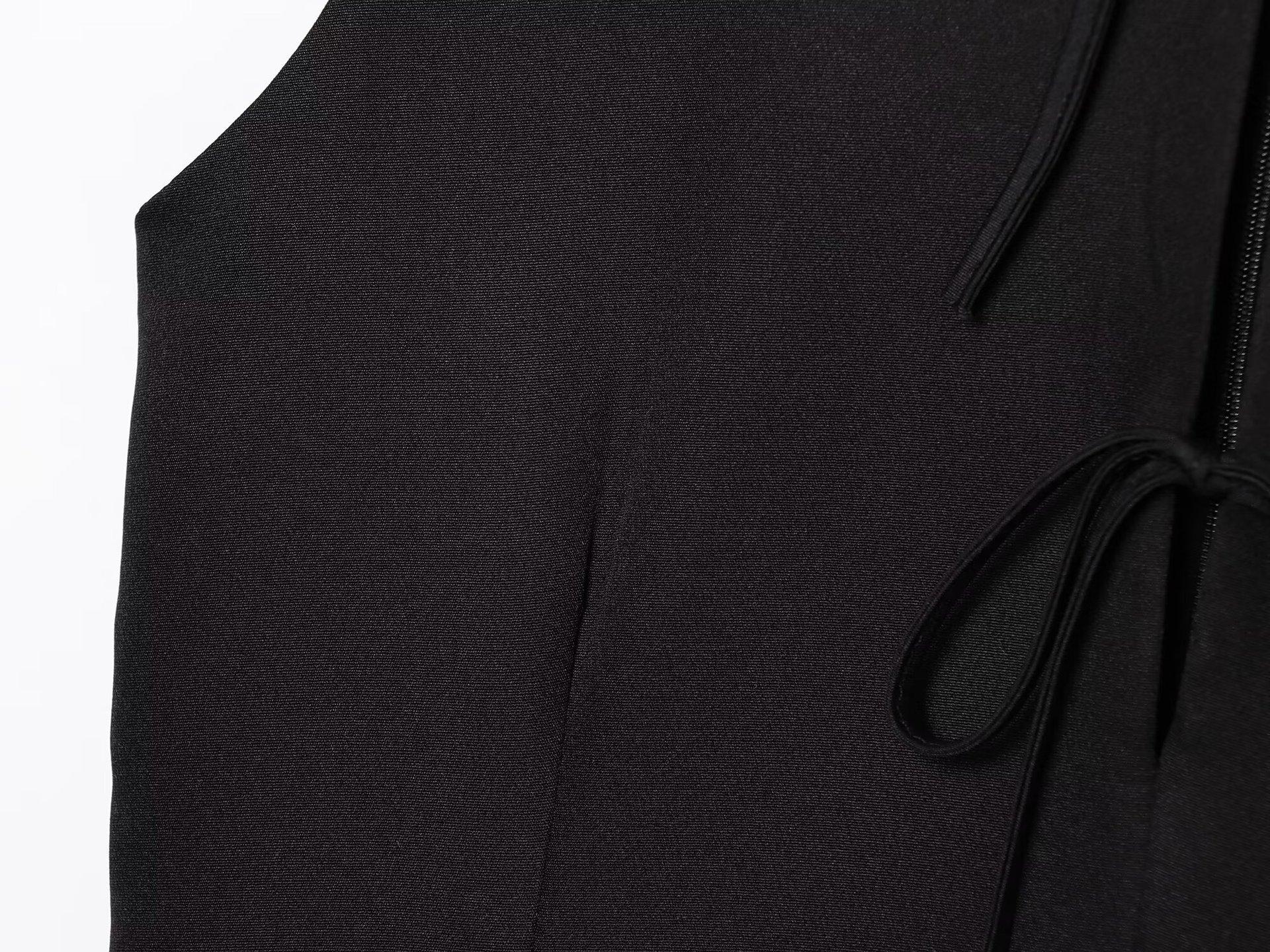 Ropa Europea y Americana Transfronteriza 2025 Primavera y Verano Nueva Moda Vestido Corto con Lazo y Bajo Ondulado Amplio 46613