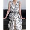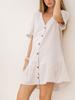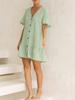 Verano Nuevo Vestido de Algodón y Lino con Cuello en V, Diseño para Mujer Lindo y Dulce con Volantes, Falda Corta A de Botonadura Sencilla