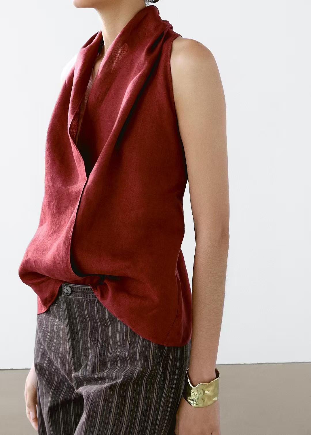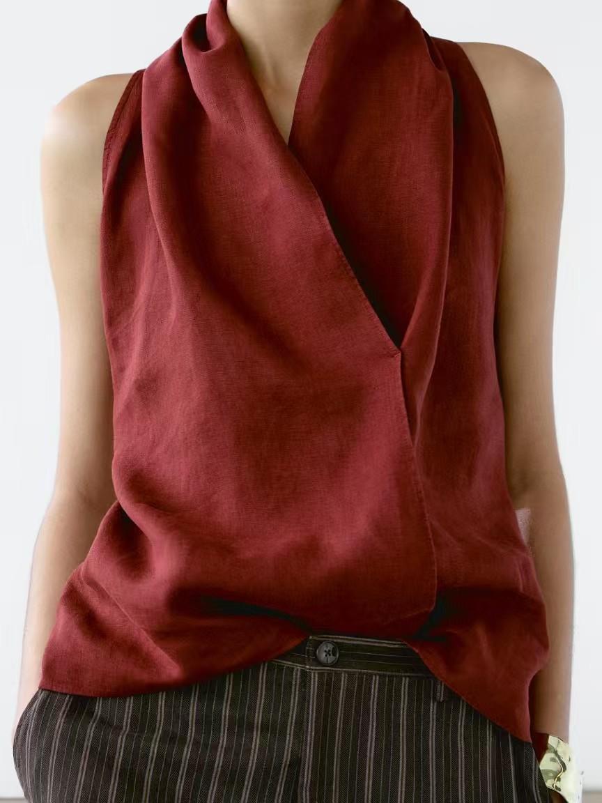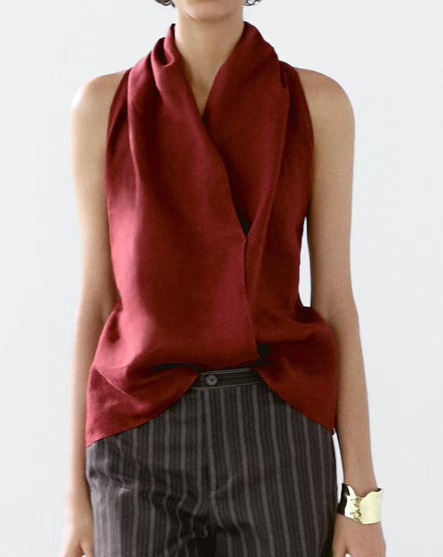 Niche 2025 Verano Nuevo Color Sólido Cruz Halter Cuello Casual Adelgazante Sin Mangas Camiseta Top para Mujer