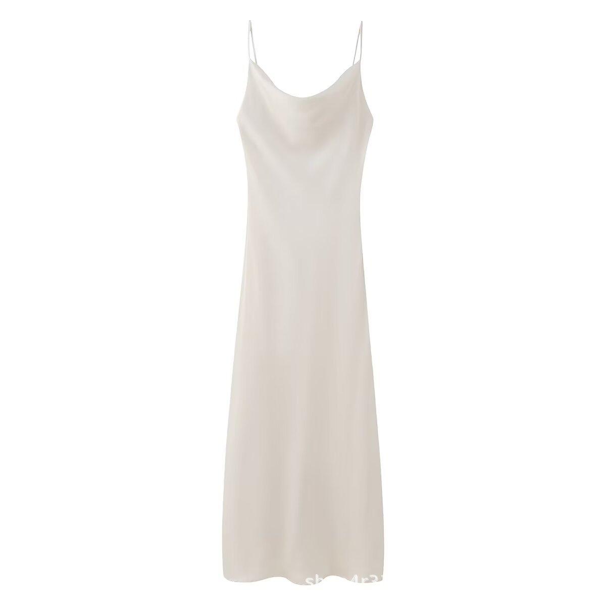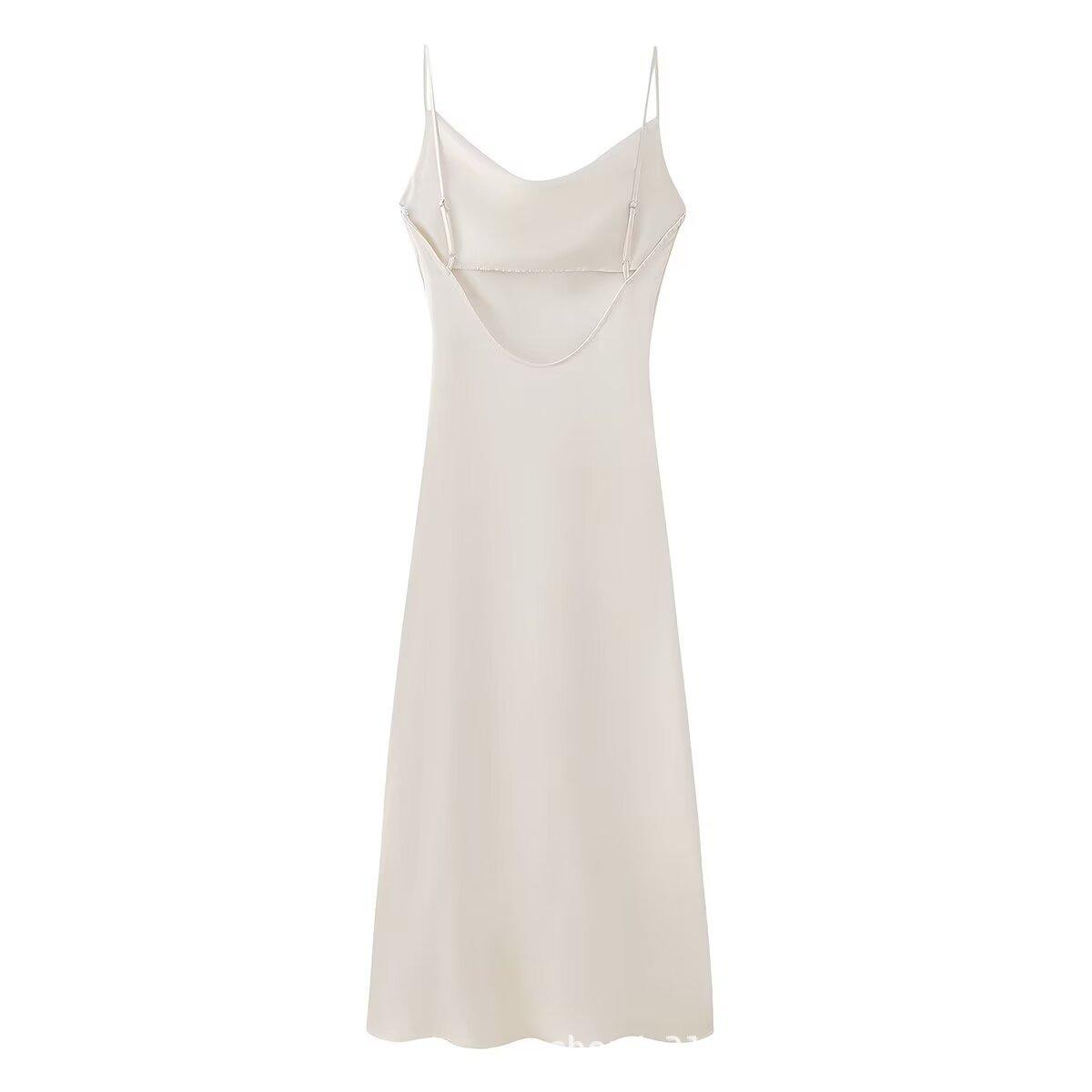Estilo Europeo y Americano 2024 Verano Nueva Moda Sin Mangas Color Sólido Sexy Espalda Descubierta Vestido de Tirantes