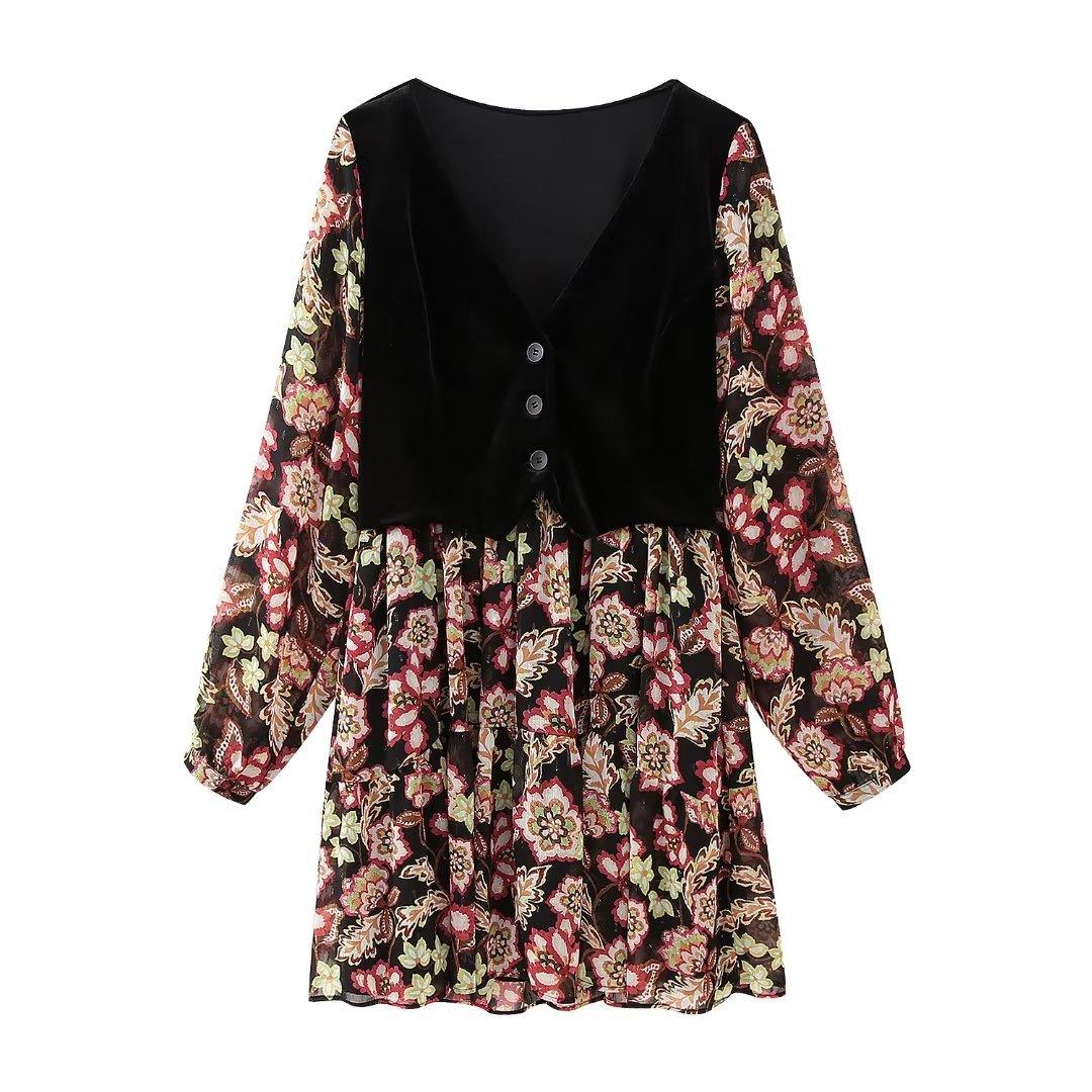 Venta al por mayor transfronteriza Vestido de chaleco de empalme de moda otoño 2023 europeo y americano