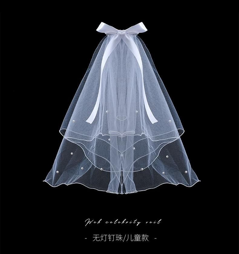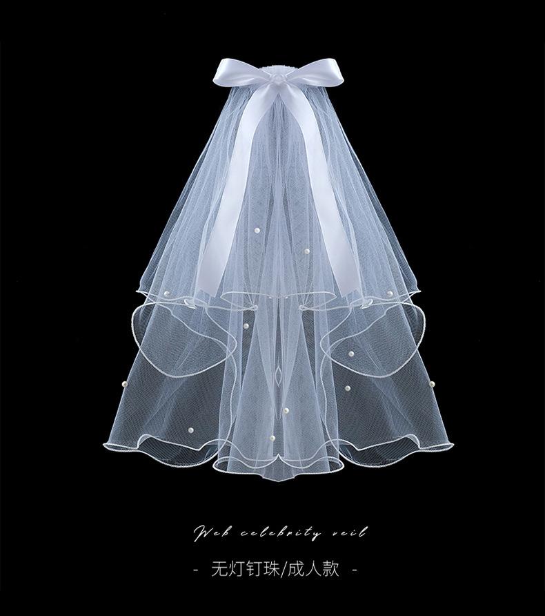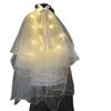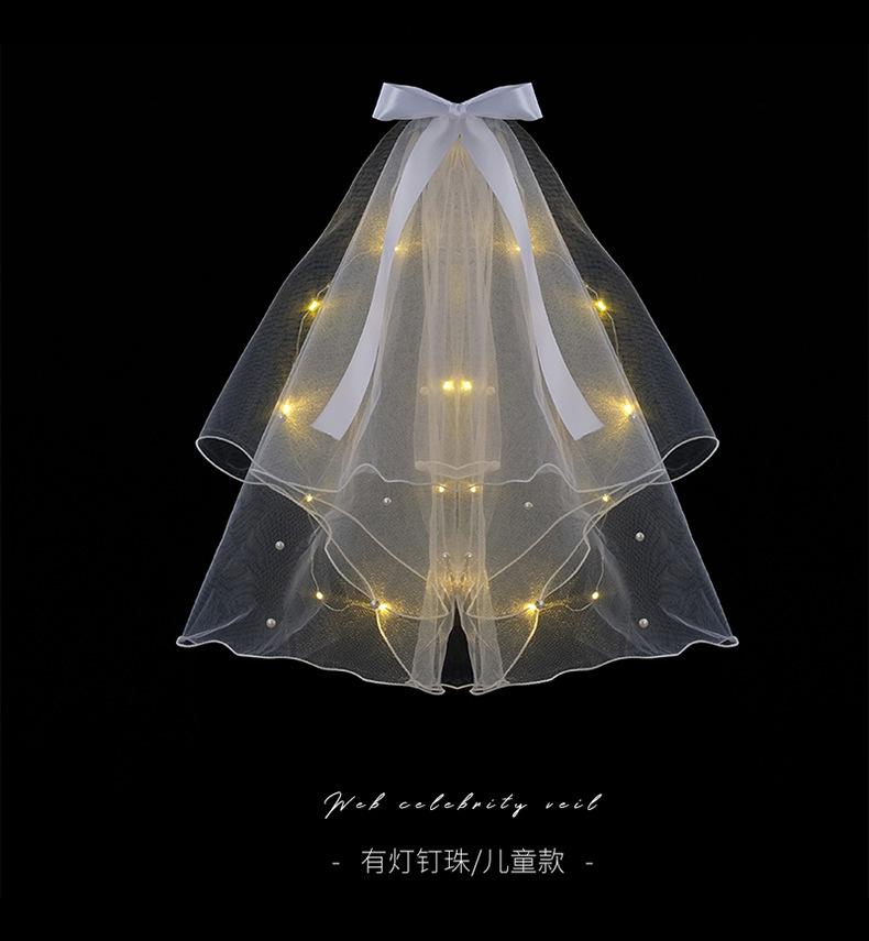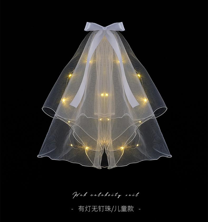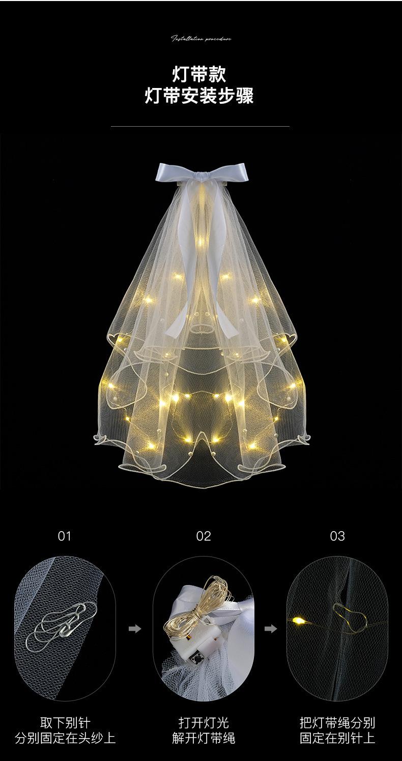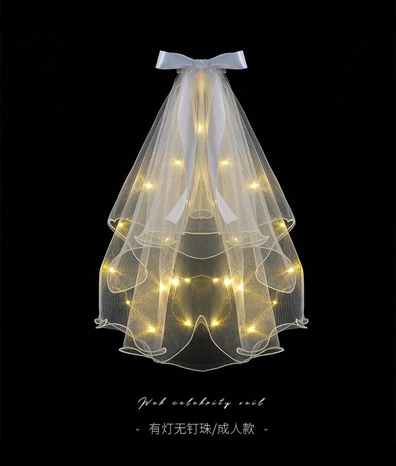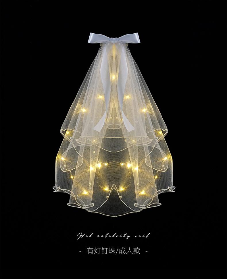 Velo Luminoso de Celebridad de Internet con Luces Borla Doble Capa Corona de Perlas con Lazo de Cinta Velo Tocado para Vestido de Novia Lote de Fabricante