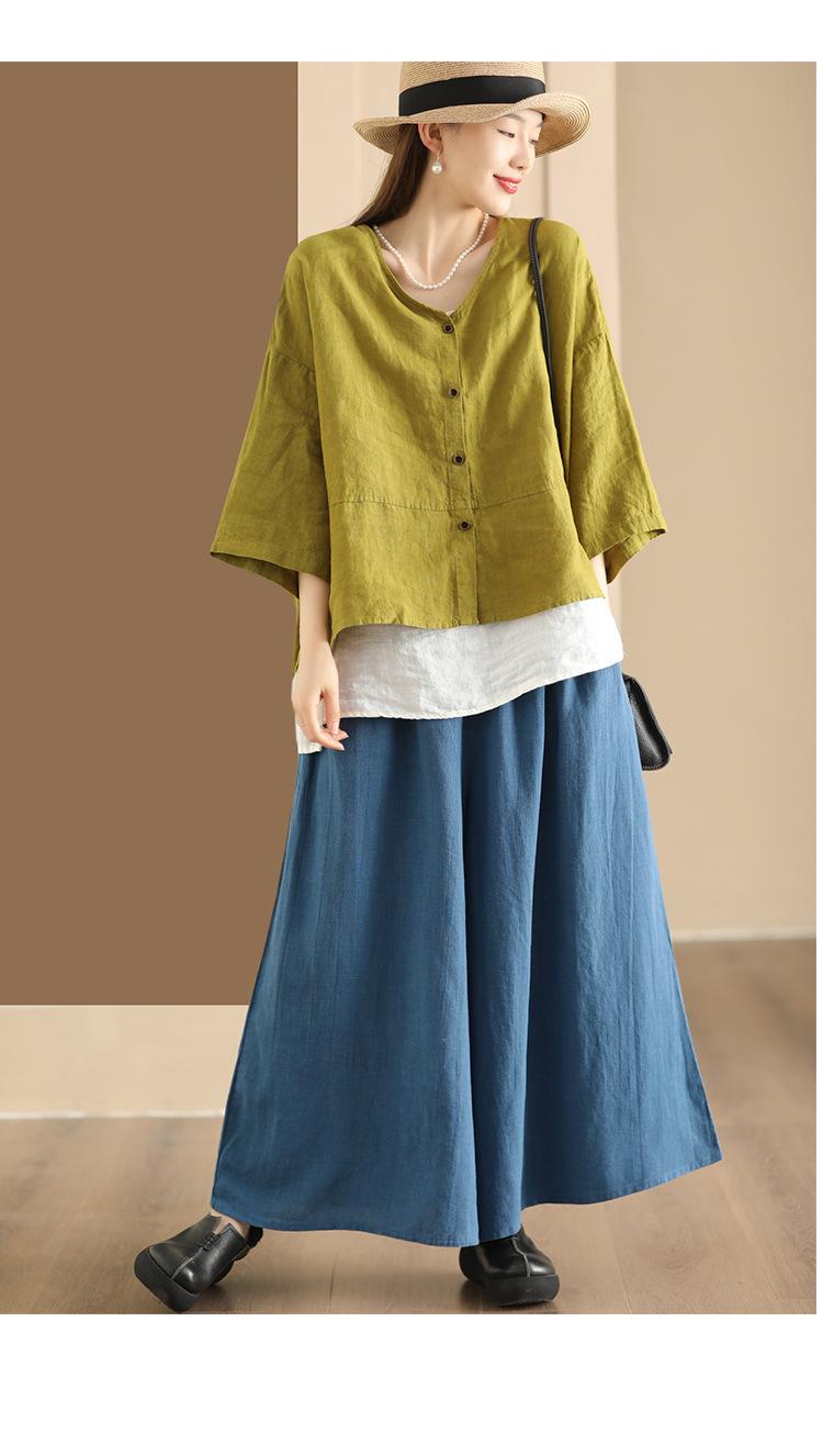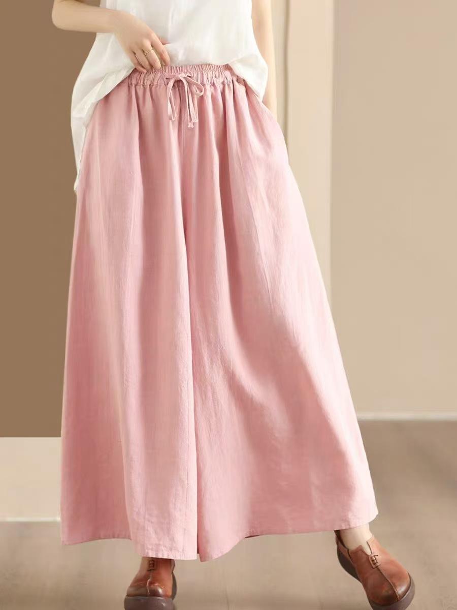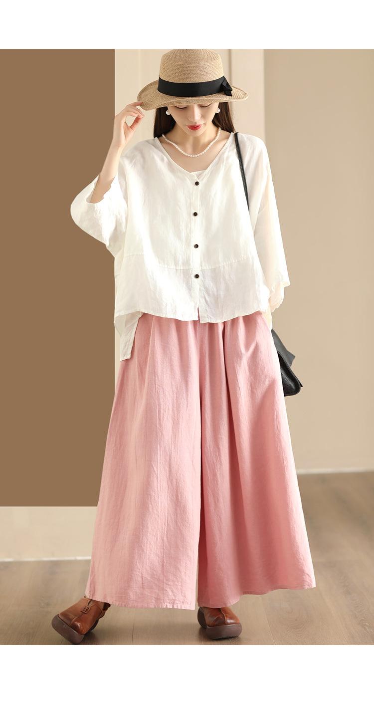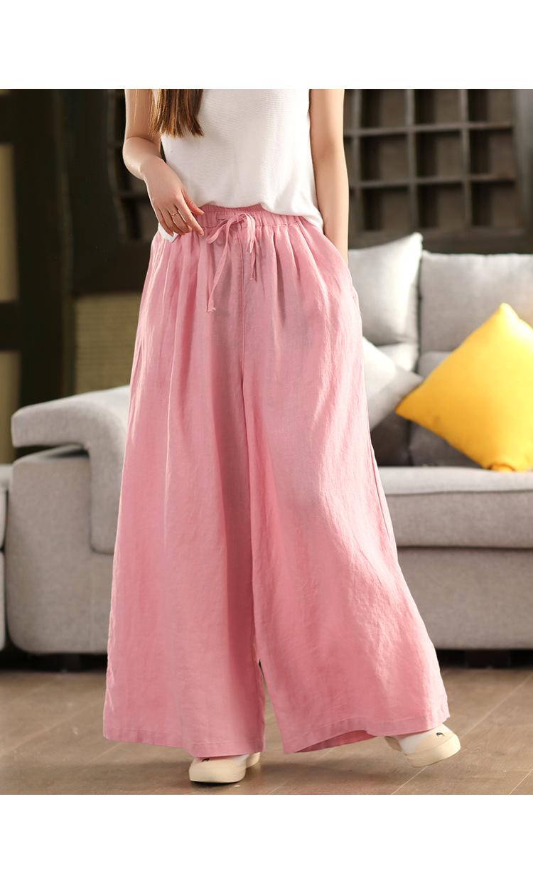Sitio Web Oficial Retro Artístico Tirante Delgado Lino Pantalones de Pierna Ancha Simple Combinable Casual Adelgazante Pantalones de Pierna Recta Primavera y Verano