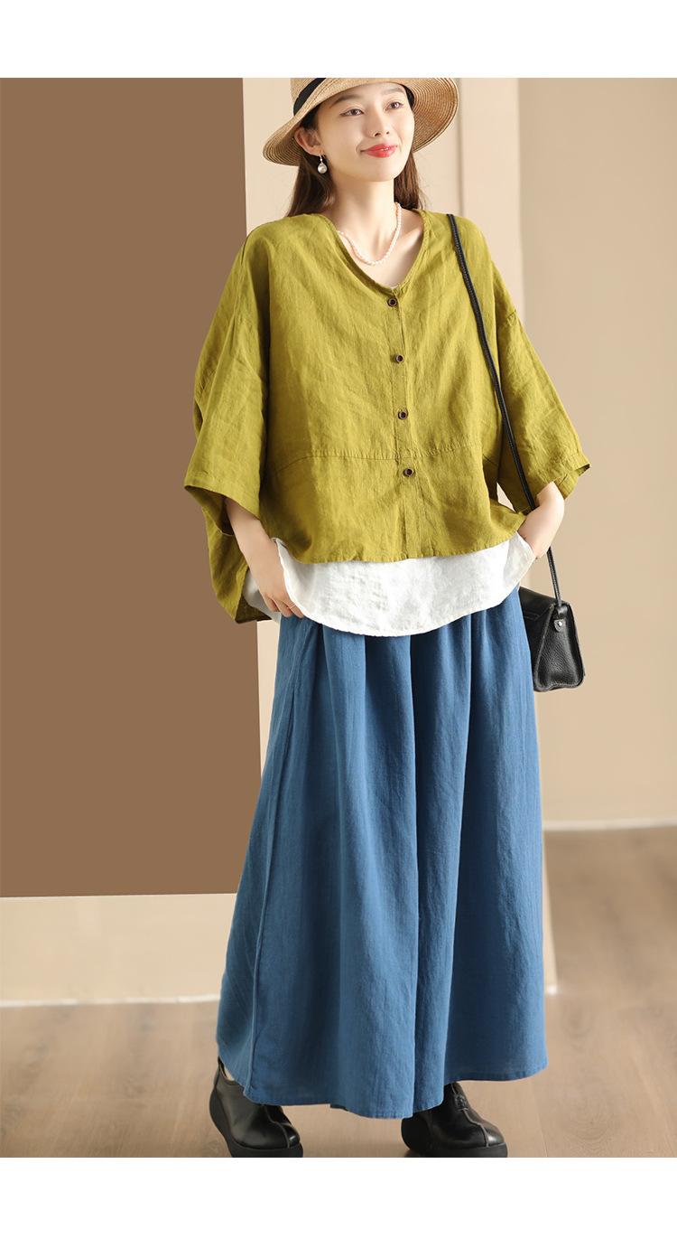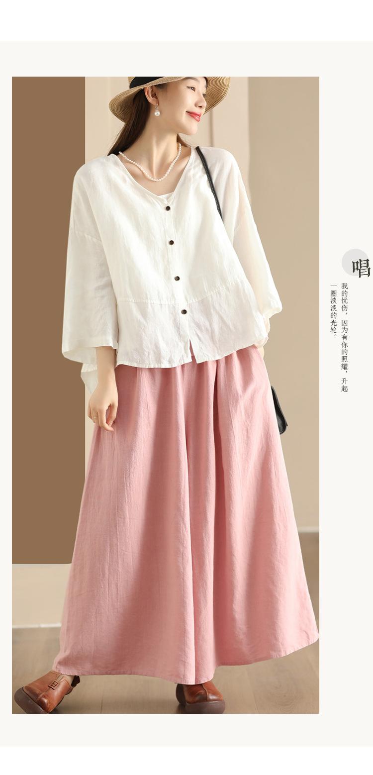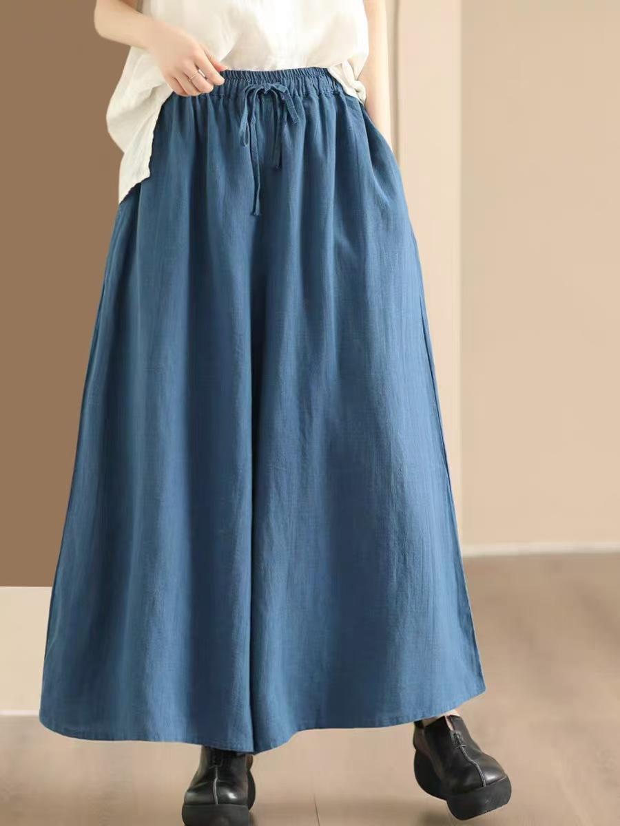 Sitio Web Oficial Retro Artístico Tirante Delgado Lino Pantalones de Pierna Ancha Simple Combinable Casual Adelgazante Pantalones de Pierna Recta Primavera y Verano