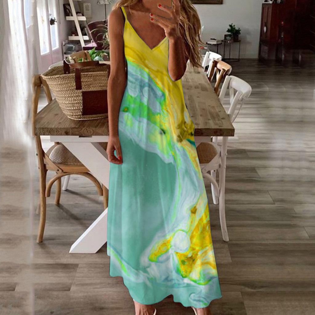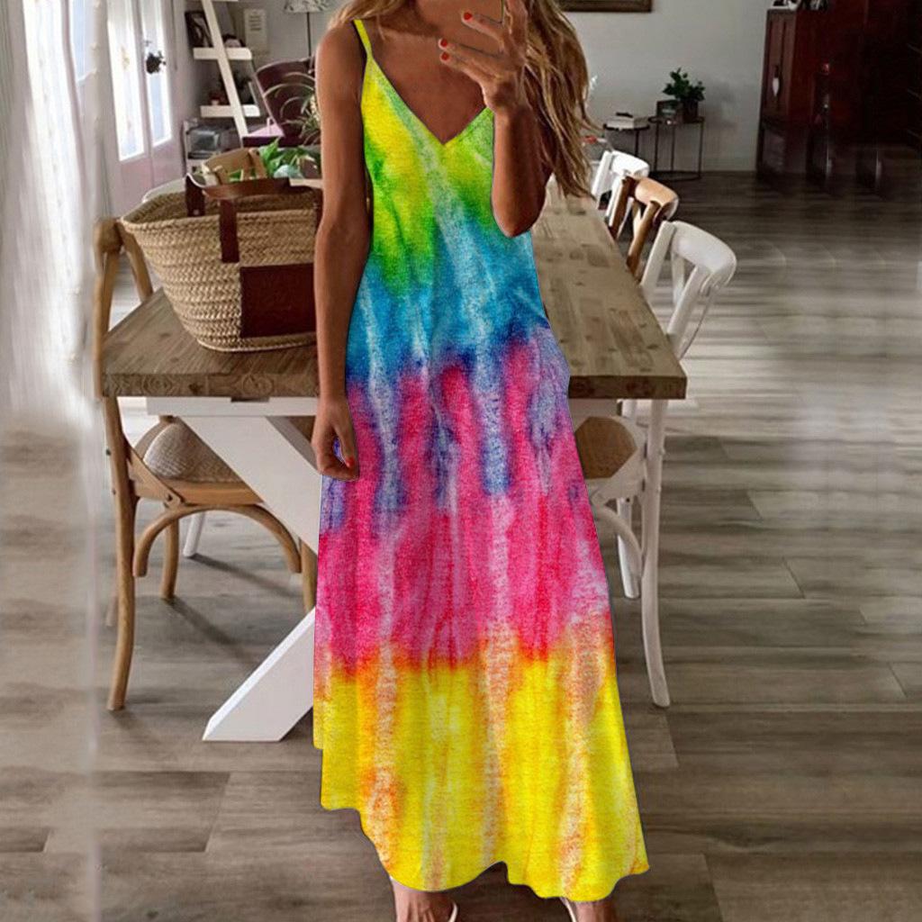Compra Amazon 2023 Nuevo Europeo y Americano Degradado Tie-Dye Impresión Digital 3D Tirante Hombro Cuello en V Hombro Vestido al por mayor en Joom.pro