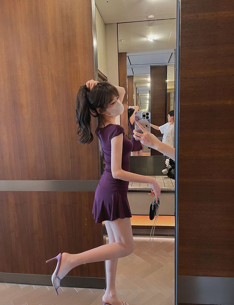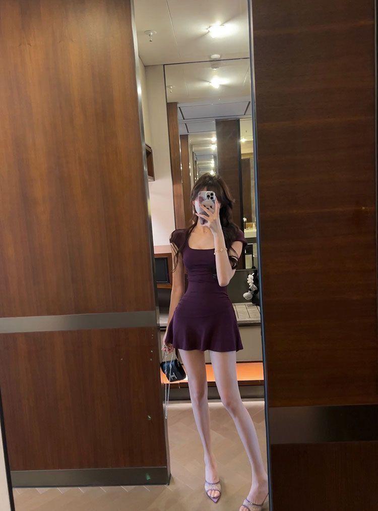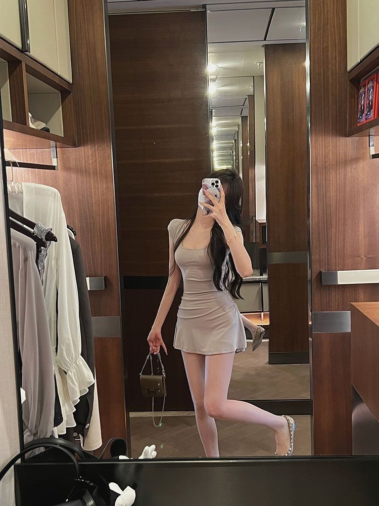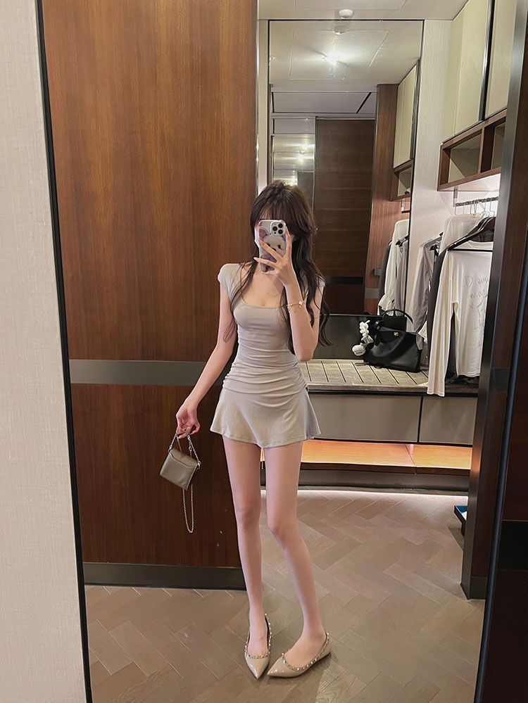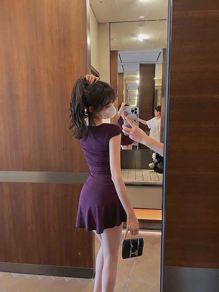 Compra Vestido de Verano de Manga Corta con Cuello U Dulce y Picante para Mujer Petite, Estilo Deseo Puro, Corte A, Cintura Ajustada, Adelgazante, Vestido Corto al por mayor en Joom.pro
