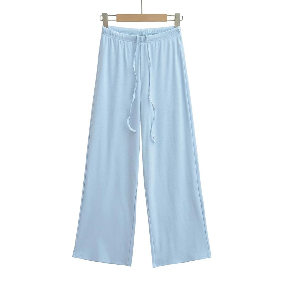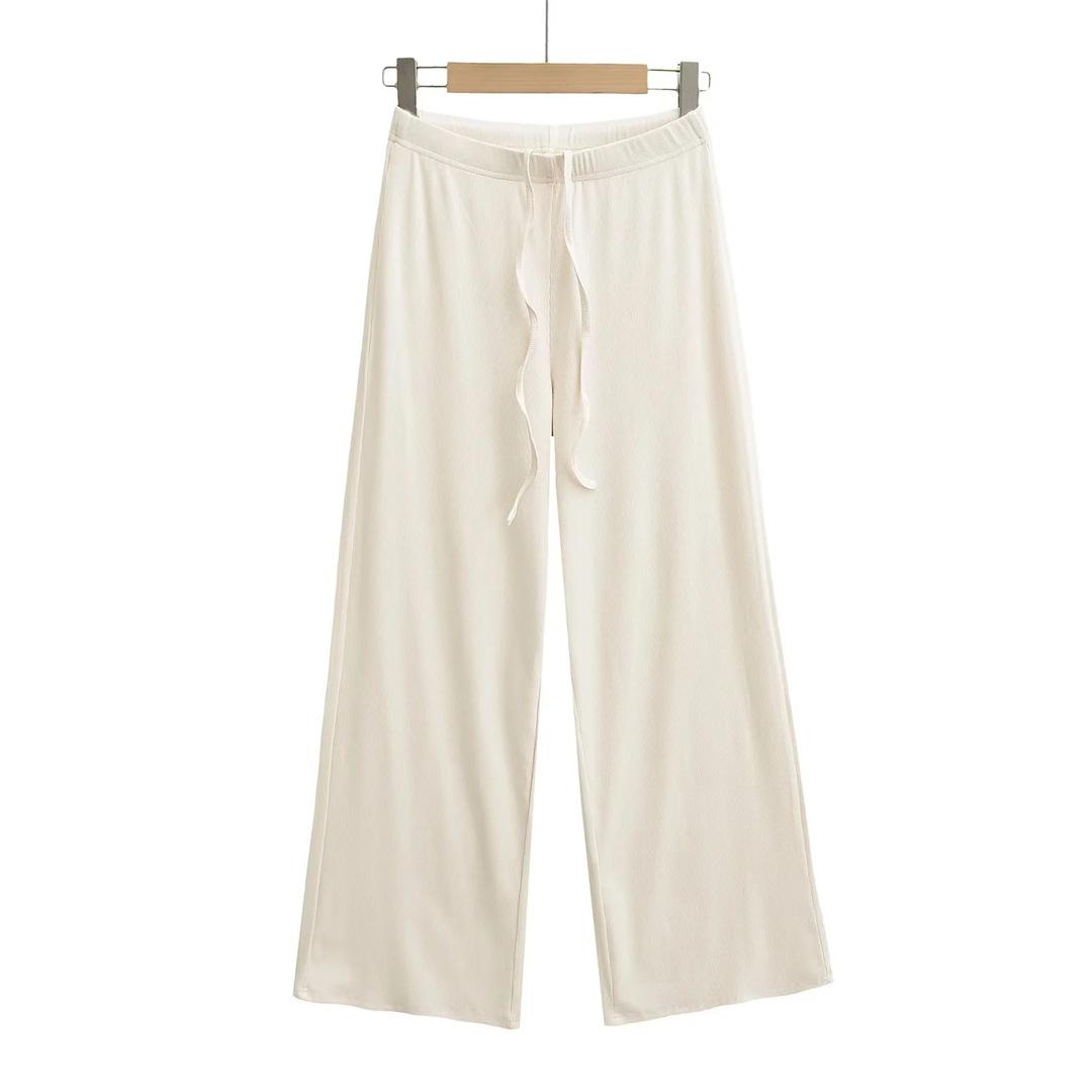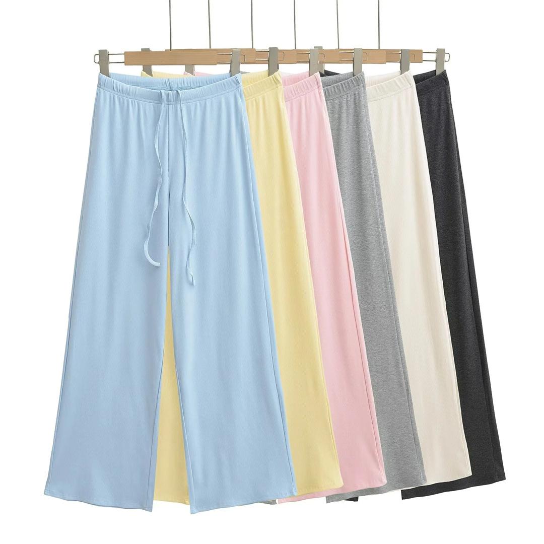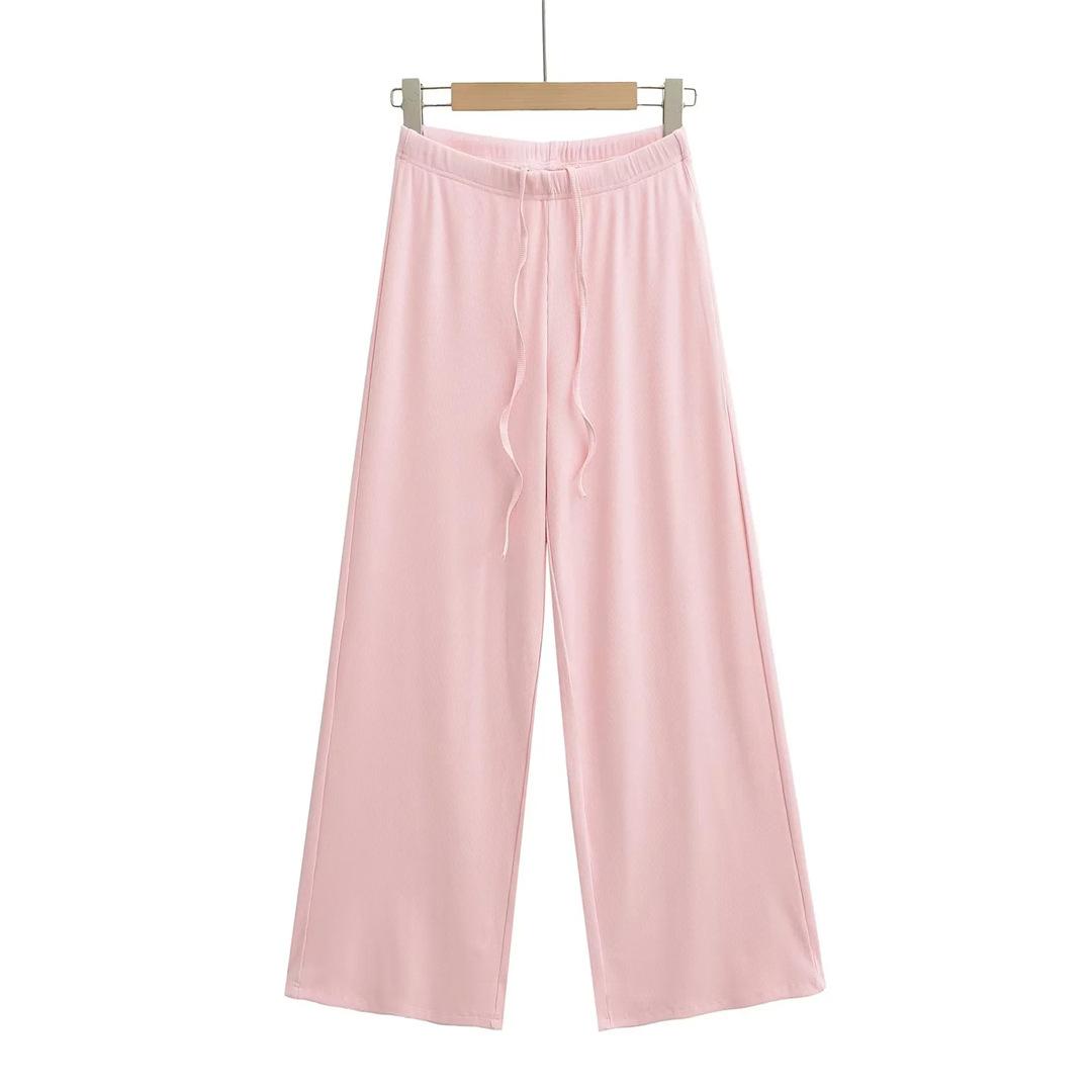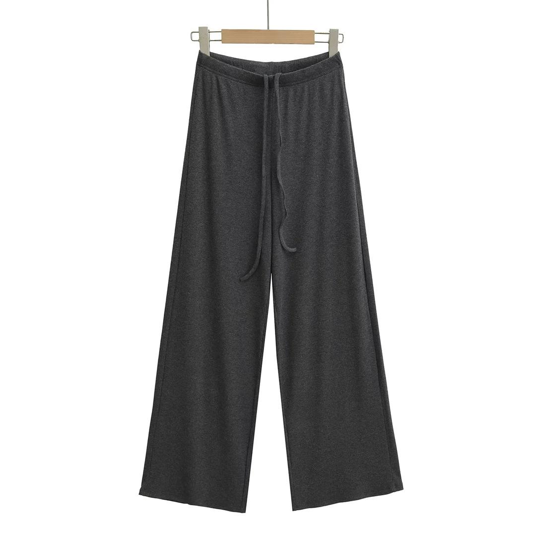 Compra Pantalones Vintage Holgados Suaves con Caída para Mujer Cintura Elástica Cordón Casual Cómodos Pierna Recta Largo hasta el Piso al por mayor en Joom.pro