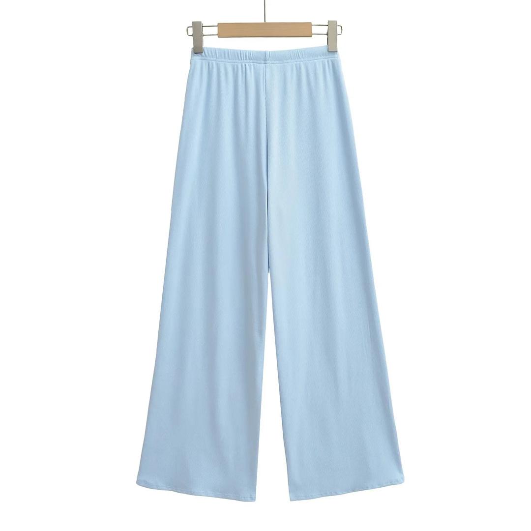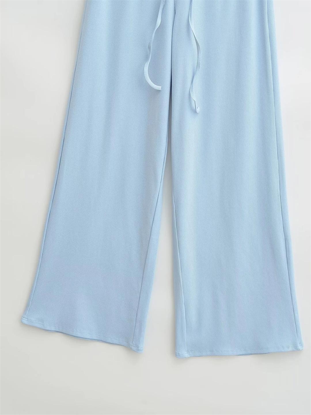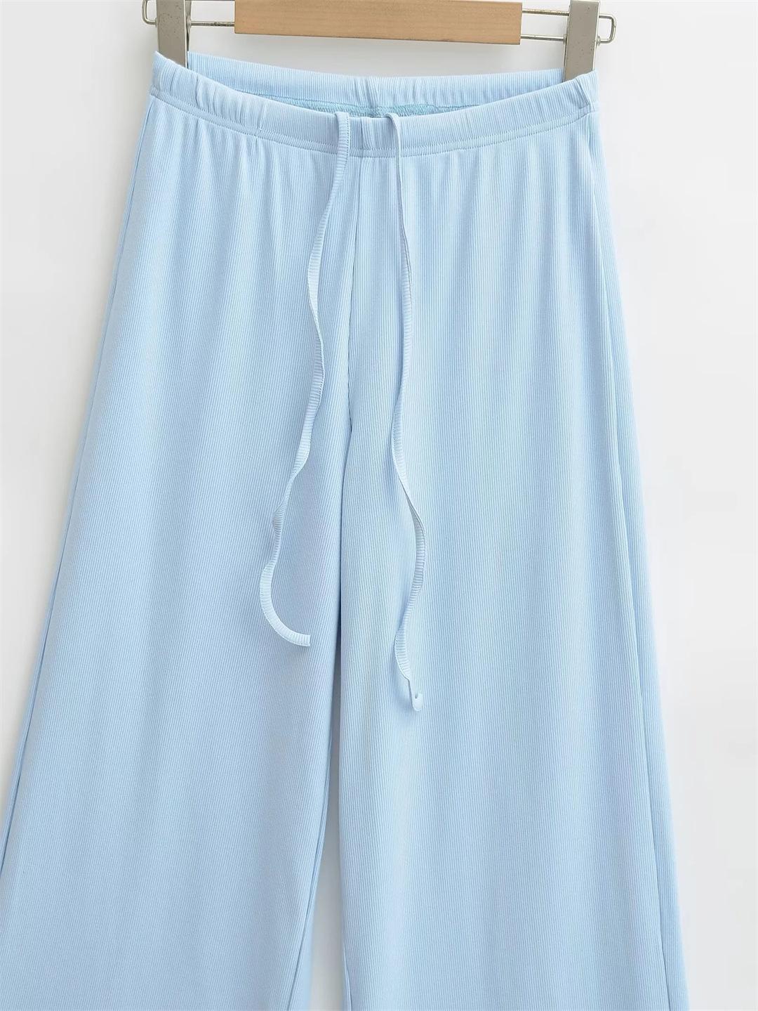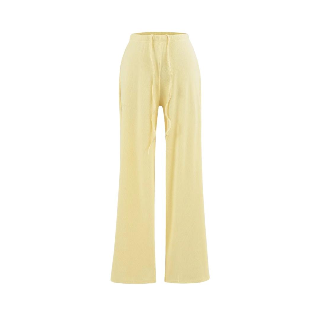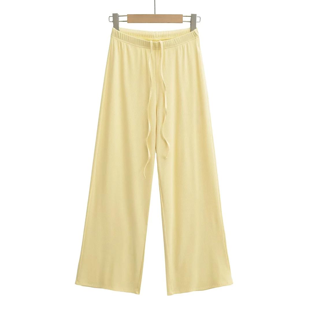 Compra Pantalones Vintage Holgados Suaves con Caída para Mujer Cintura Elástica Cordón Casual Cómodos Pierna Recta Largo hasta el Piso al por mayor en Joom.pro