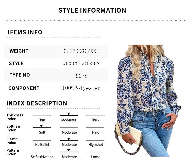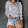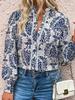 Ropa de Mujer de Comercio Exterior Transfronterizo Europeo y Americano Amazon Otoño Camisa Estampada Vacaciones Casual Camisa de Manga Larga Top