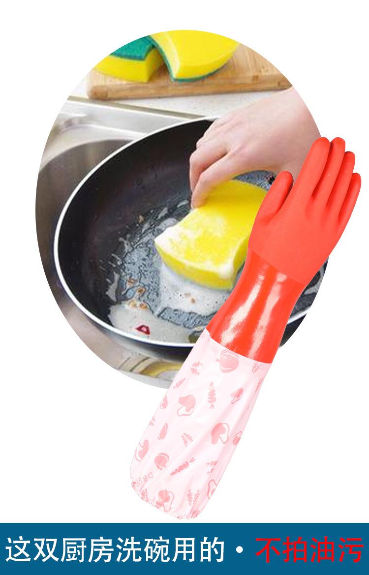 Guantes de goma de terciopelo de una pieza para invierno para lavar platos para mujer, cocina, tareas domésticas, impermeables, forrados de lana cálida, para lavandería, gruesos, resistentes al desgaste