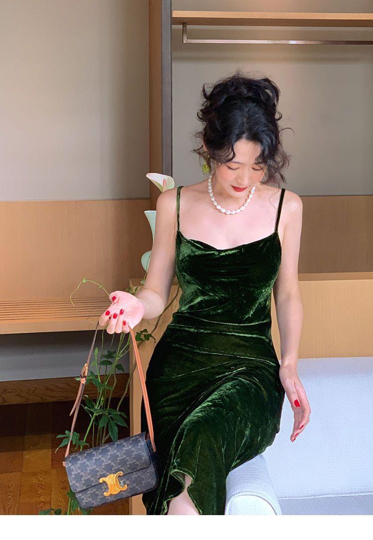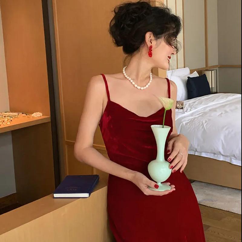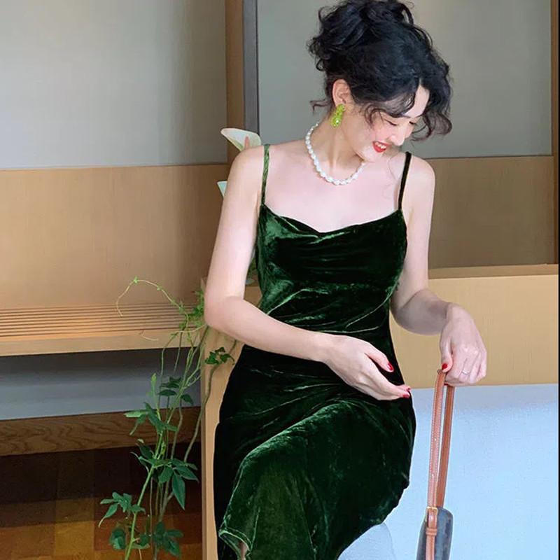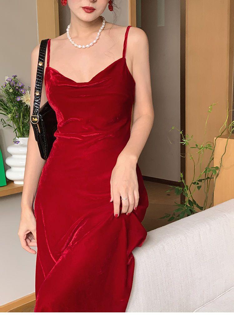 Compra Vestido Suspender de Cintura Francesa para Mujer Otoño Nuevo Retro Falda Midi Terciopelo Versátil Falda para Fondo al por mayor en Joom.pro