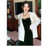 Vestido Suspender de Cintura Francesa para Mujer Otoño Nuevo Retro Falda Midi Terciopelo Versátil Falda para Fondo