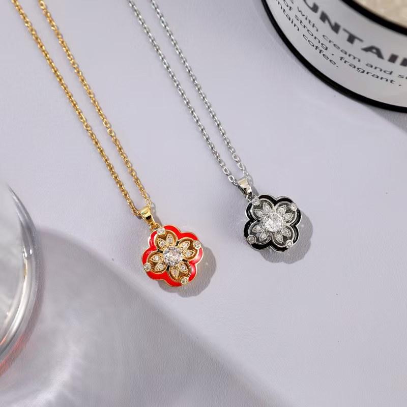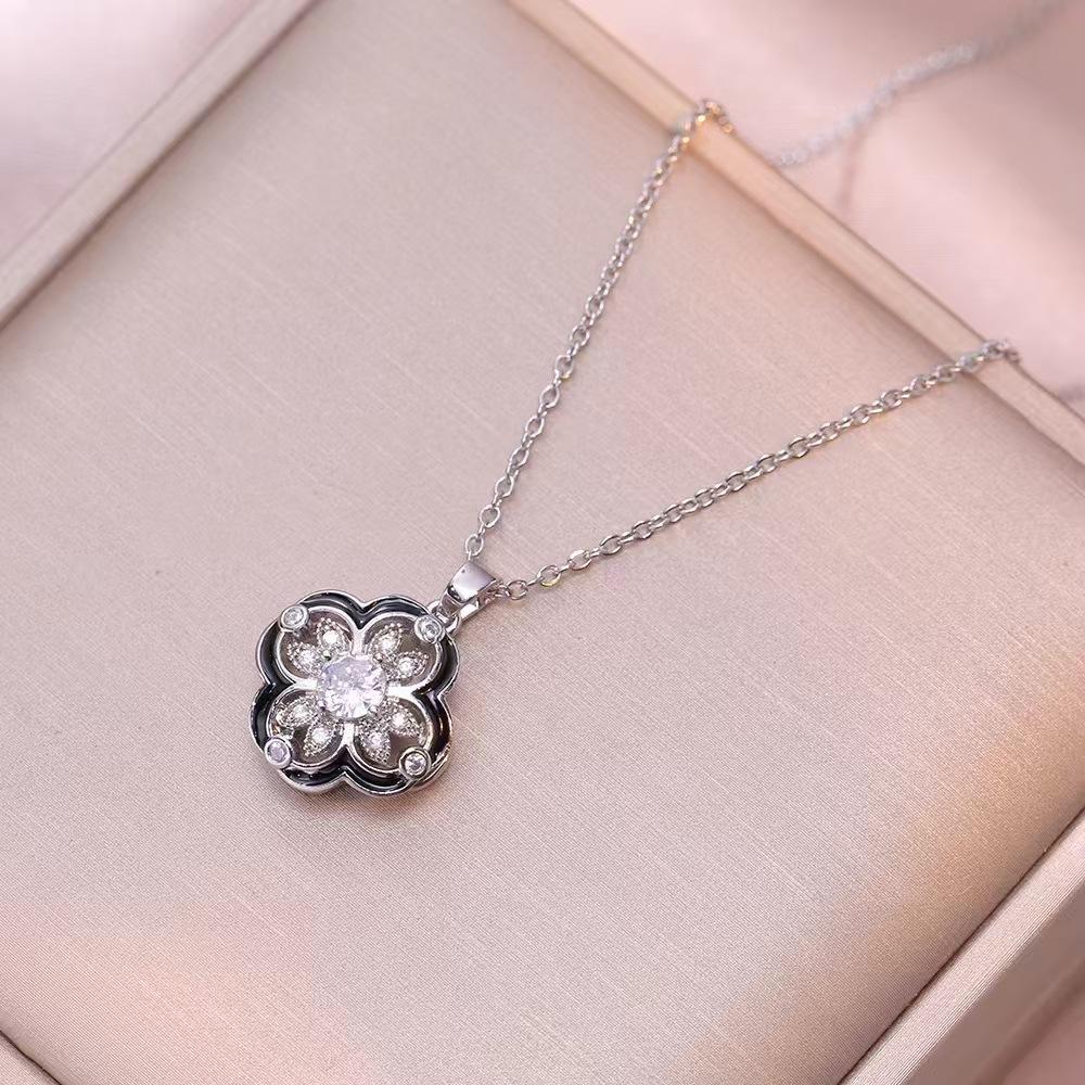 Compra Collar para mujer con diseño de flor de circonita de cuatro hojas giratoria de viento transfronterizo, nuevo diseño, colgante con sentido elegante, collar de acero de titanio. al por mayor en Joom.pro
