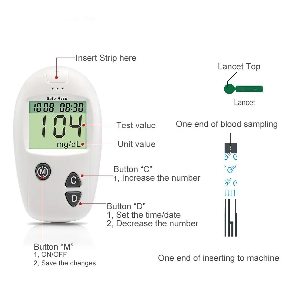 Comercio Exterior Safe-accu Hogar Sin codificación Totalmente Automático Medidor de Glucosa en Sangre Tiras Reactivas para Medidor de Glucosa en Sangre Exportación