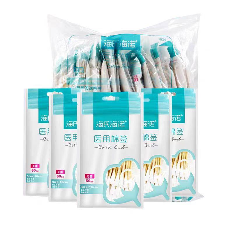 Hisopos de Algodón Estériles Desechables Haishi Hainuo, Hisopos de Algodón Libres de Polvo, En Bolsa 50 Piezas, Hisopos de Algodón Absorbente Autosellantes