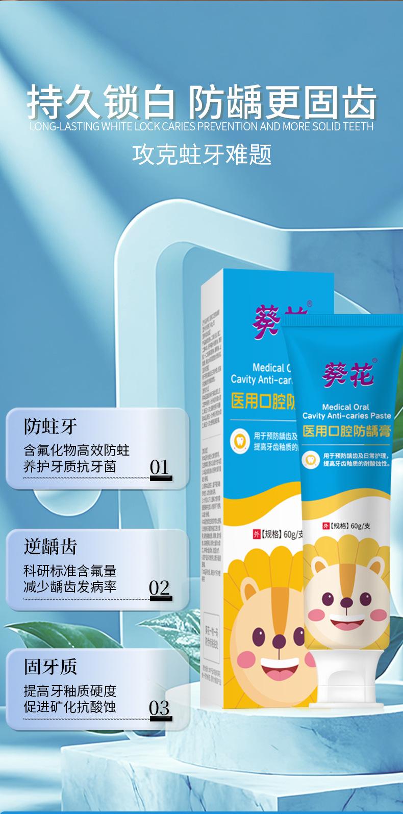 Crema Anticaries Oral Sunflower Medical para Caries Dentales Desodorizante Caries Dental Mejorando la Resistencia a la Erosión Ácida del Esmalte Dental Pasta de Dientes Médica