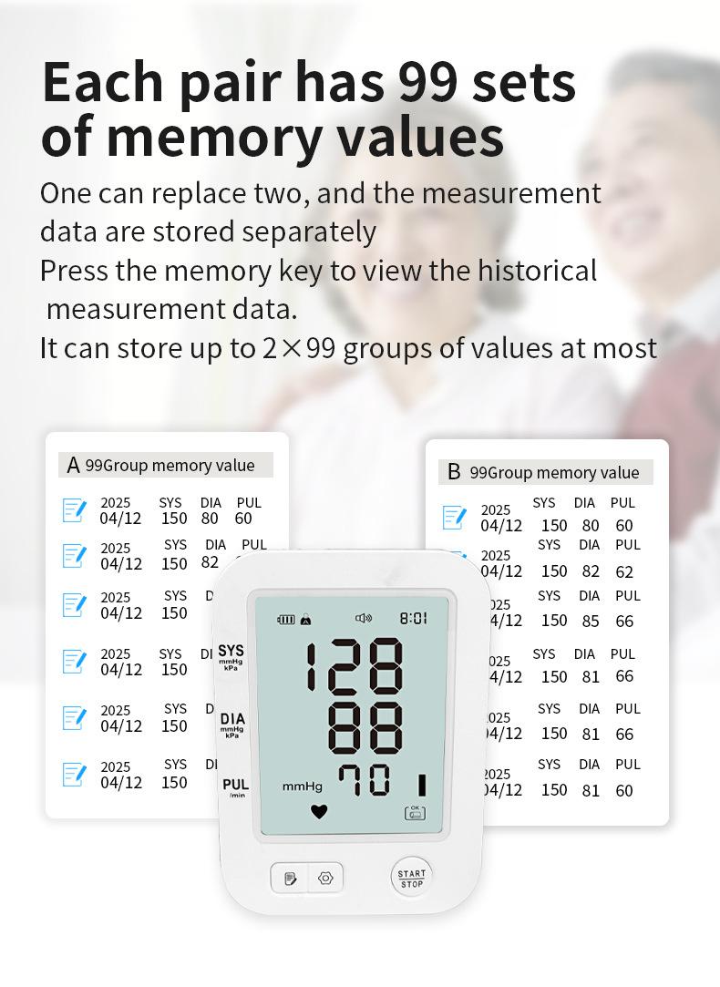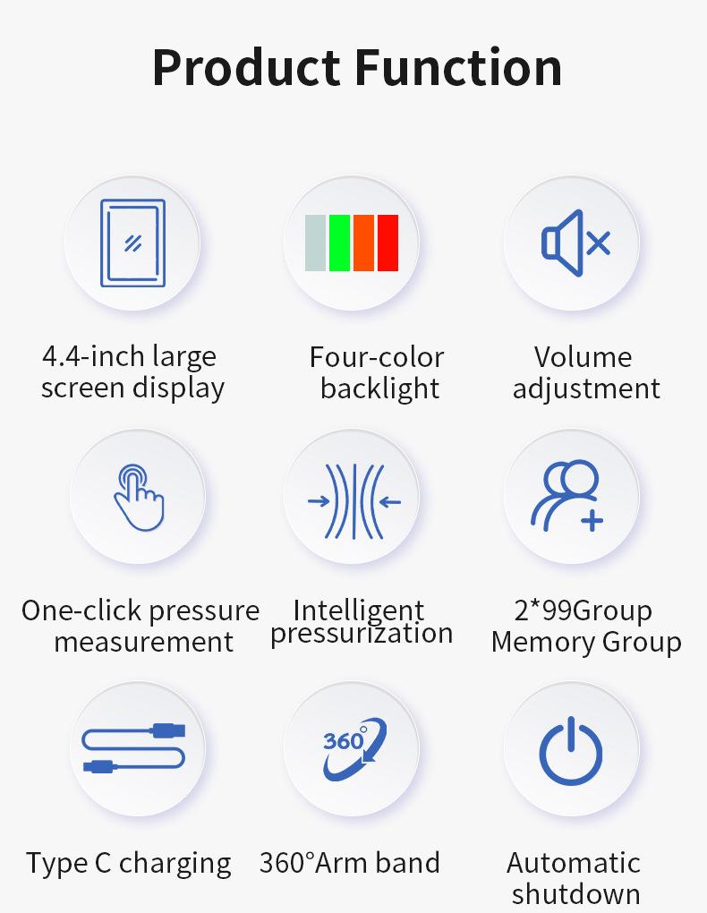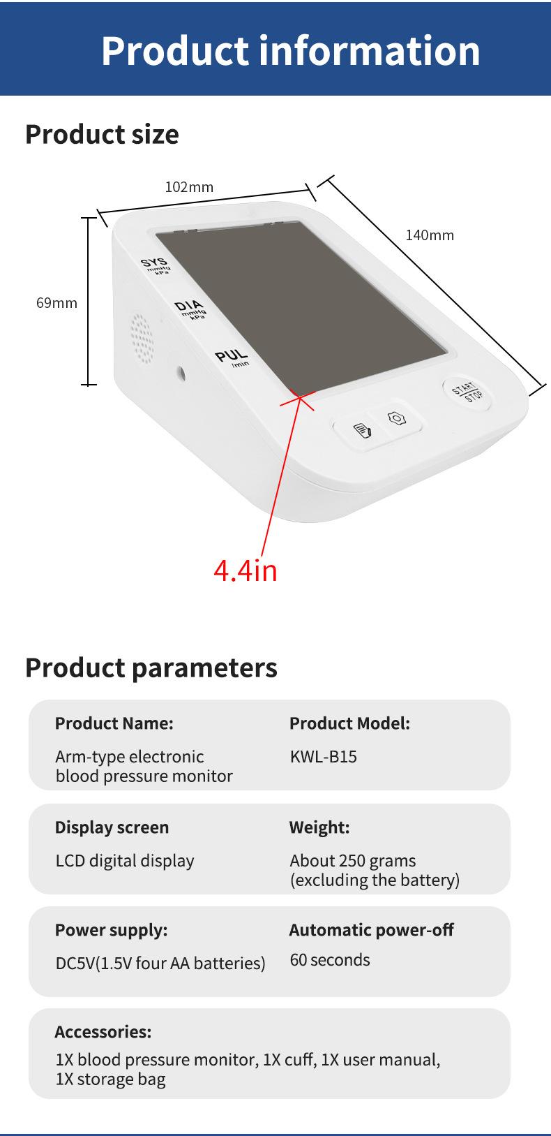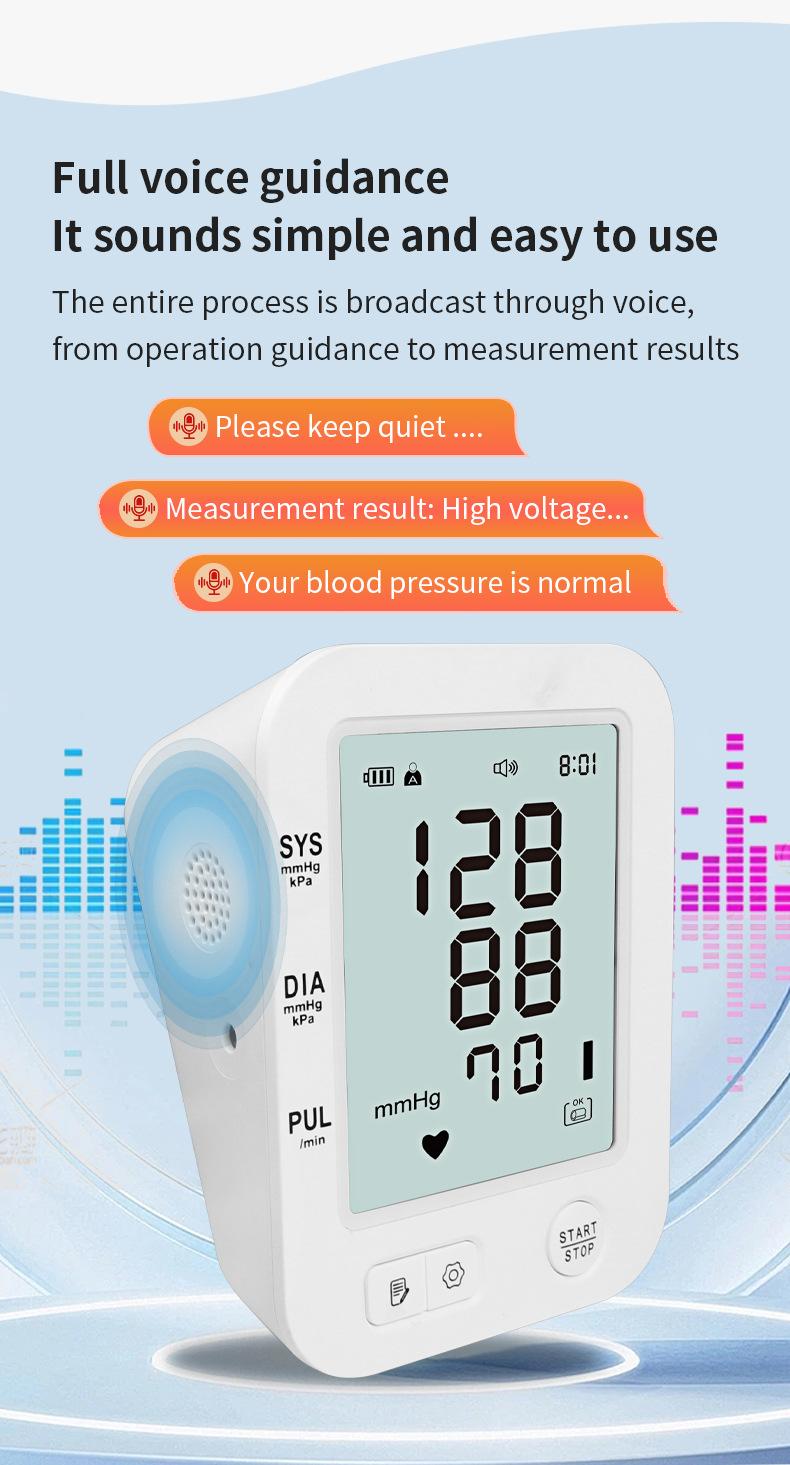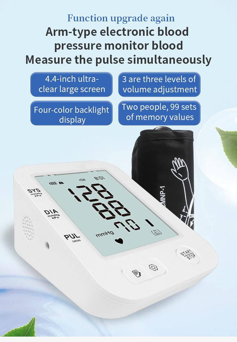 Esfigmomanómetro electrónico inteligente de brazo superior pantalla grande retroiluminación de cuatro colores transfronterizo medidor de presión arterial fábrica mayoreo grande favorablemente