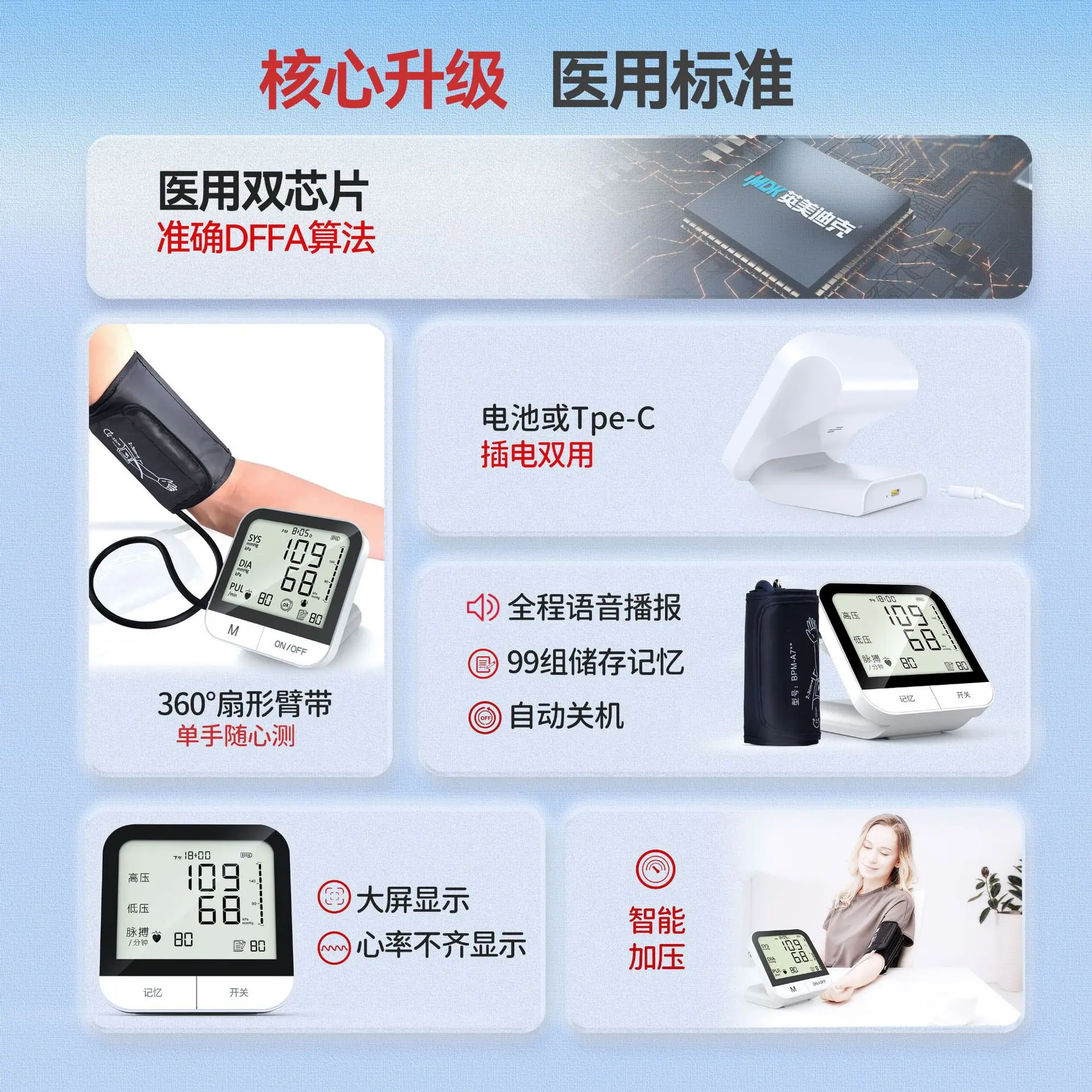 Esfigmomanómetro Electrónico Personalizado Instrumento de Medición de Presión Arterial Totalmente Automático para el Hogar Presión Arterial Alta Tipo Brazo Instrumento de Medición de Presión Arterial