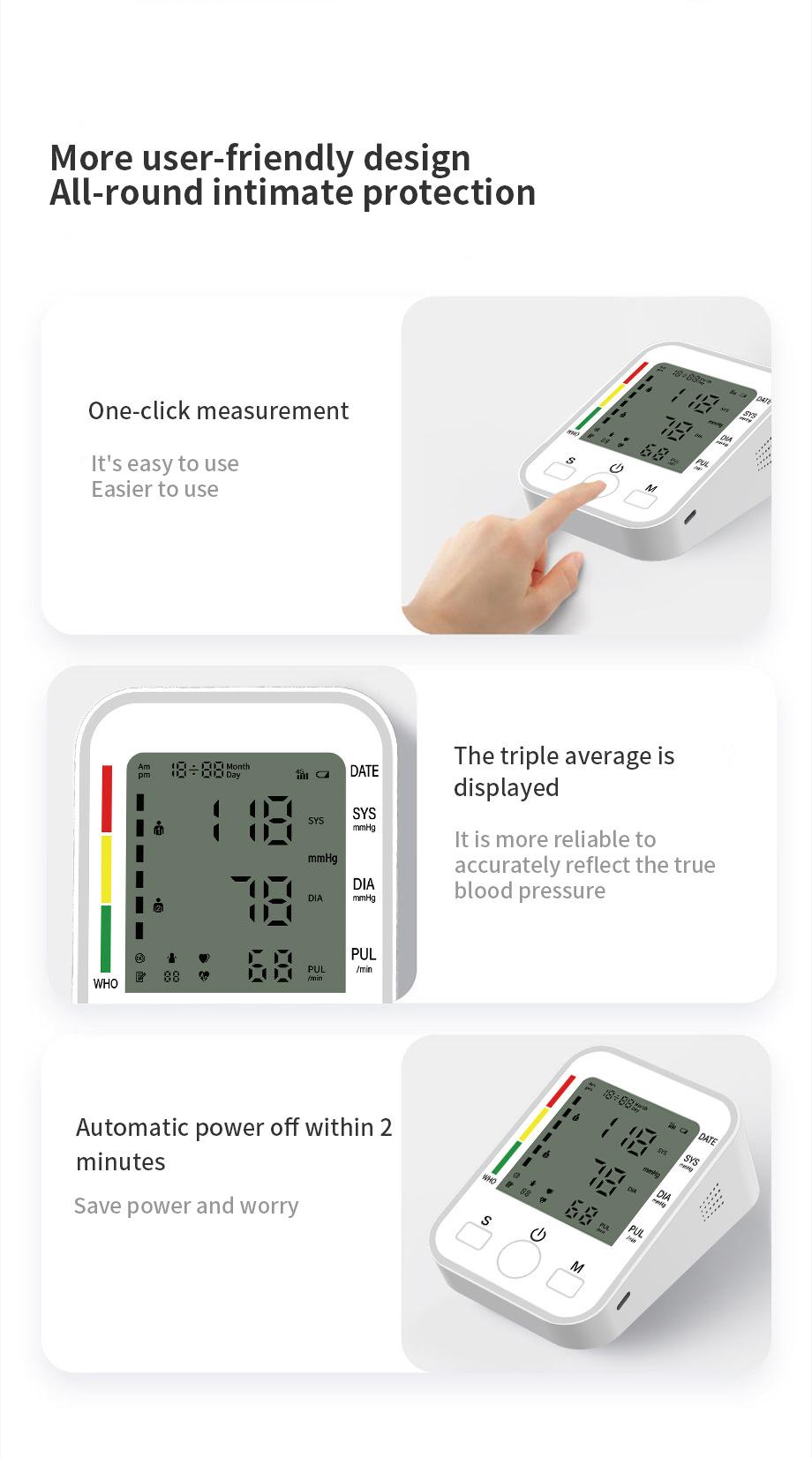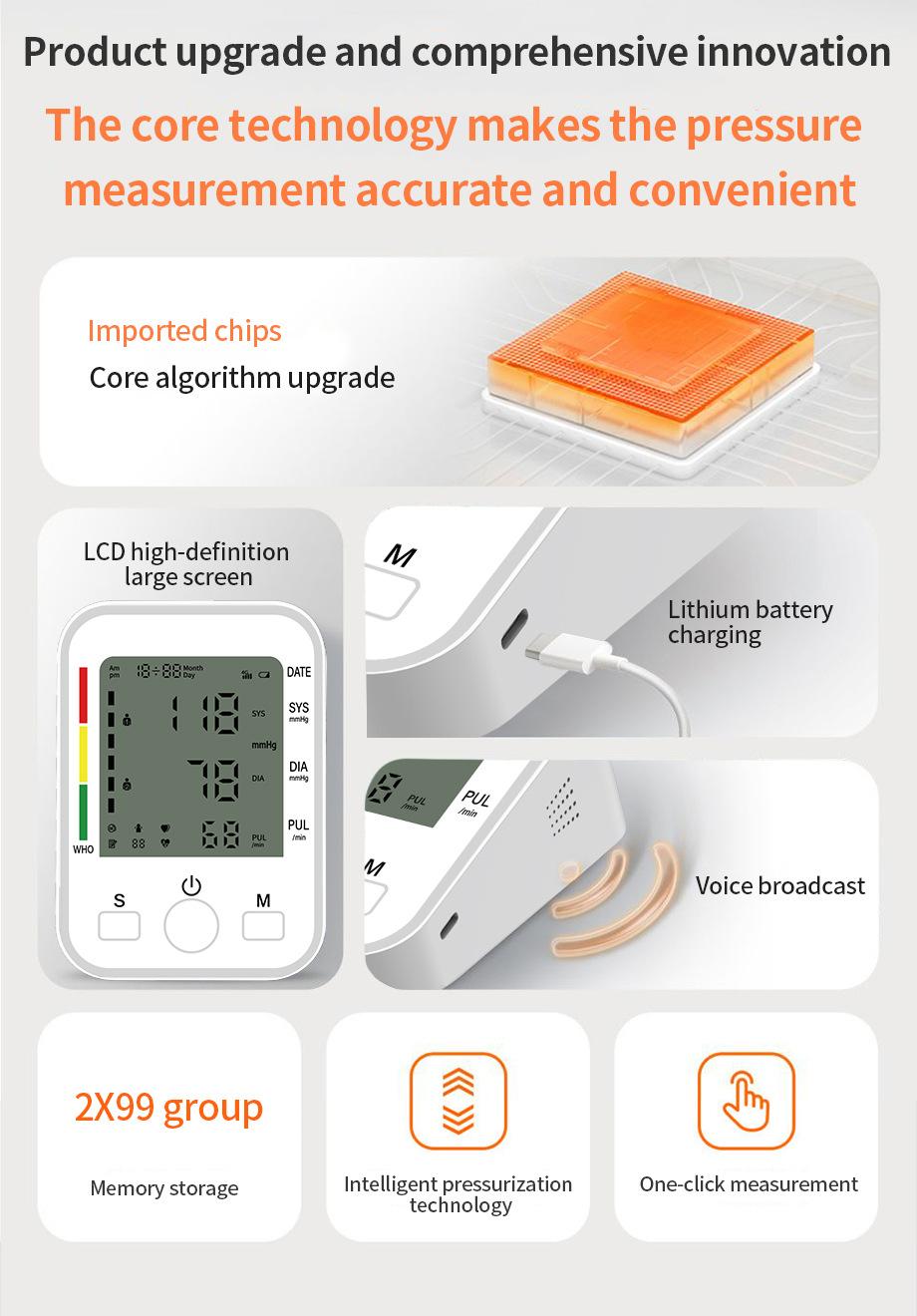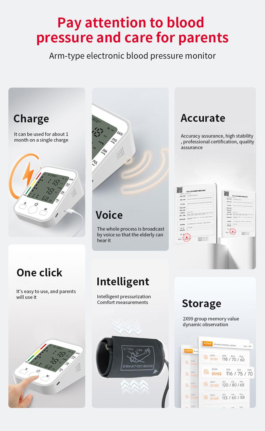 Esfigmomanómetro Médico Transfronterizo de Alta Precisión Totalmente Automático de Brazo Superior Eléctrico Inteligente Instrumento para Medir la Presión Arterial Esfigmomanómetro de Exportación