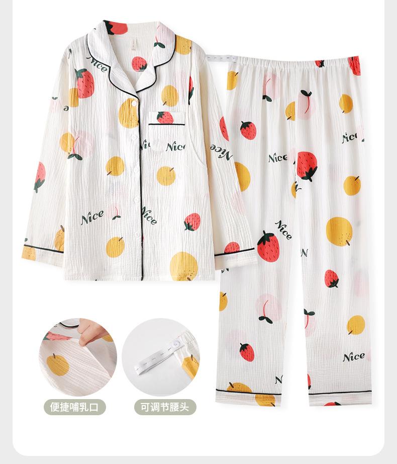 Pijama de Maternidad Verano Delgado Gasa de Algodón Puro Ropa de Dormir de Lactancia Postparto Primavera y Otoño Confinamiento Lactancia Absorbente de Sudor Ropa de Descanso para Mujeres Embarazadas