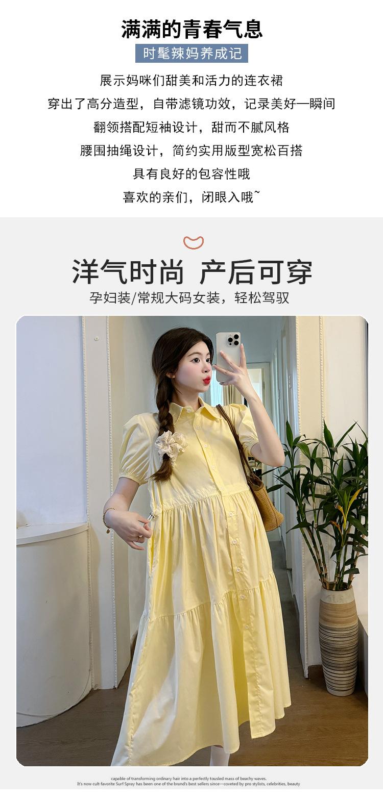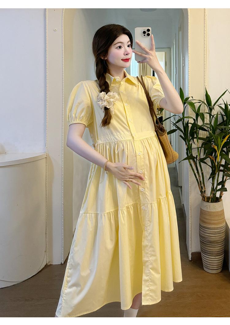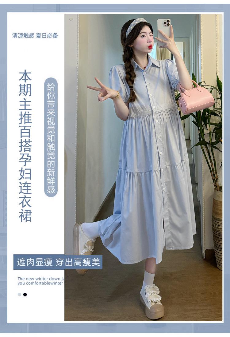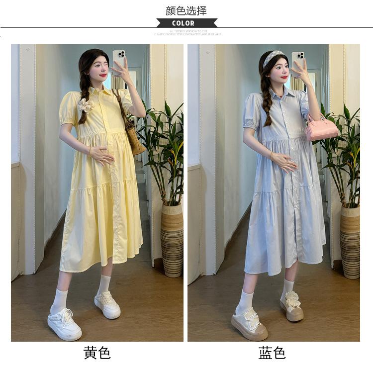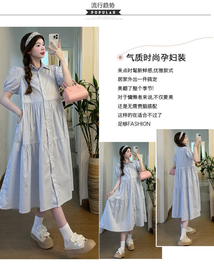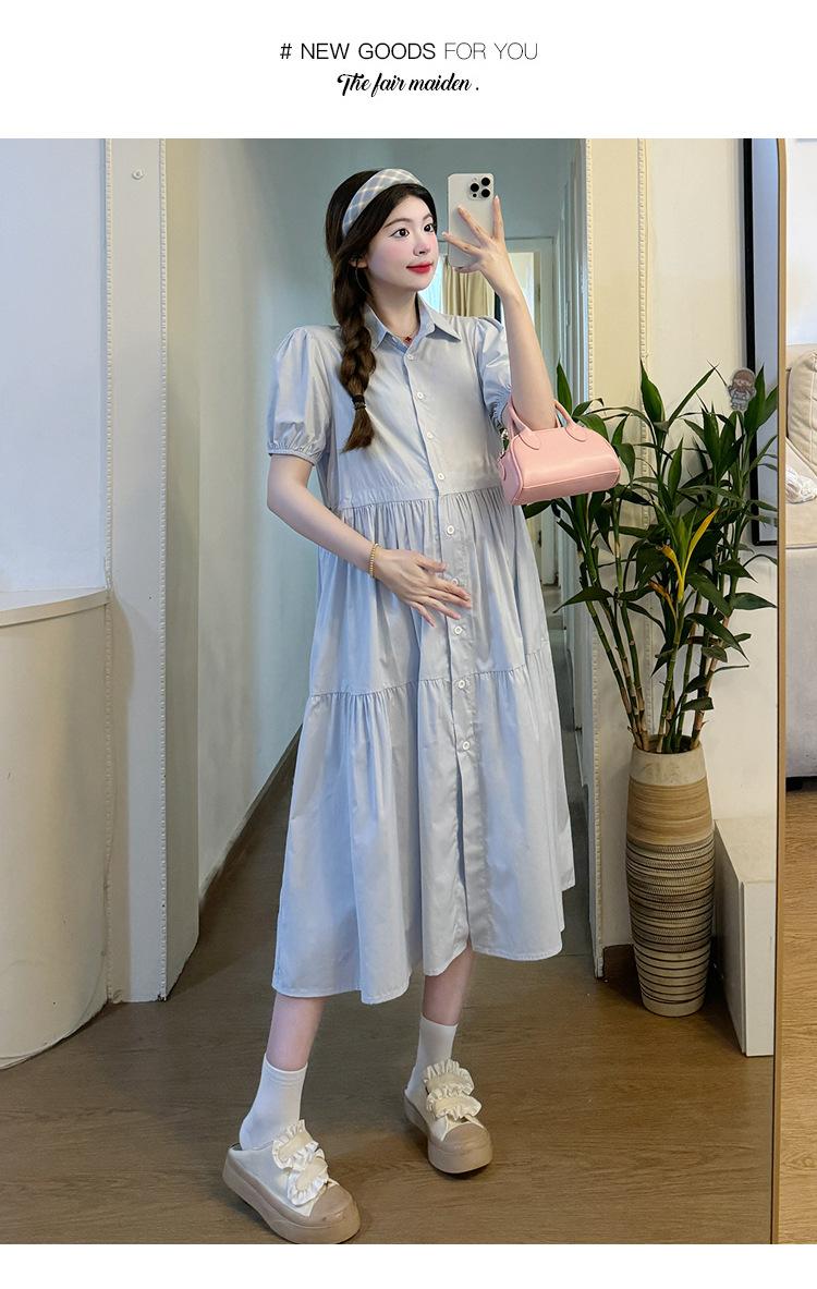 Maternidad 2024 Verano Nueva Moda Camisa Dulce Suelta Grande Hebilla Abierta Vestido de Lactancia Vestido de Mujer Embarazada