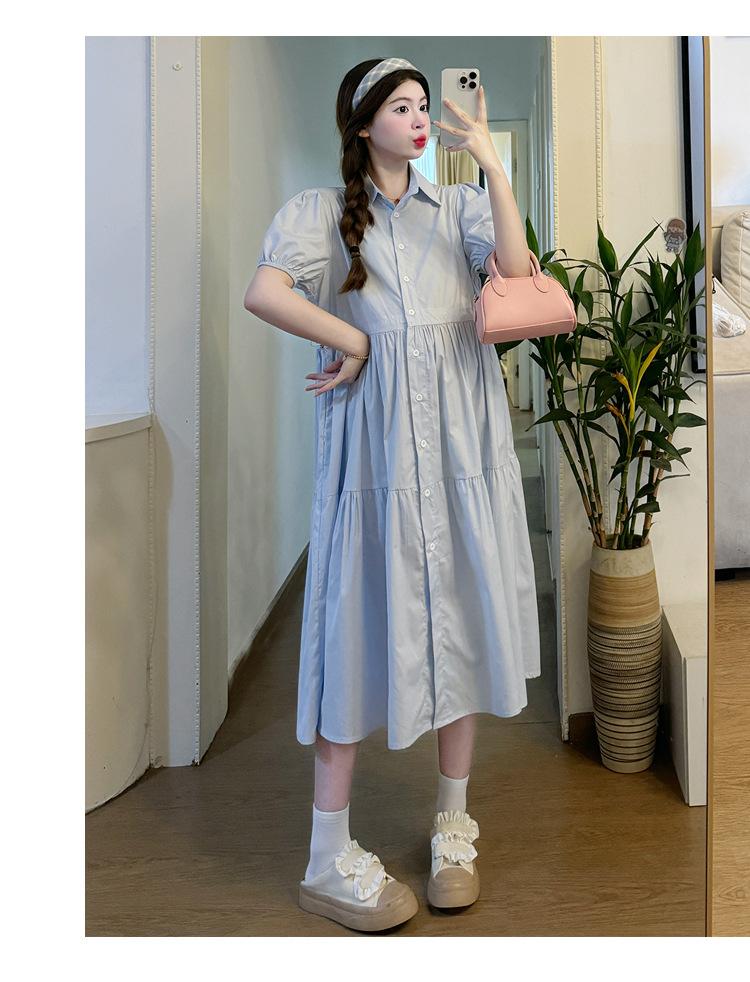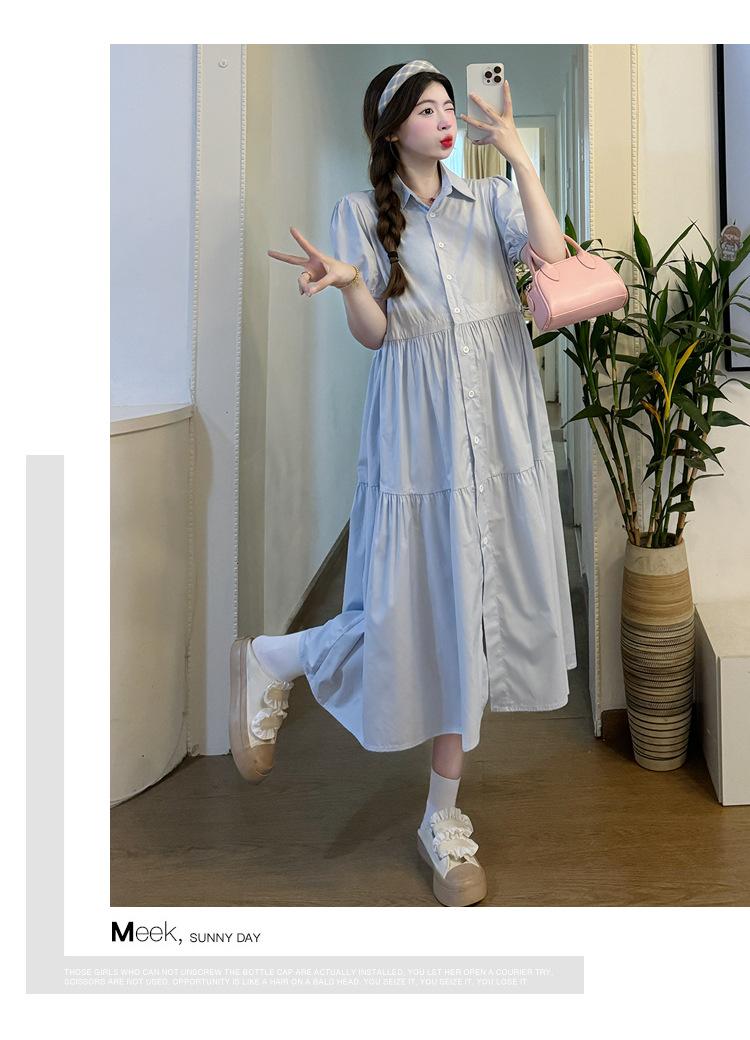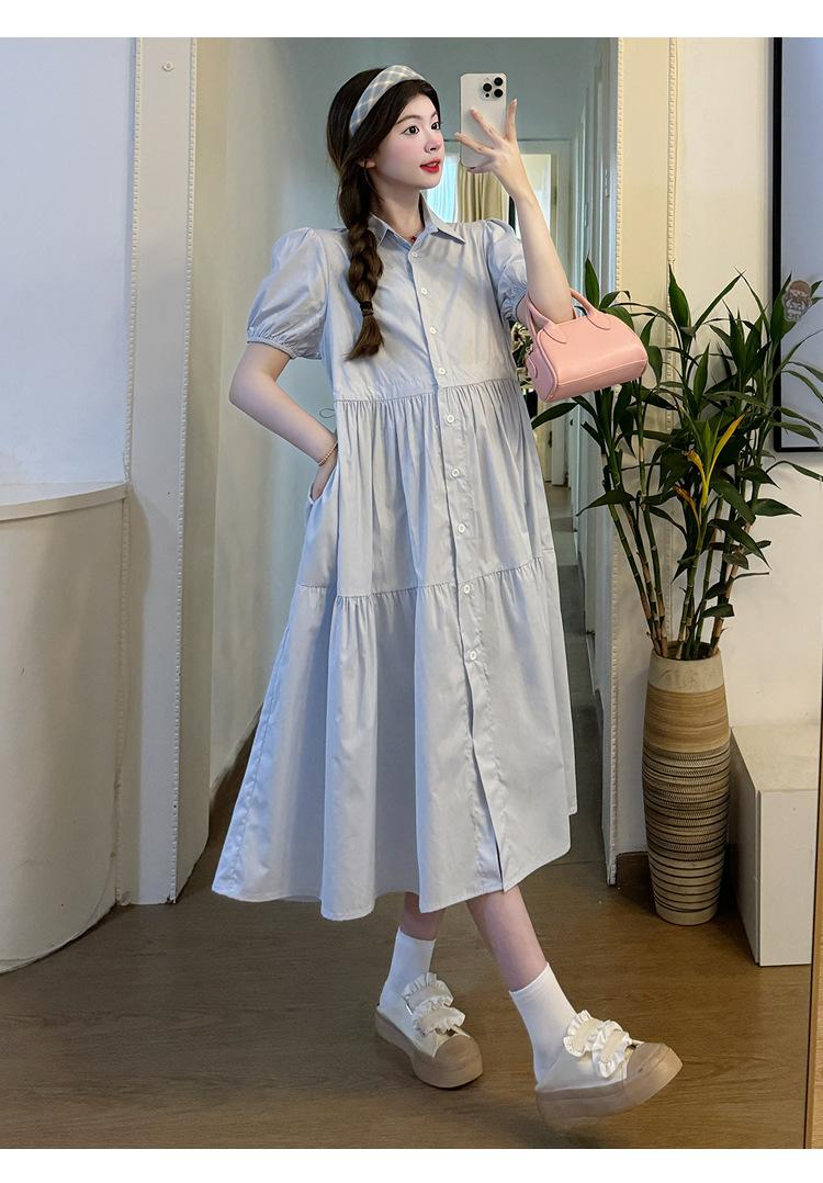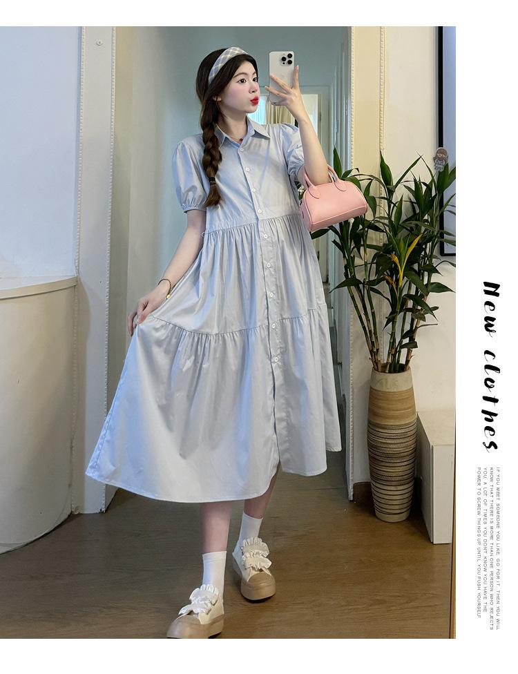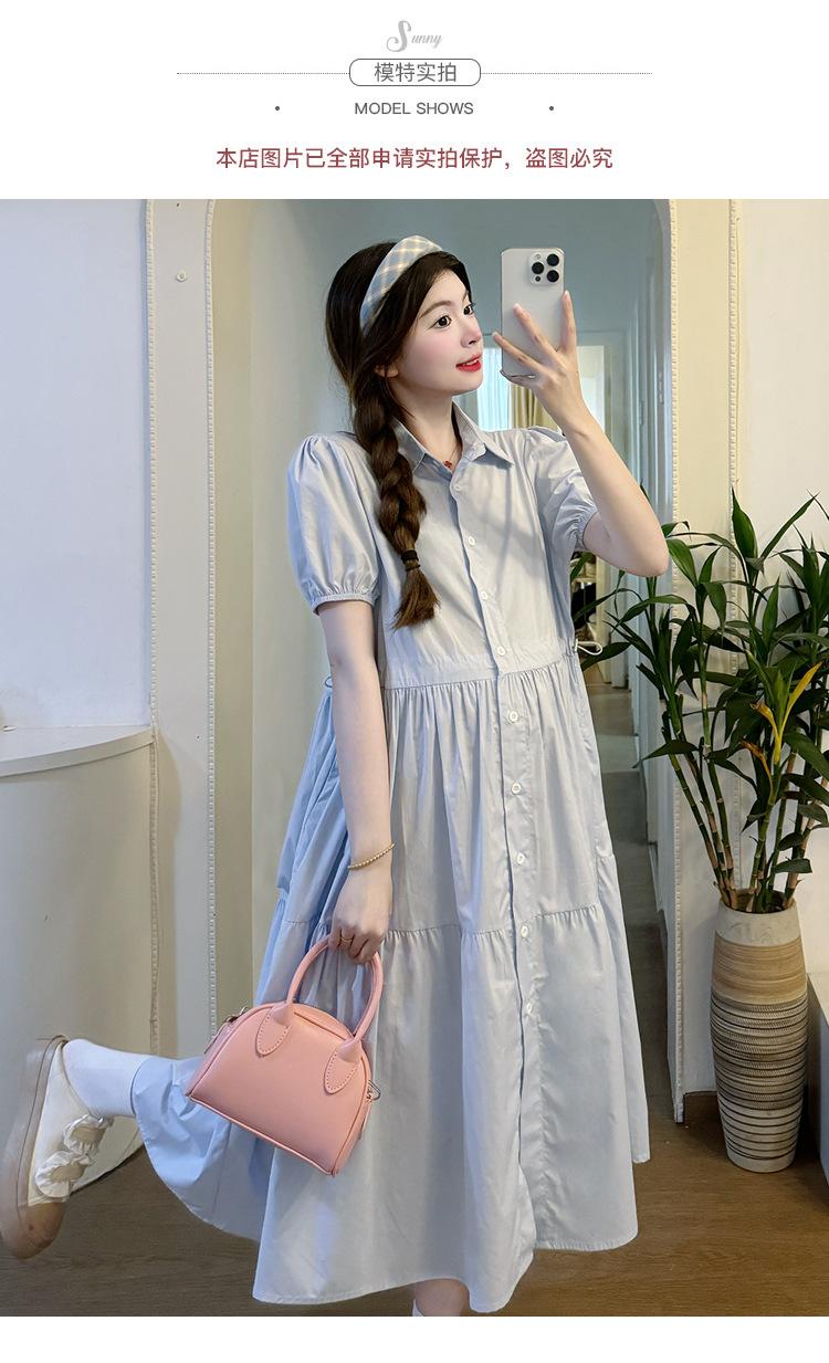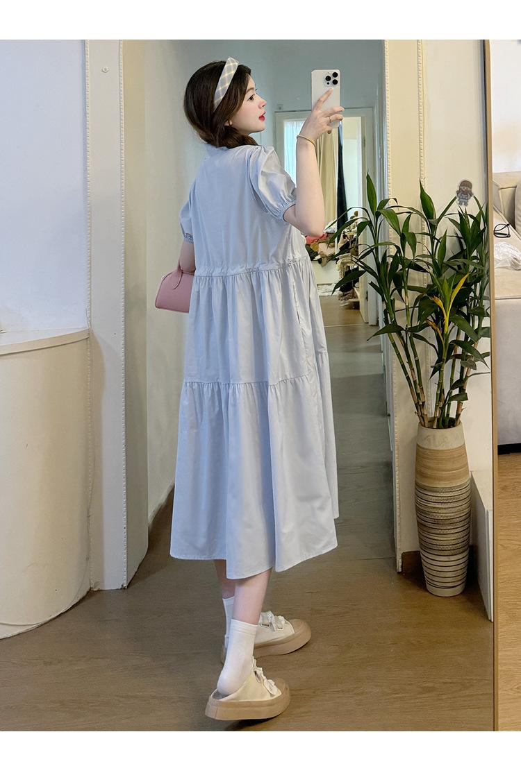 Maternidad 2024 Verano Nueva Moda Camisa Dulce Suelta Grande Hebilla Abierta Vestido de Lactancia Vestido de Mujer Embarazada