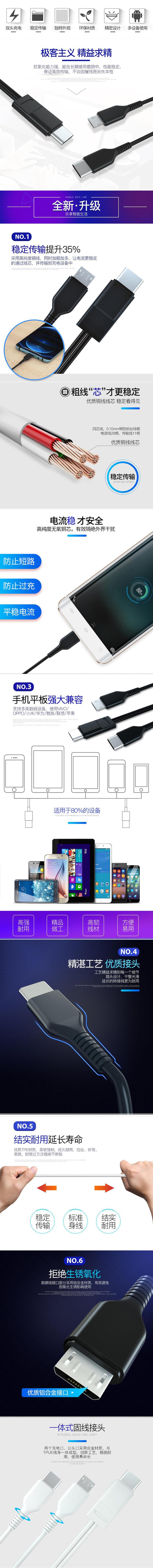C mouth divided into two white 0.2m Android+type-c