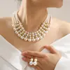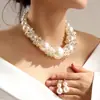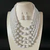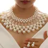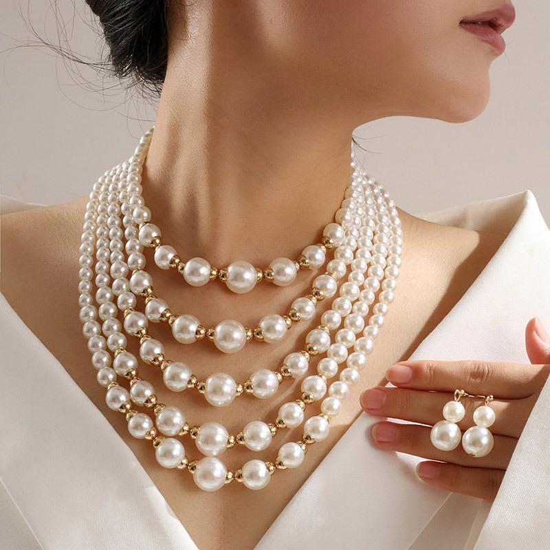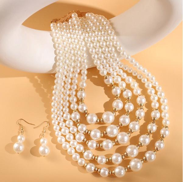 Moda Transfronteriza Europea y Americana Temperamento Perla Multicapa Collar Aretes Traje de Joyería para Damas