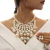 Pearl necklace set, Silver pearl, Multi-row pearl embellishment, Three rows of pearls, Fan shaped pearl, Tasse...