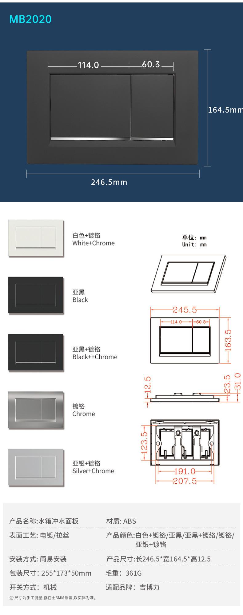 Adecuado para Geboli SIGMA30 Panel de Tanque de Agua Oculto Montado en Pared Accesorios para Inodoro de Descarga Interruptor de Botón de Inodoro