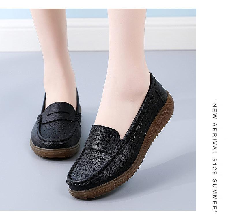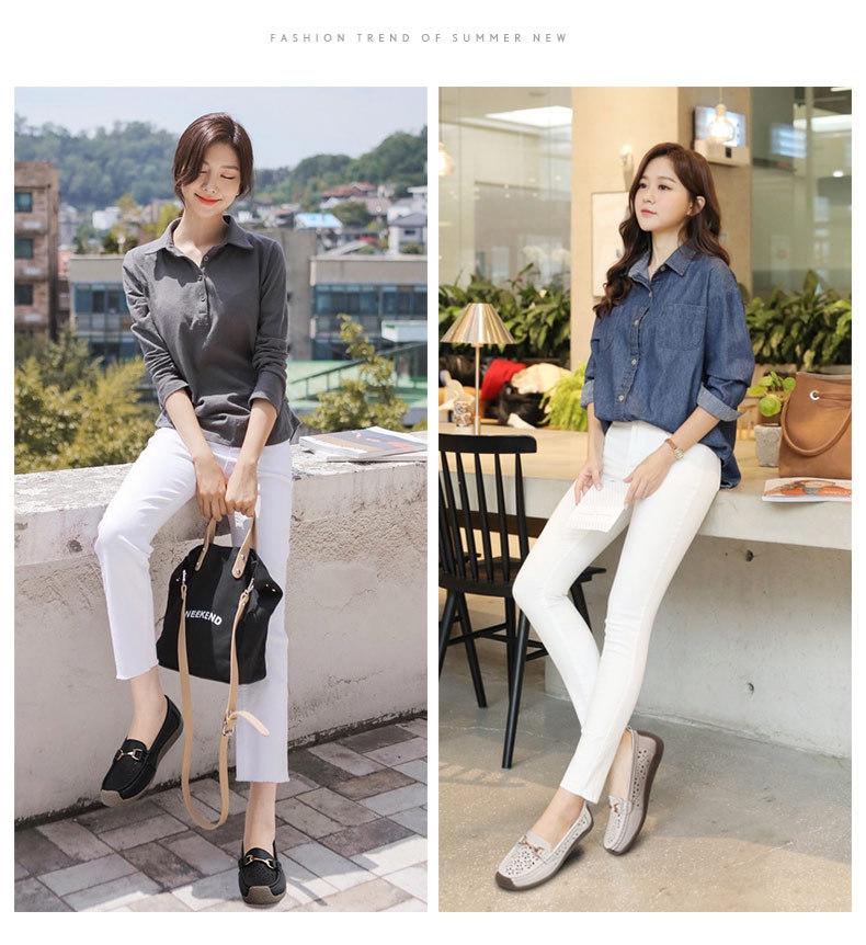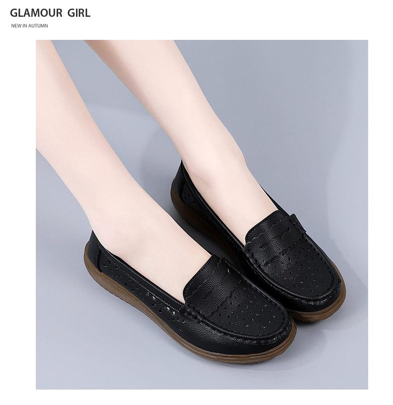Mocasines de Cuero Genuino para Mujer, Zapatos Individuales de Moda, Zapatos Slip-On de Suela Blanda Estilo Coreano para Mujer, Nuevos Zapatos Transpirables para Mujer Otoño 2025