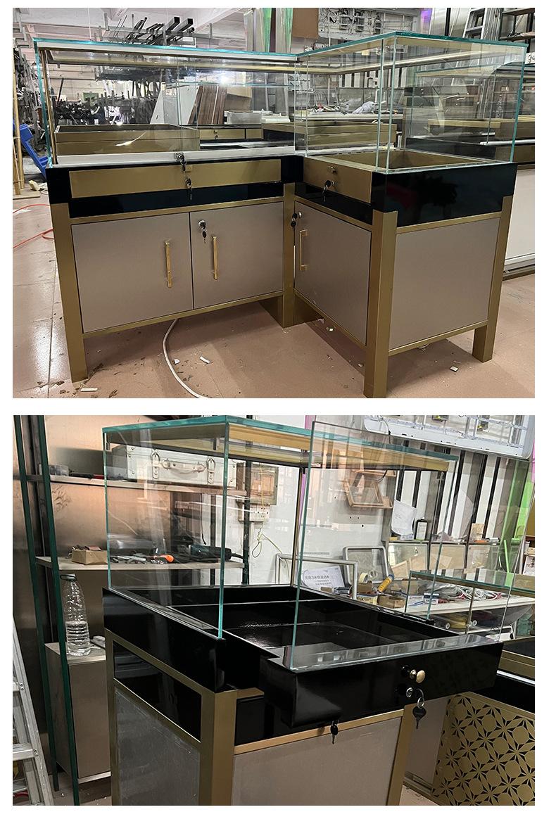 Gabinete de Joyería Cerrable Personalizado Vitrina de Cristal Estante para Productos Estante de Exhibición de Acero Inoxidable Vitrina LED Vertical de Piso