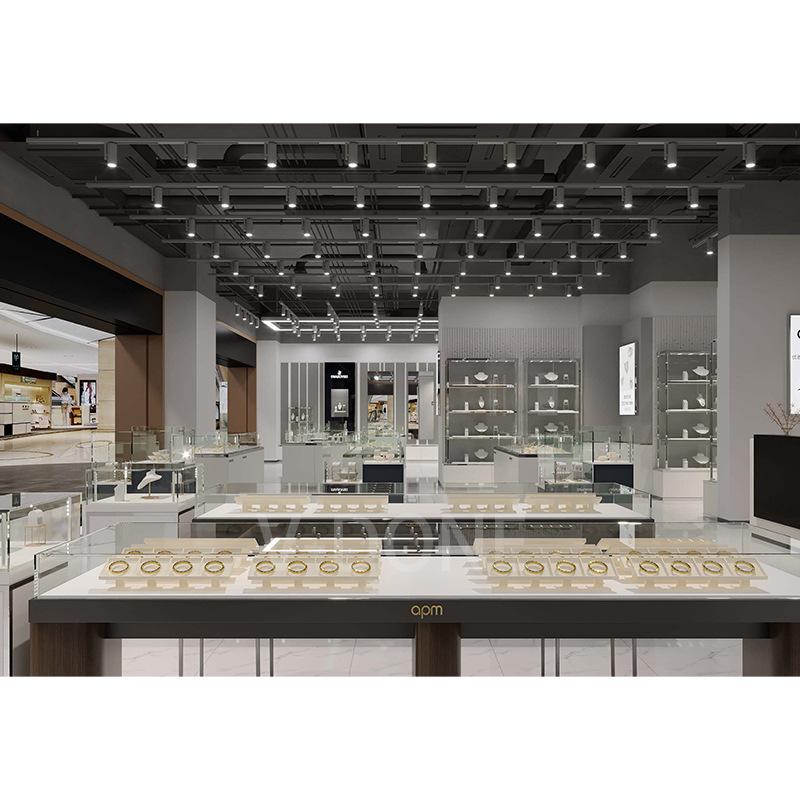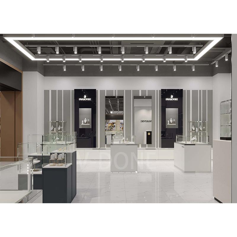 Joyería Tienda Vitrina de Vidrio Templado Ultra Blanco Diseño Estante de Exhibición de Joyería Personalizado Mostrador de Boutique