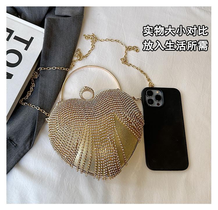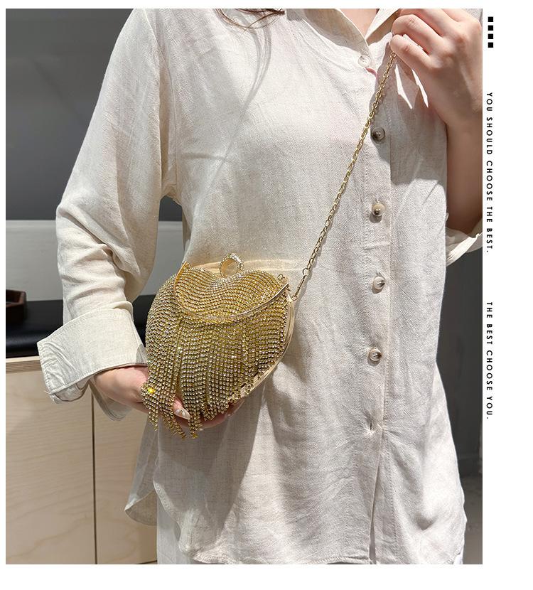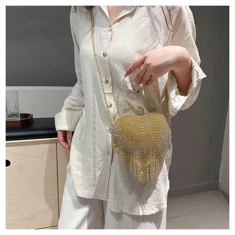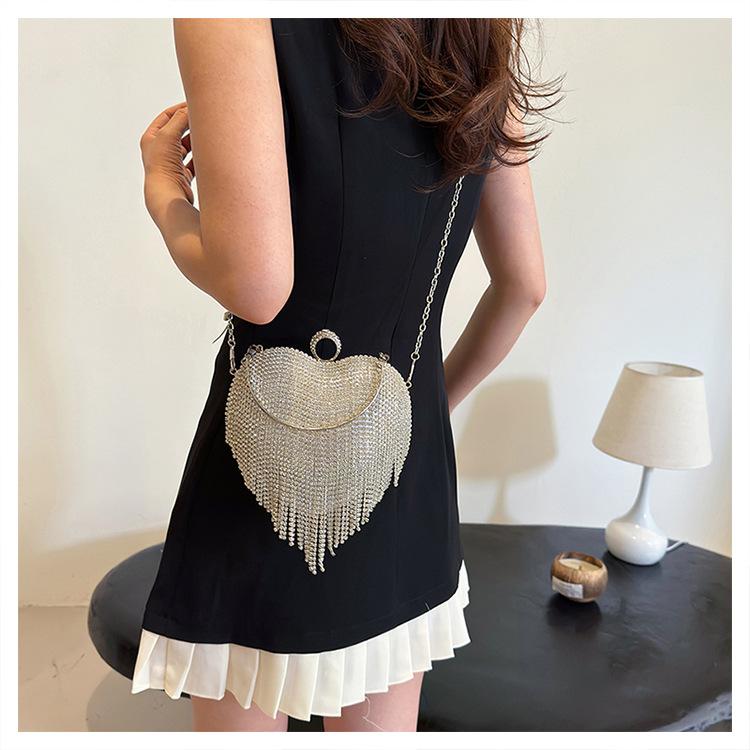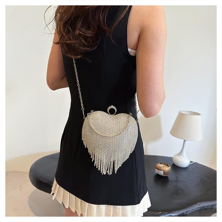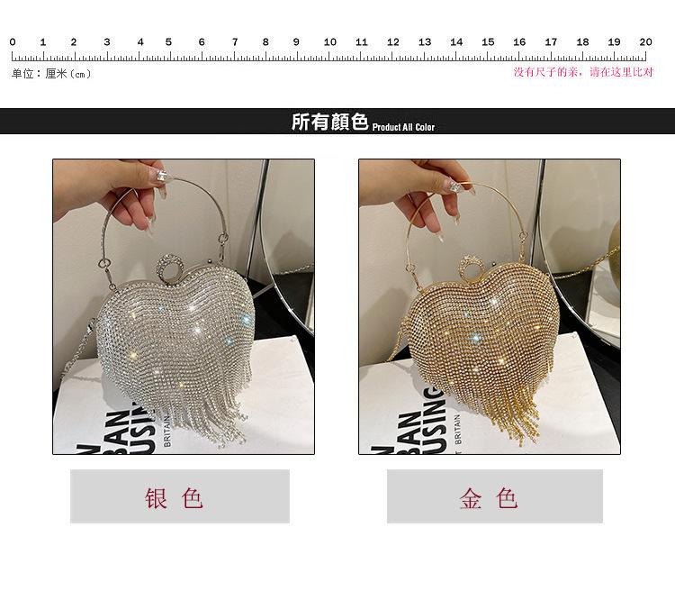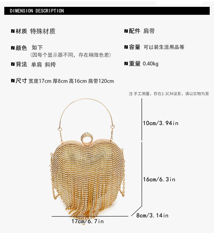 Bolso de Noche Transfronterizo con Incrustaciones de Diamantes Borla en Forma de Corazón Bolso de Mano para Mujer Bolso de Mano Clutch para Fiesta de Banquete Bolso de Noche que Combina con Todo