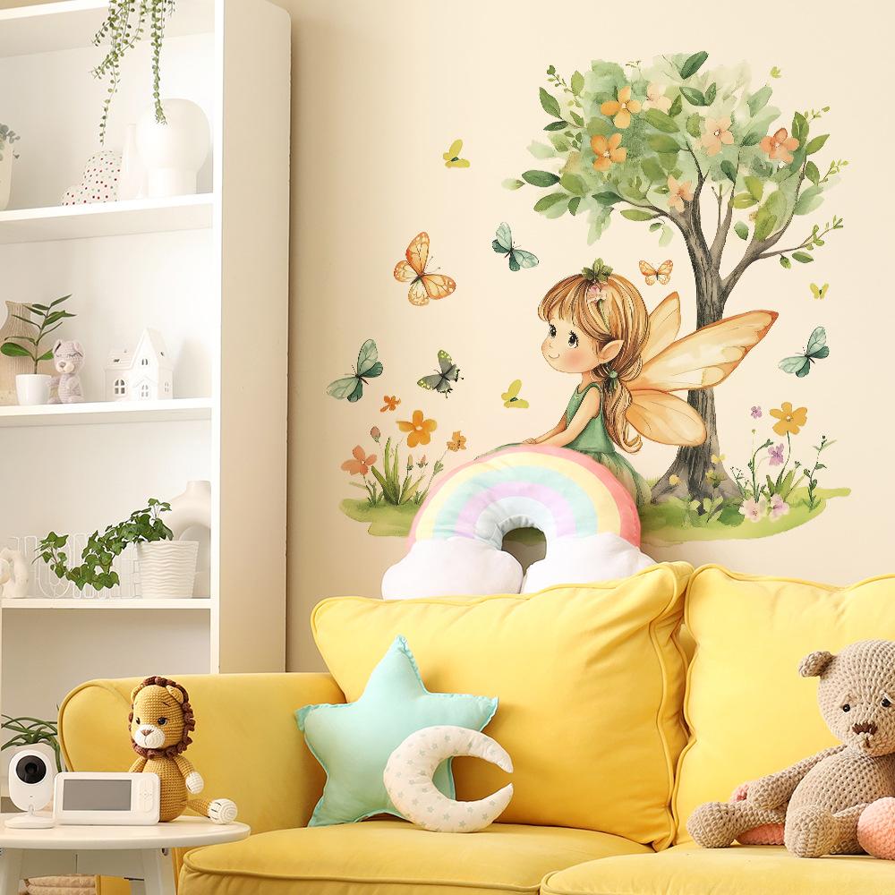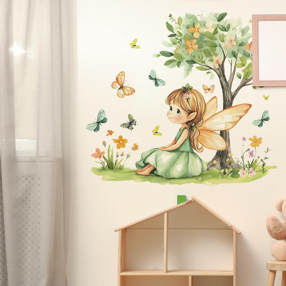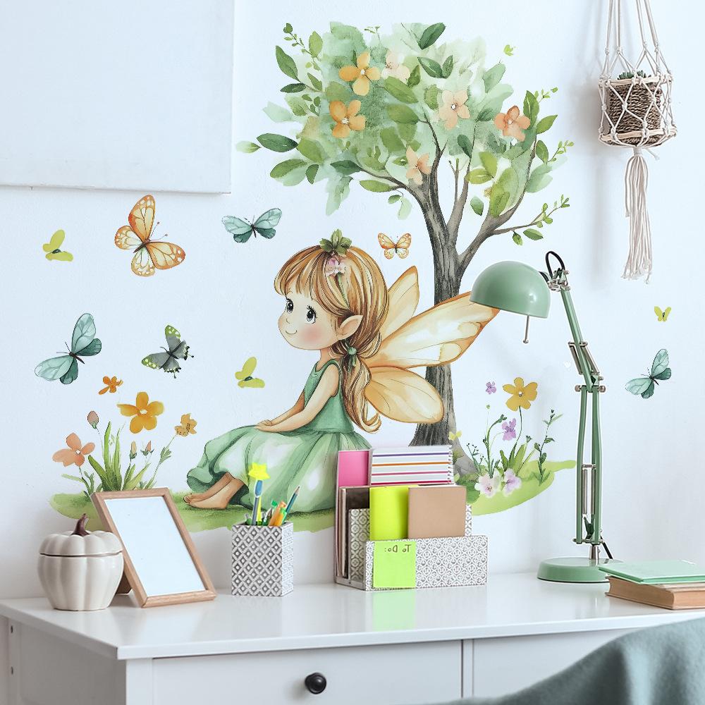 Fun-C84 Hada de Flores de Dibujos Animados Dormitorio Infantil Jardín de Niños Fondo para el Hogar Embellecimiento Adhesivo de Pared Decorativo Venta al por Mayor