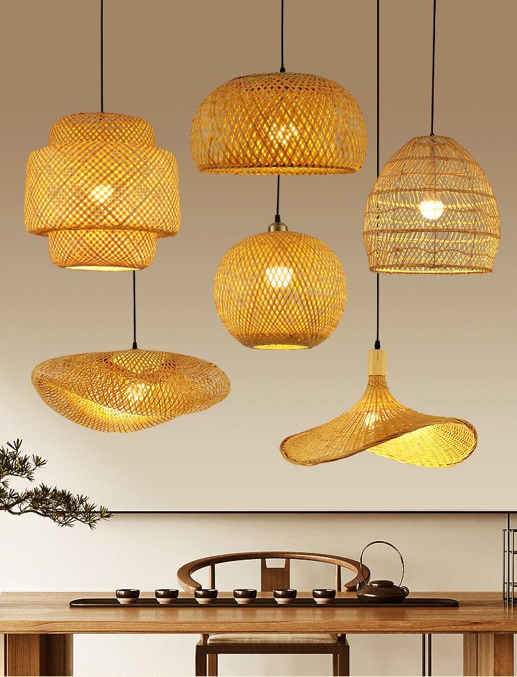Candelabro de bambú ratán bambú linterna china retro Zen lámparas creativas restaurante comedor salón de té B & B pantalla