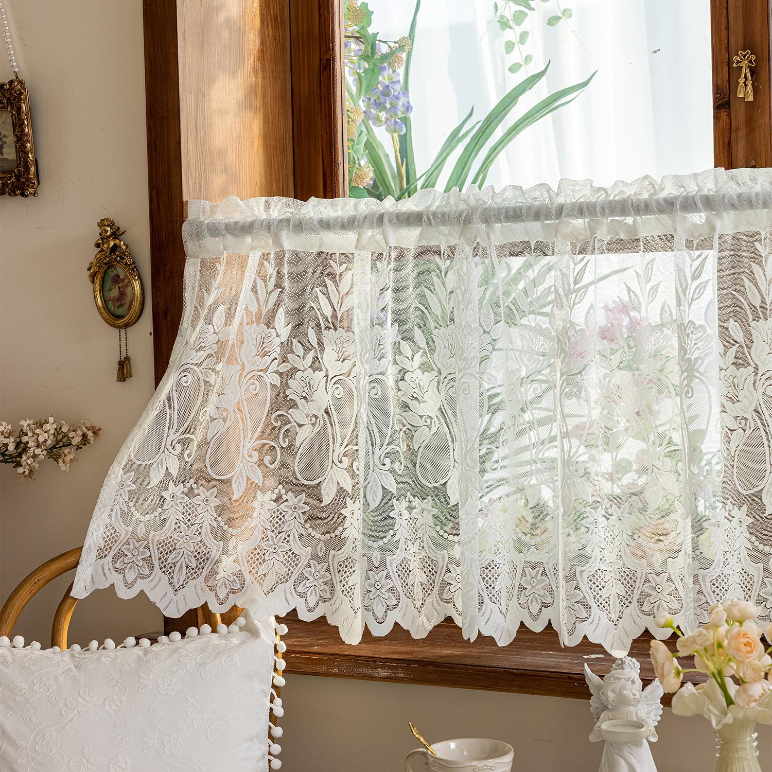 Cortina Pequeña de Encaje Jacquard Vintage de Lujo Ligero Americano Sala de Estar Decorativa Cortina Corta Restaurante Dormitorio Francés en stock Venta al por Mayor