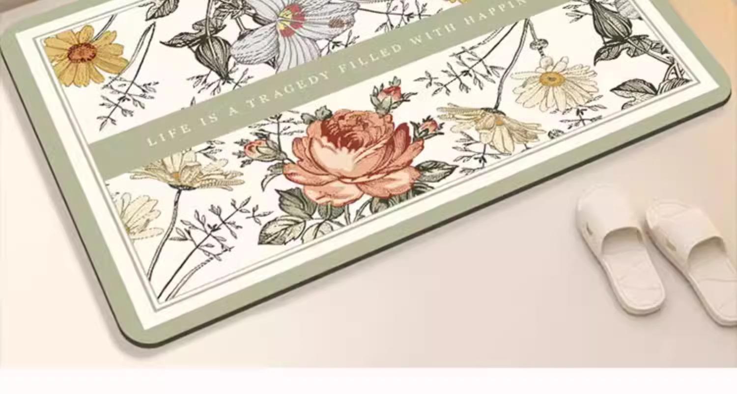 Warm spring sun [soft diatom mud absorbent floor mat], Flowers embrace roses [soft diatom mud absorbent floor ...