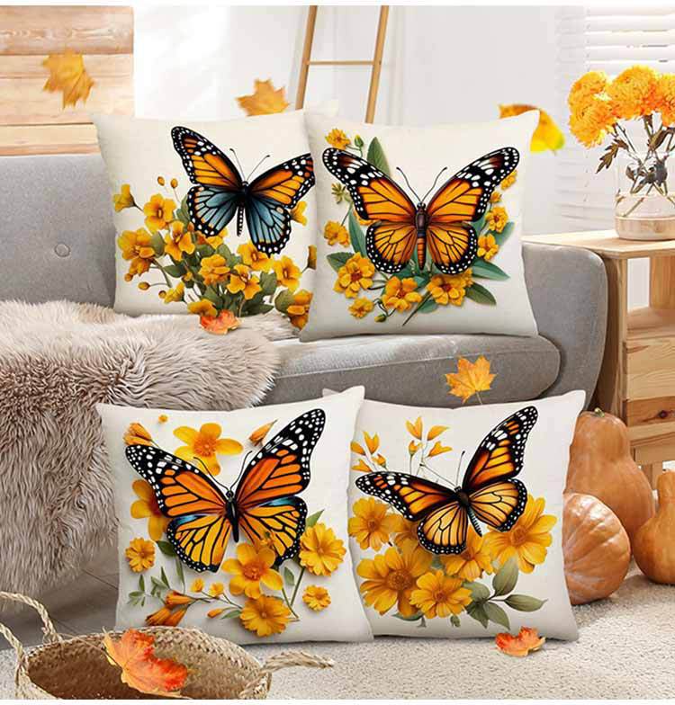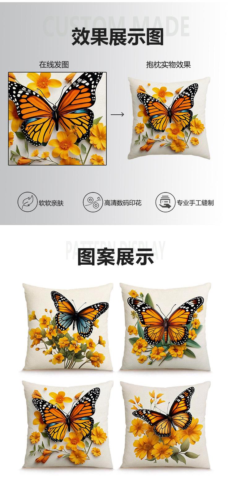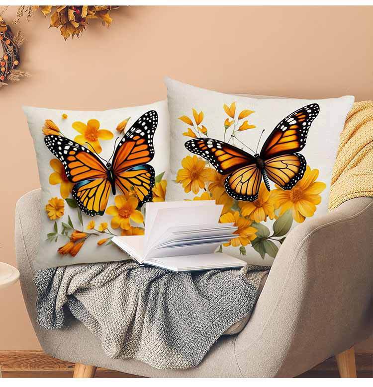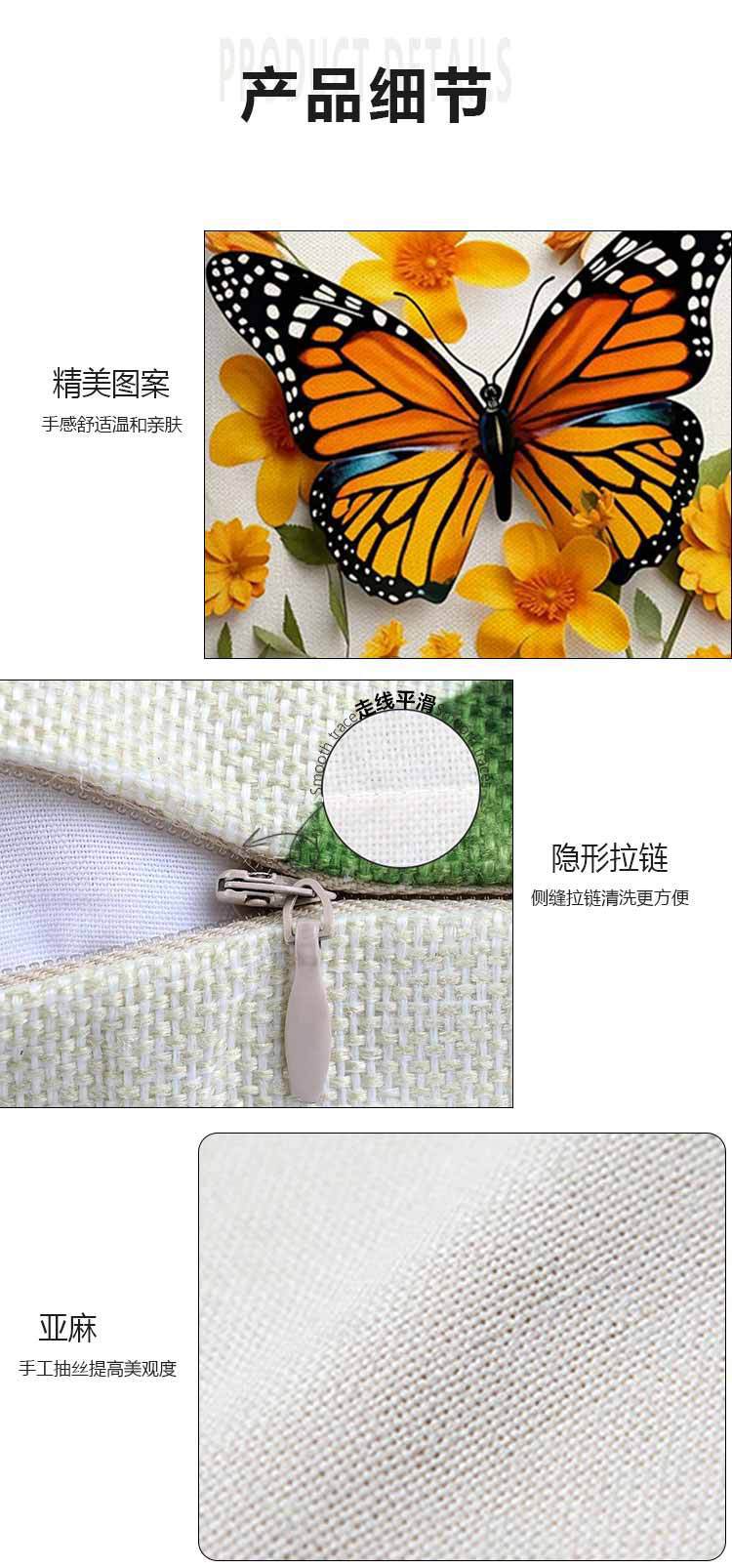 Funda de Almohada de Lino con Flores de Mariposa Nueva Hogar Sofá Dormitorio Almohada Decorativa Funda de Cojín para Mesa Silla Venta al por Mayor Transfronteriza