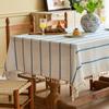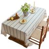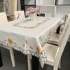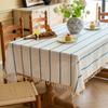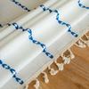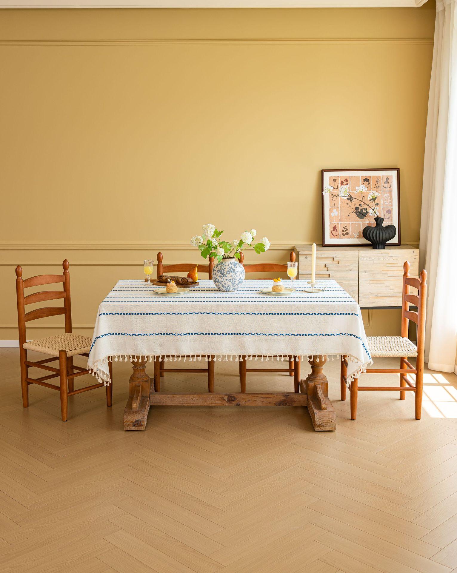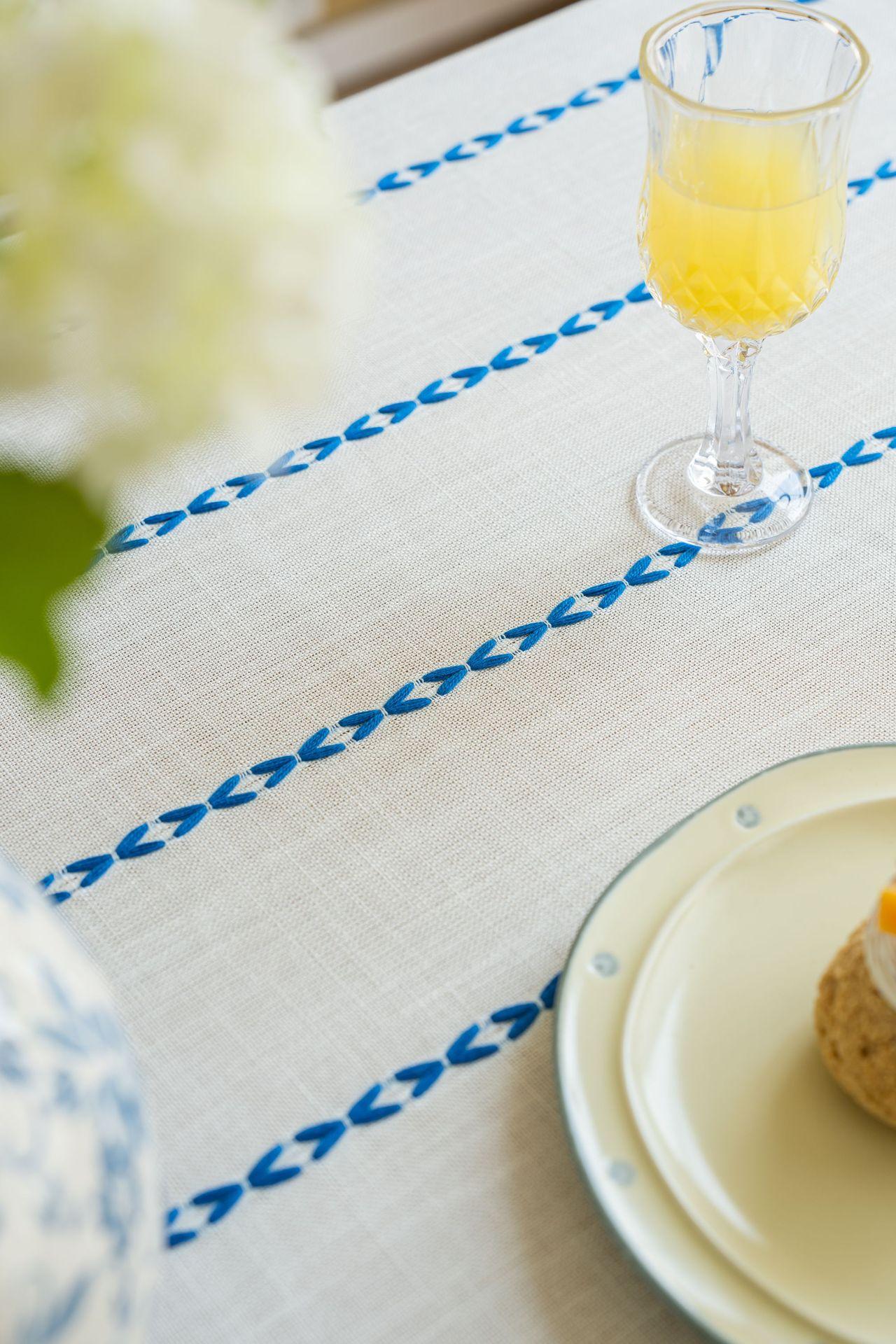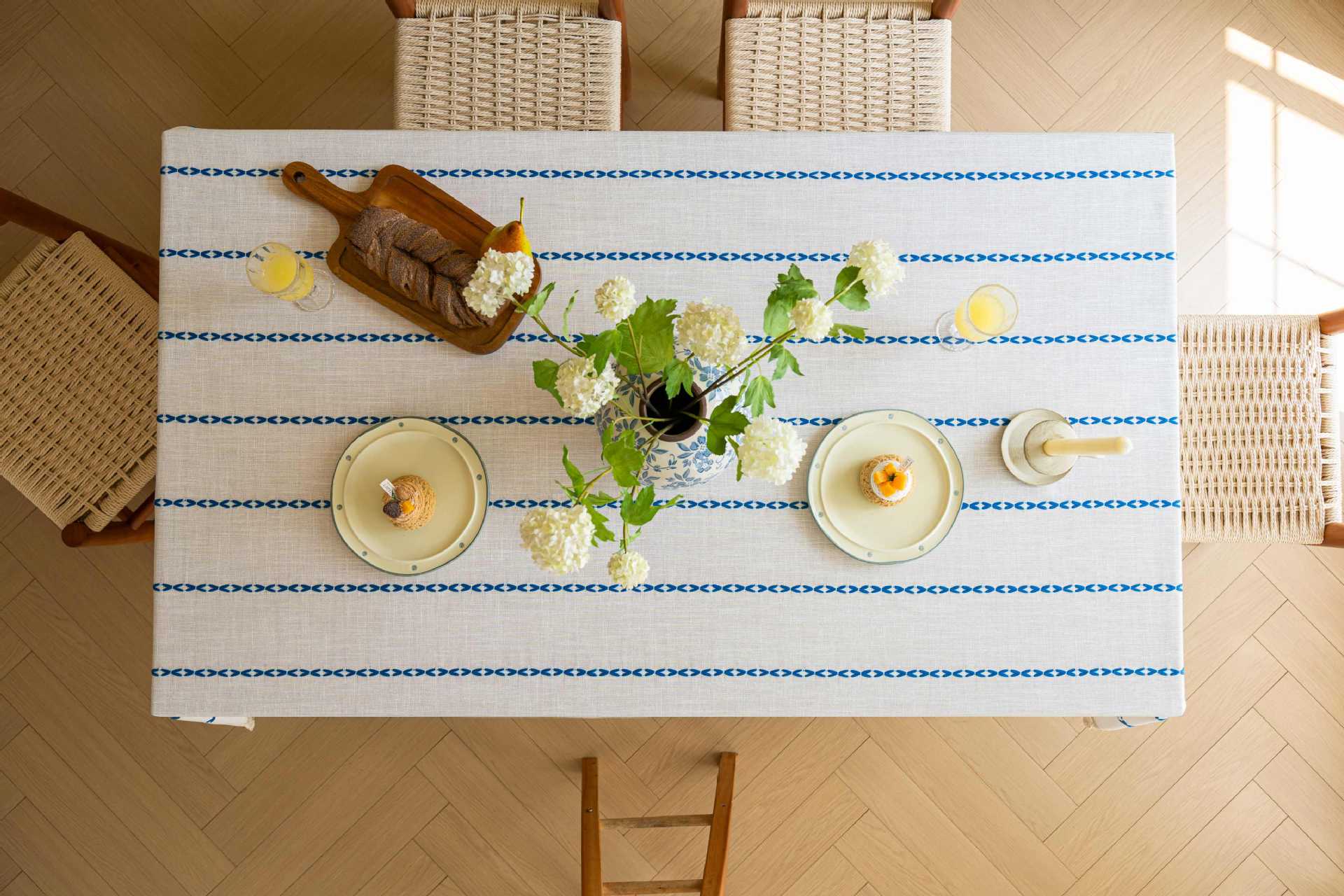 Imanki Rima Mantel Rectangular para Mesa de Comedor Estilo Ins Blanco Fondo Línea Azul Bordado Artístico Cubre Mantel Decoración