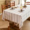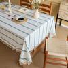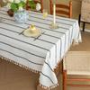 Multi-line black and white background rice broom tablecloth, Multi-line yellow and white rice broom tablecloth...